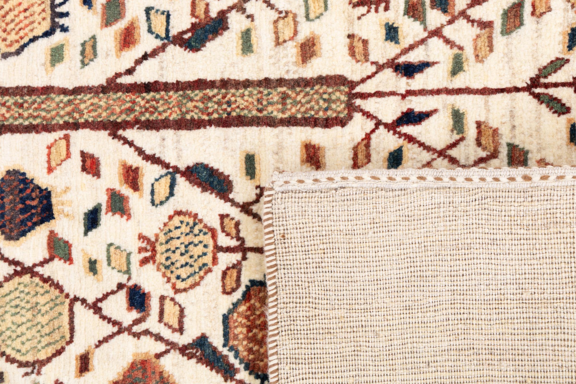 Dette tæppe består af håndspundet fåruld af højeste kvalitet. Især i Iran (tidligere Persien), Afghanistan og Pakistan spindes uld med hånden, før tæppet faktisk knuses. Uld har bevist sig som et naturligt og ekstremt slidstærkt materiale gennem århundreder. Det har blandt andet snavsafvisende og varmeisolerende egenskaber. Samtidig er uld uforlignelig blød og bringer en naturlig glans.