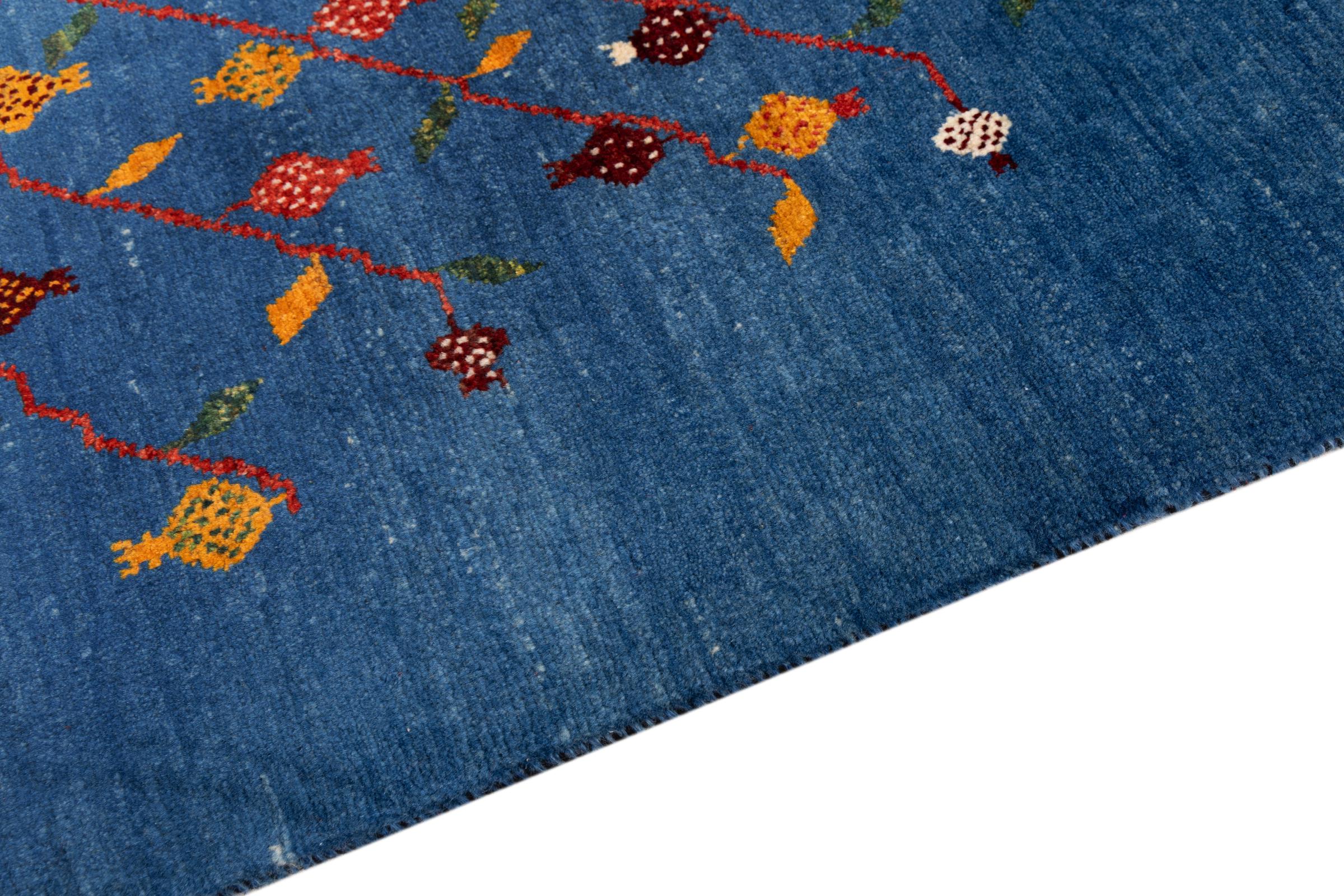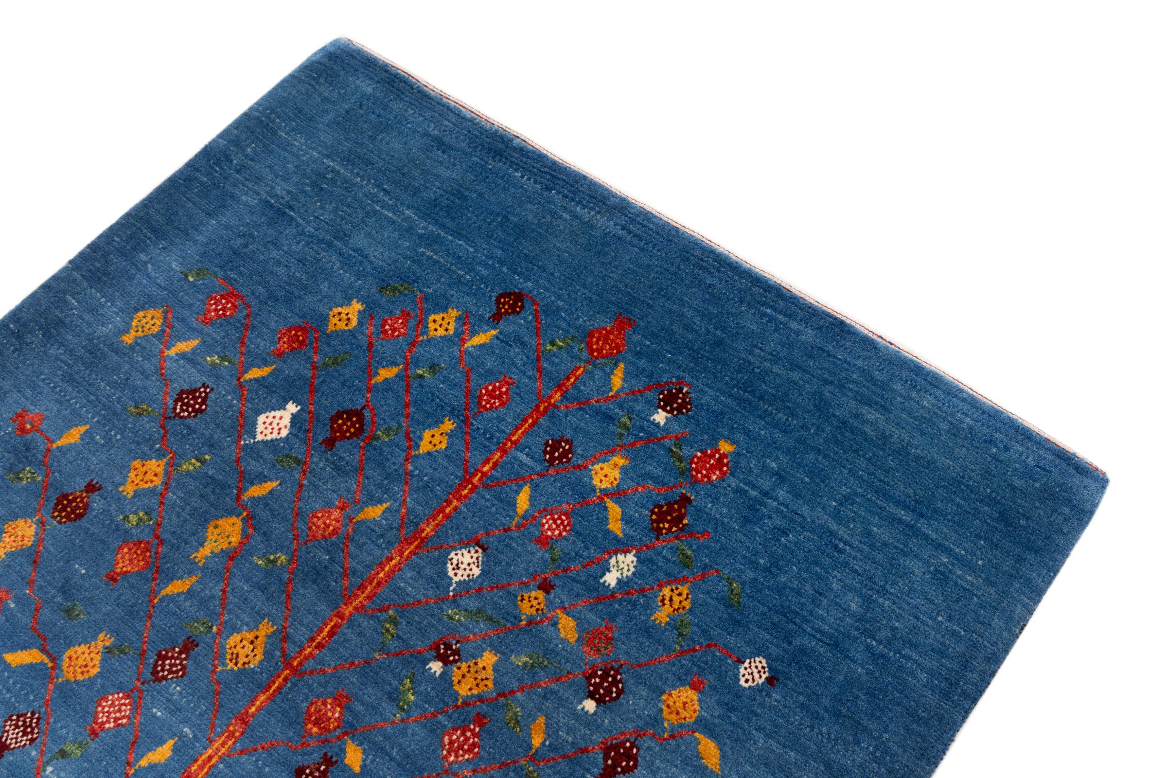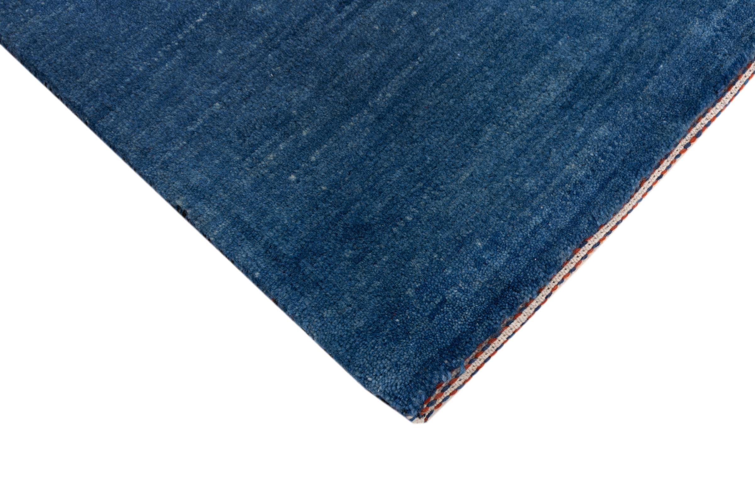 Dette smukke tæppe er en persisk Gabbeh og er en af ​​de højeste kvalitet Gabbeh tæpper. Tæpper er knyttet af nomader eller semi-nomader i Iran ved hjælp af traditionelt håndværk. De enkle motiver og mønstre er for det meste inspireret af nomadernes umiddelbare omgivelser. F.eks. Kan kameler, træer eller buske findes på traditionelle tæpper. Persiske Gabbeh-tæpper er lavet af uld fra lokale fårbesætninger. Ulden er derfor for det meste spundet for hånd. Hver af disse orientalske tæpper udgør en unik karakter af århundreder gammel kultur.