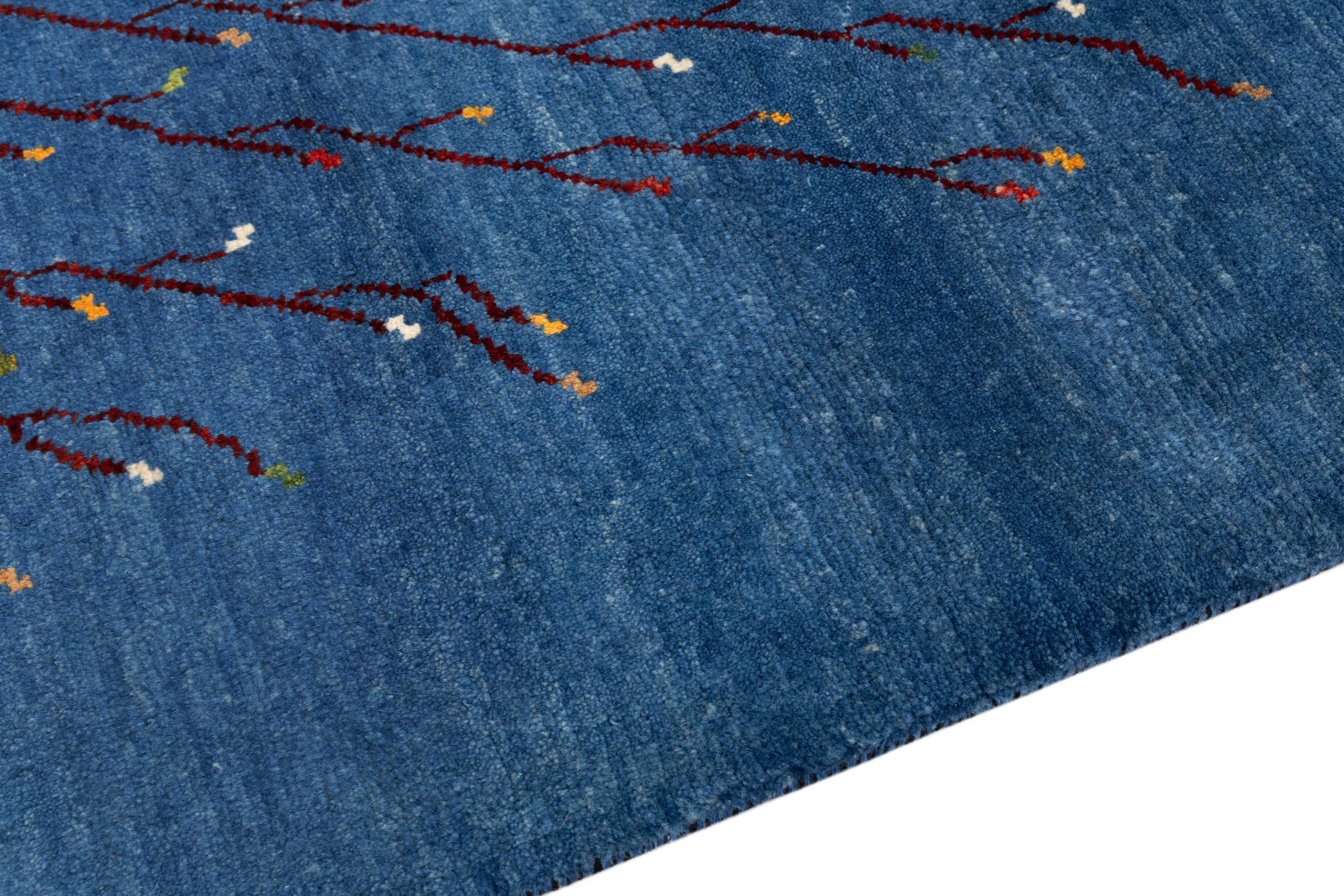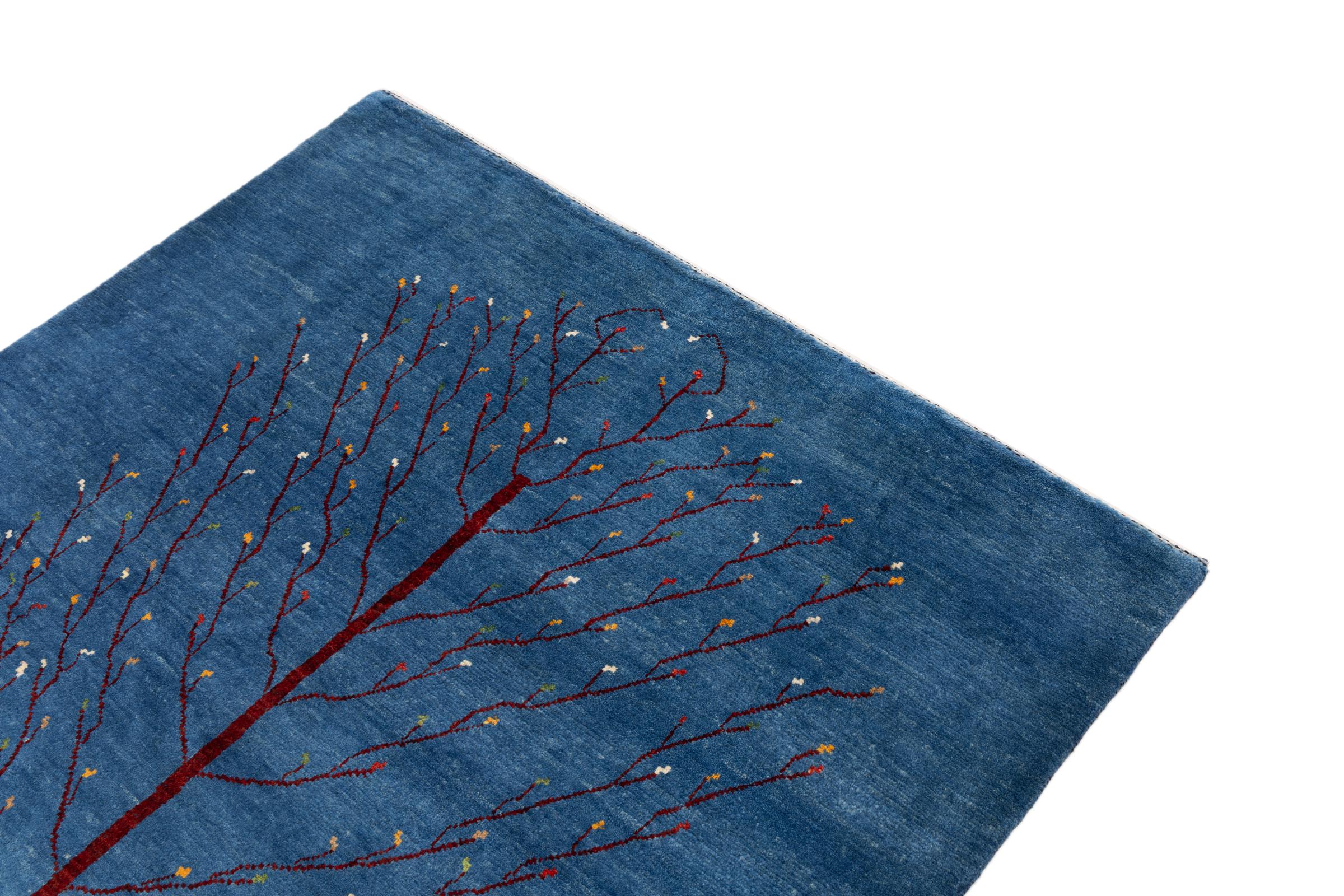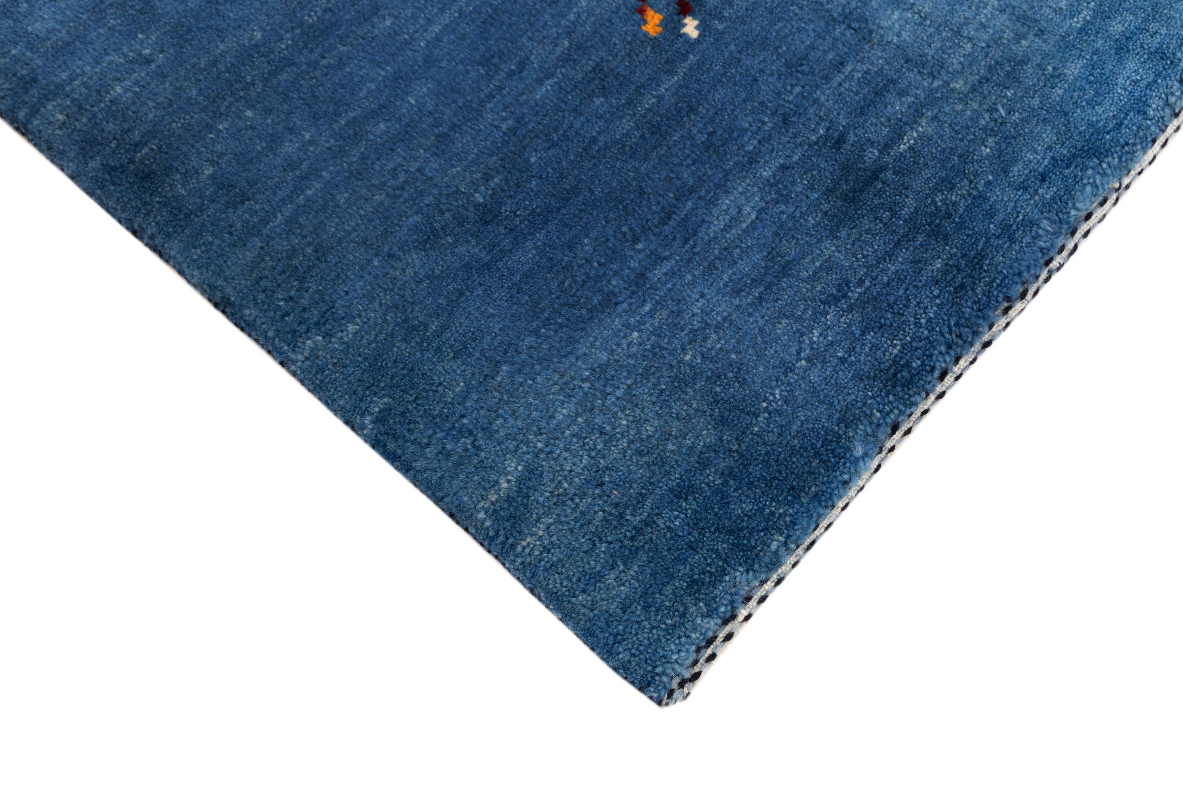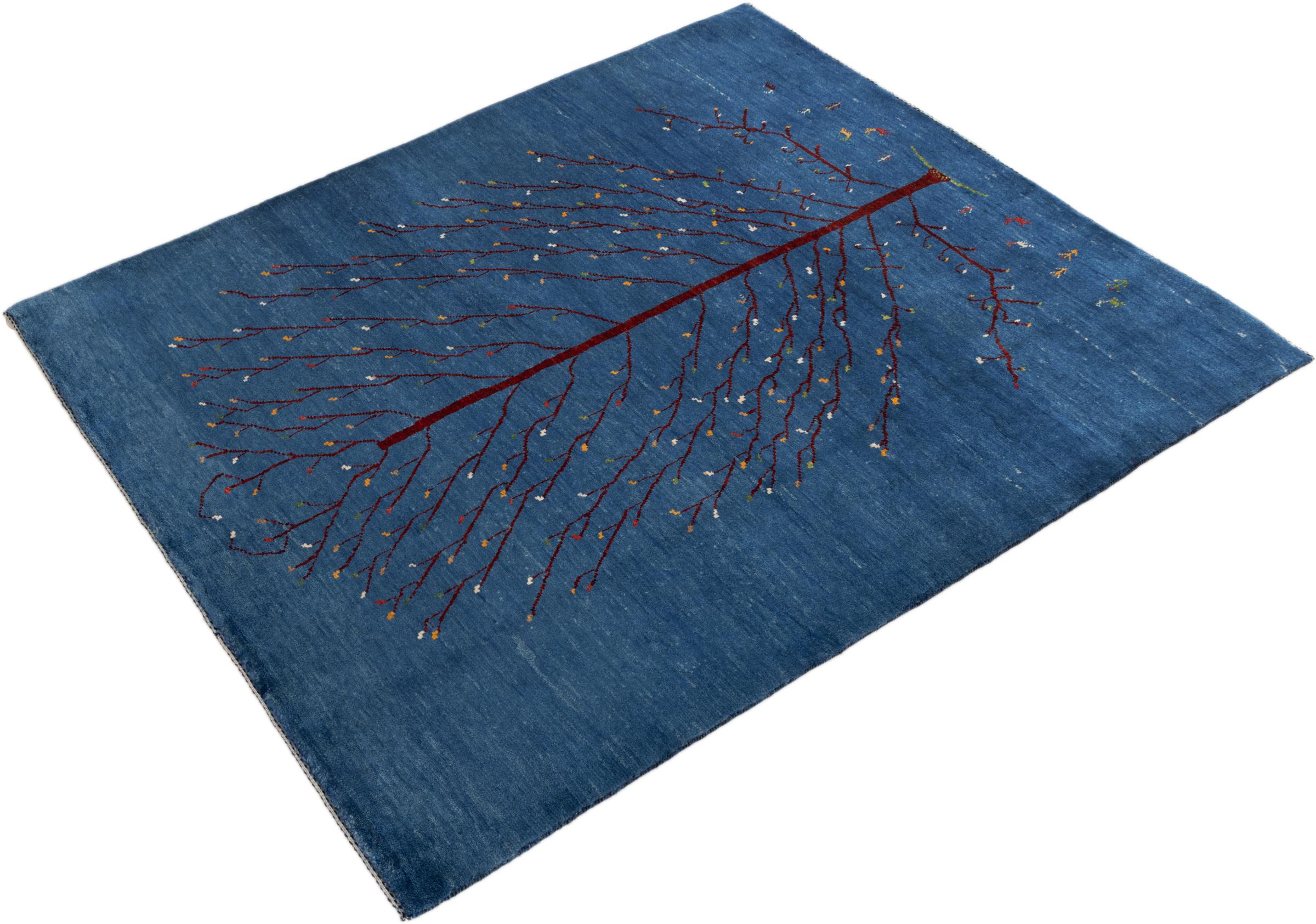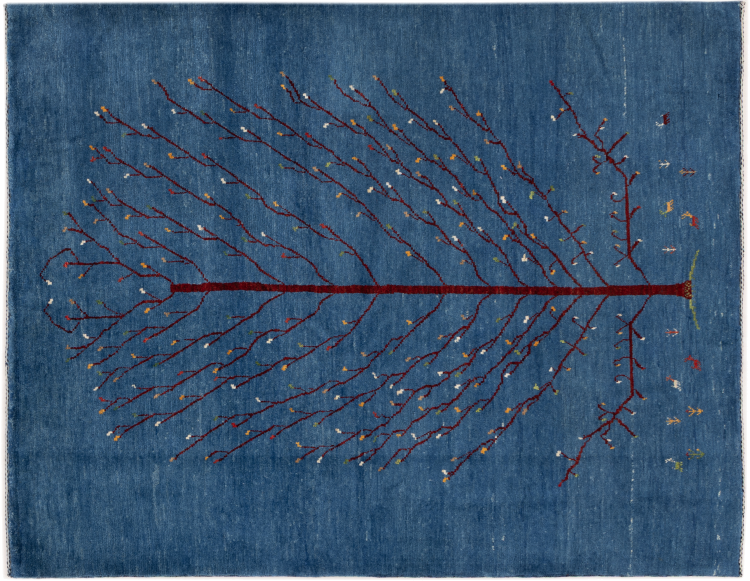 Dette smukke tæppe er en persisk Gabbeh og er en af ​​de højeste kvalitet Gabbeh tæpper. Tæpper er knyttet af nomader eller semi-nomader i Iran ved hjælp af traditionelt håndværk. De enkle motiver og mønstre er for det meste inspireret af nomadernes umiddelbare omgivelser. F.eks. Kan kameler, træer eller buske findes på traditionelle tæpper. Persiske Gabbeh-tæpper er lavet af uld fra lokale fårbesætninger. Ulden er derfor for det meste spundet for hånd. Hver af disse orientalske tæpper udgør en unik karakter af århundreder gammel kultur.