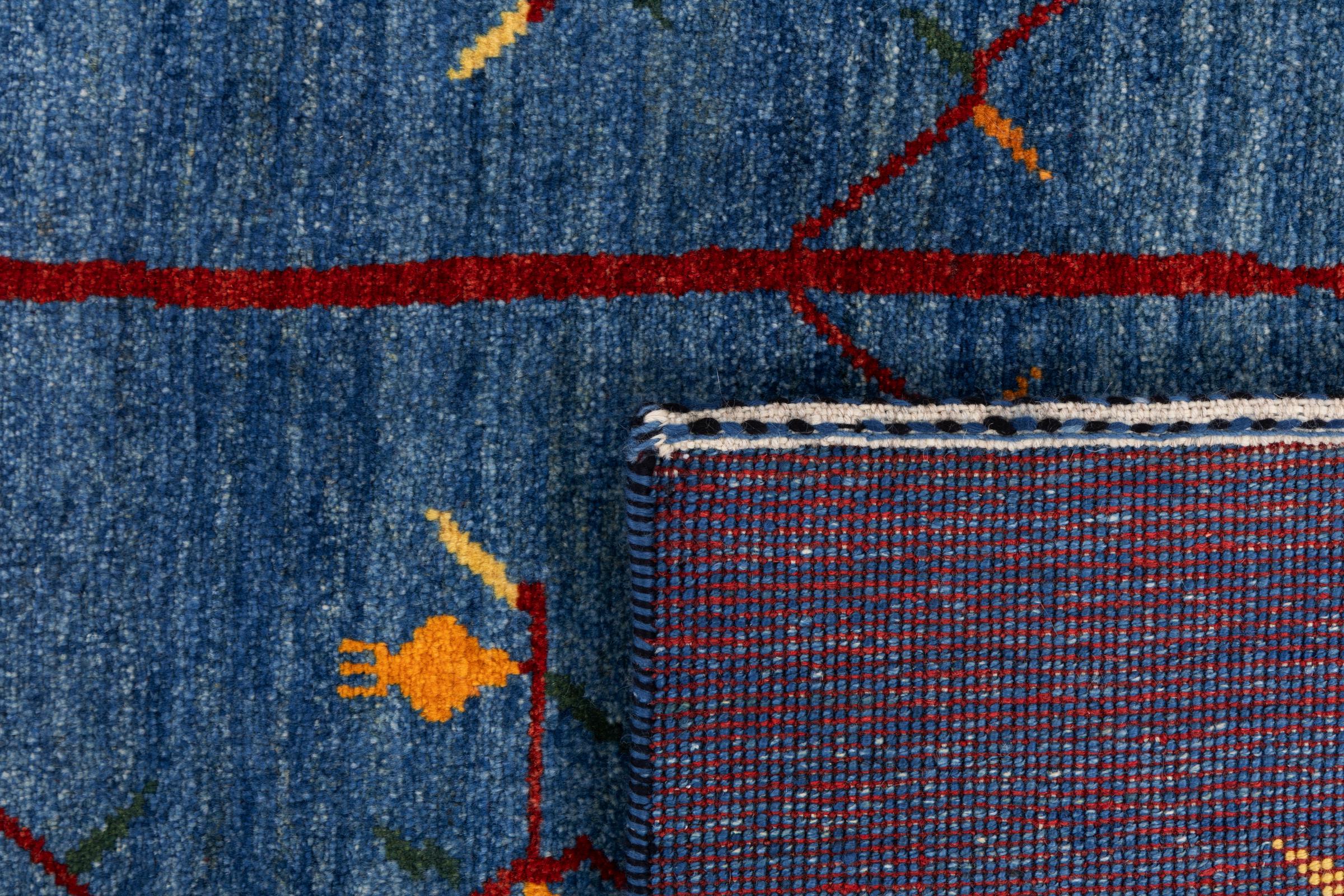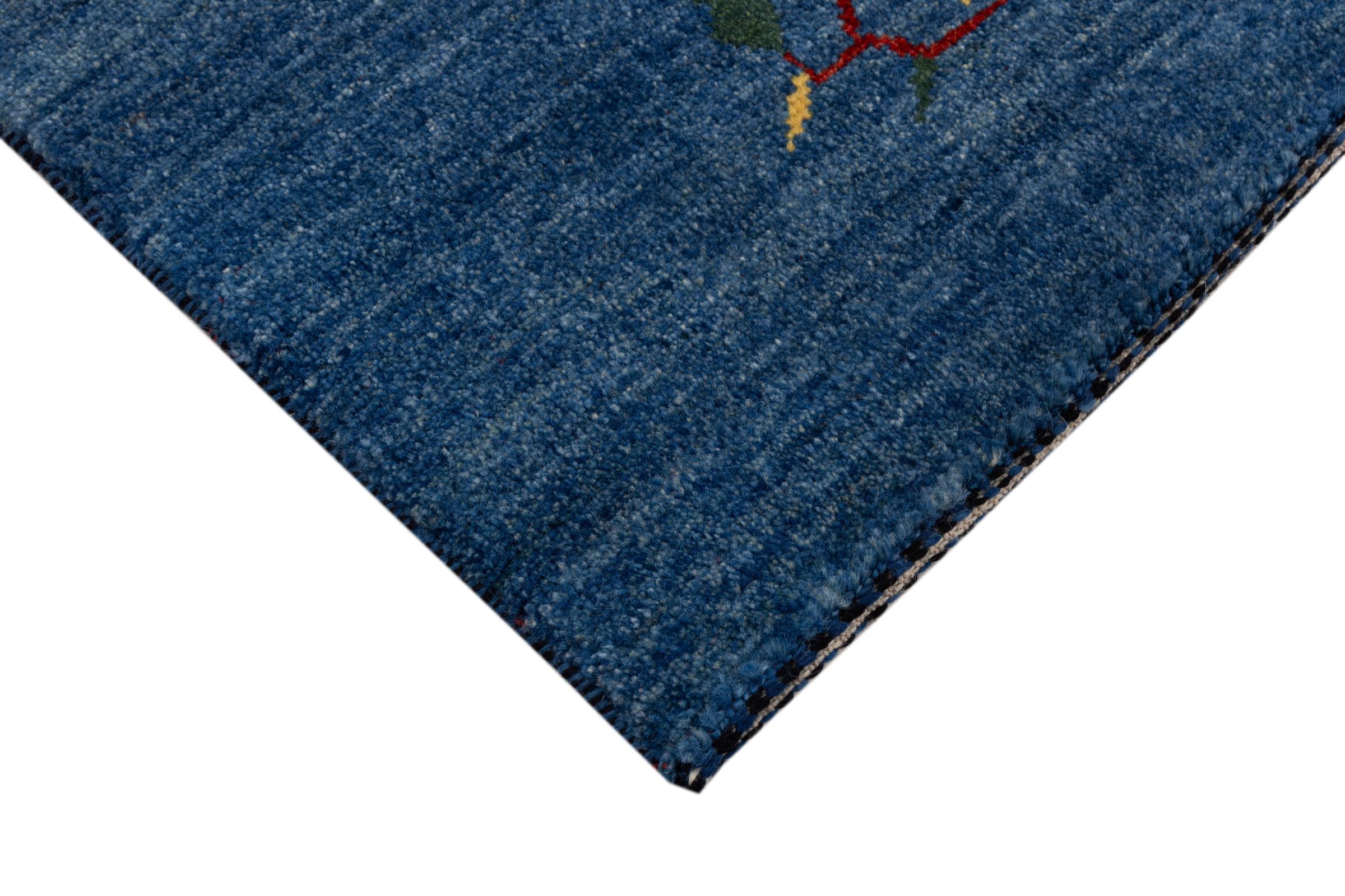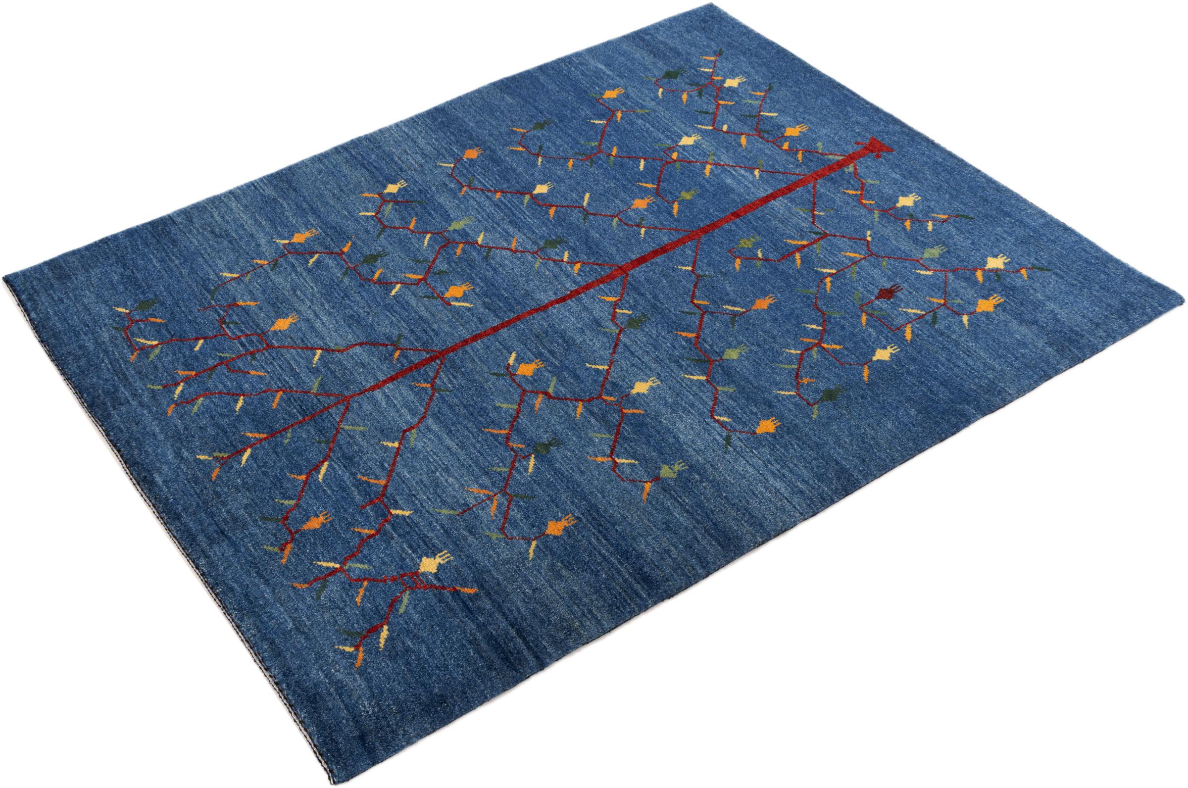 Dette smukke tæppe er en persisk Gabbeh og er en af ​​de højeste kvalitet Gabbeh tæpper. Tæpper er knyttet af nomader eller semi-nomader i Iran ved hjælp af traditionelt håndværk. De enkle motiver og mønstre er for det meste inspireret af nomadernes umiddelbare omgivelser. F.eks. Kan kameler, træer eller buske findes på traditionelle tæpper. Persiske Gabbeh-tæpper er lavet af uld fra lokale fårbesætninger. Ulden er derfor for det meste spundet for hånd. Hver af disse orientalske tæpper udgør en unik karakter af århundreder gammel kultur.
