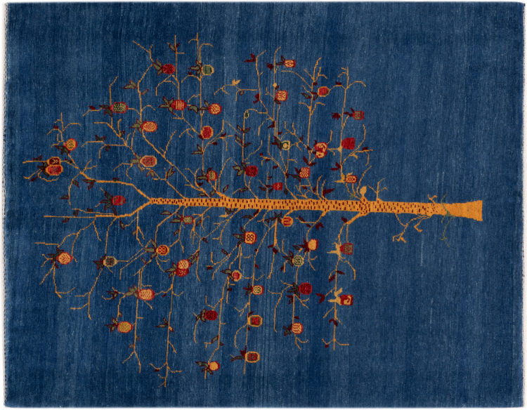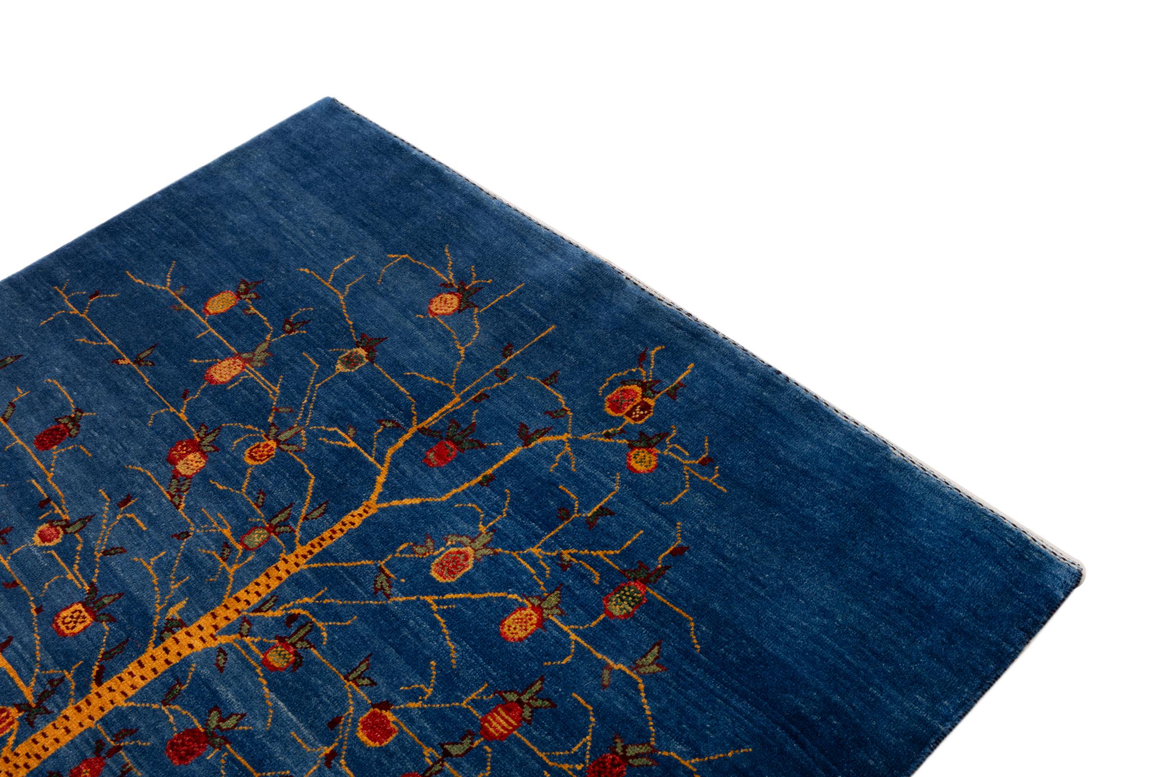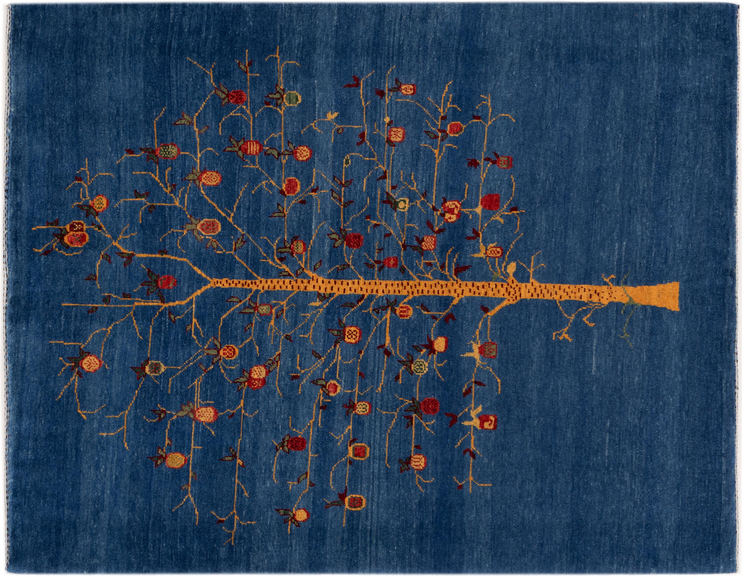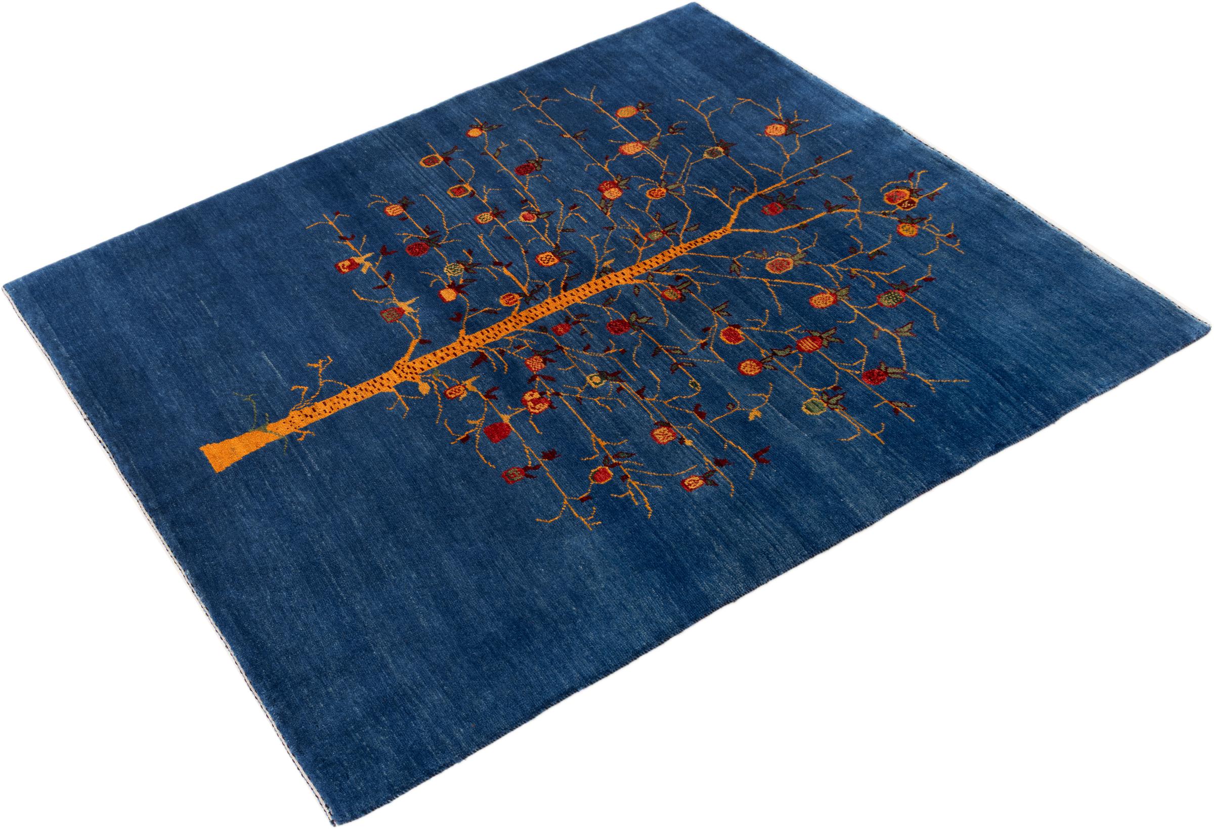 Dette smukke tæppe er en persisk Gabbeh og er en af ​​de højeste kvalitet Gabbeh tæpper. Tæpper er knyttet af nomader eller semi-nomader i Iran ved hjælp af traditionelt håndværk. De enkle motiver og mønstre er for det meste inspireret af nomadernes umiddelbare omgivelser. F.eks. Kan kameler, træer eller buske findes på traditionelle tæpper. Persiske Gabbeh-tæpper er lavet af uld fra lokale fårbesætninger. Ulden er derfor for det meste spundet for hånd. Hver af disse orientalske tæpper udgør en unik karakter af århundreder gammel kultur.