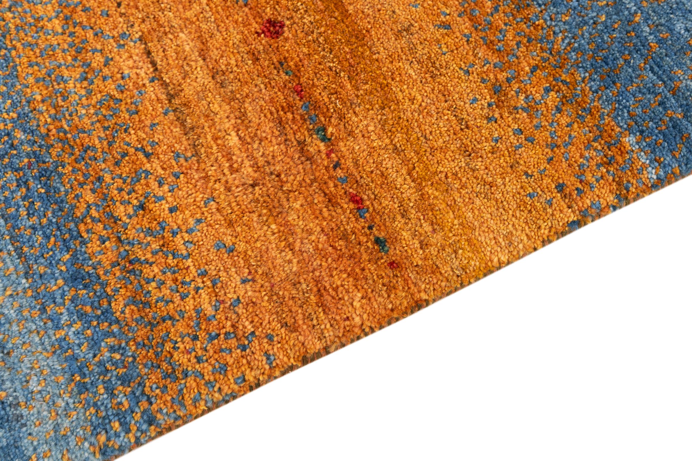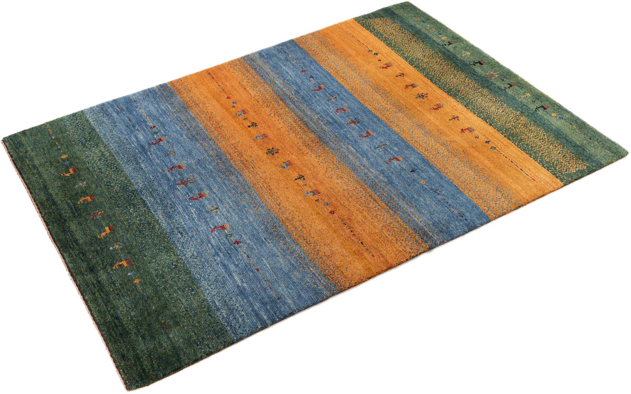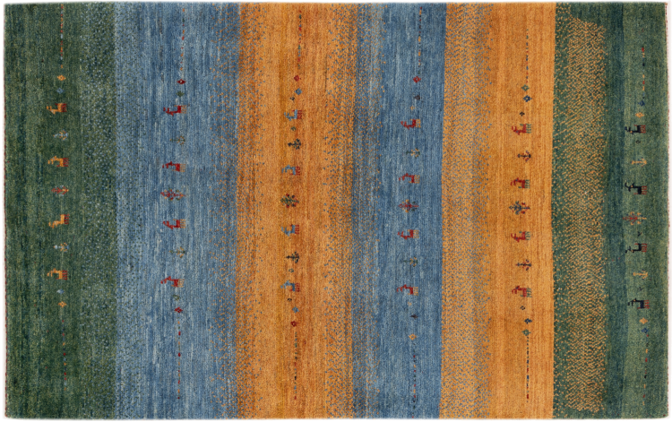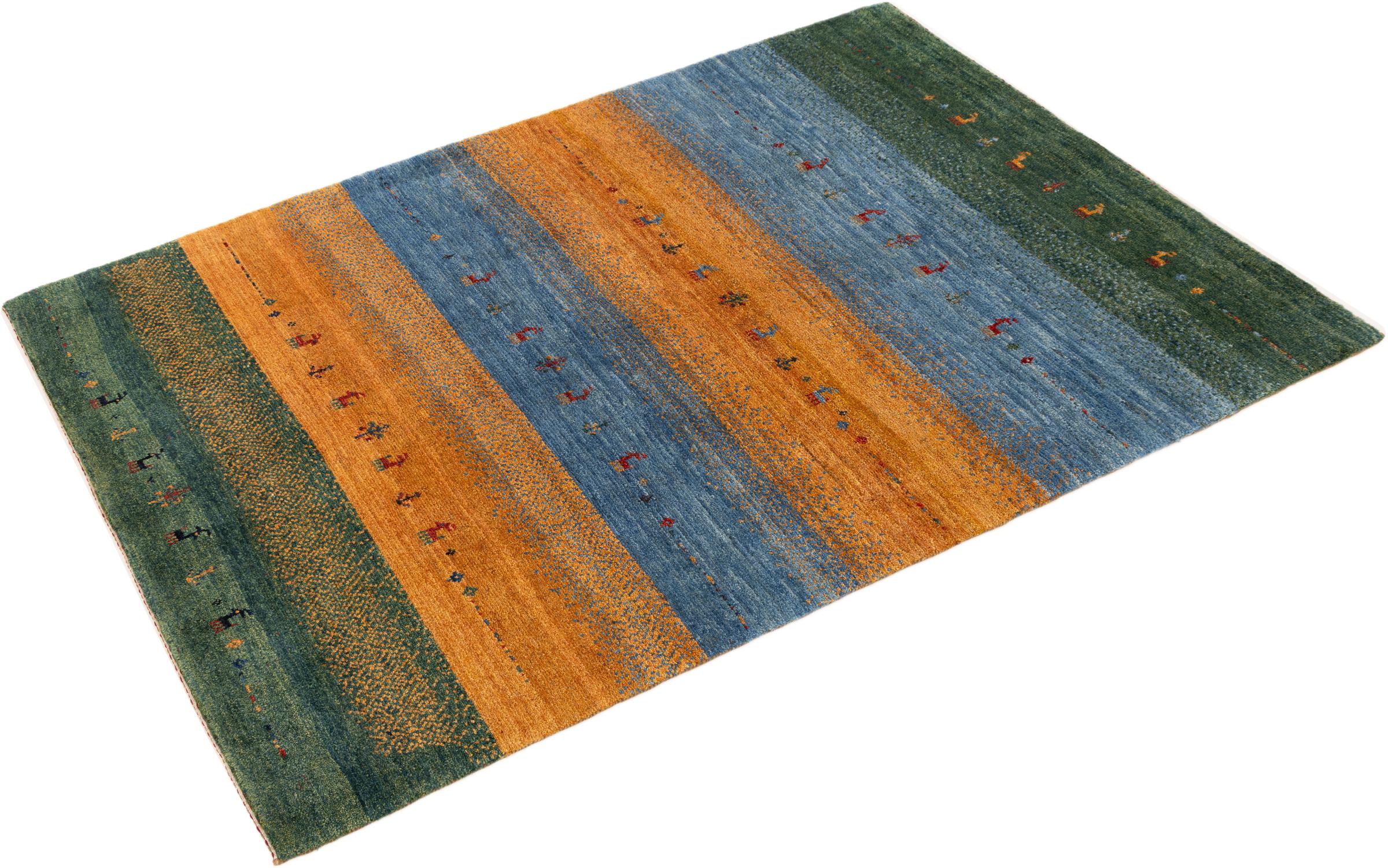 Dette smukke tæppe er en persisk Gabbeh og er en af ​​de højeste kvalitet Gabbeh tæpper. Tæpper er knyttet af nomader eller semi-nomader i Iran ved hjælp af traditionelt håndværk. De enkle motiver og mønstre er for det meste inspireret af nomadernes umiddelbare omgivelser. F.eks. Kan kameler, træer eller buske findes på traditionelle tæpper. Persiske Gabbeh-tæpper er lavet af uld fra lokale fårbesætninger. Ulden er derfor for det meste spundet for hånd. Hver af disse orientalske tæpper udgør en unik karakter af århundreder gammel kultur.