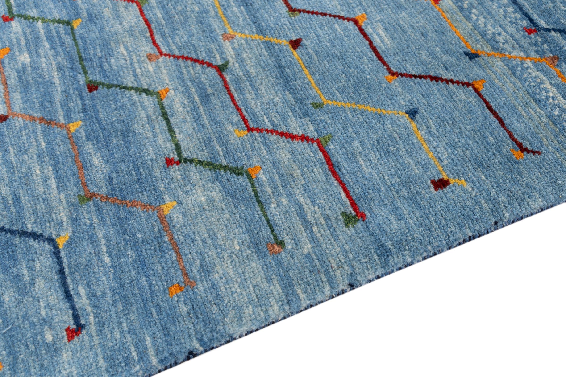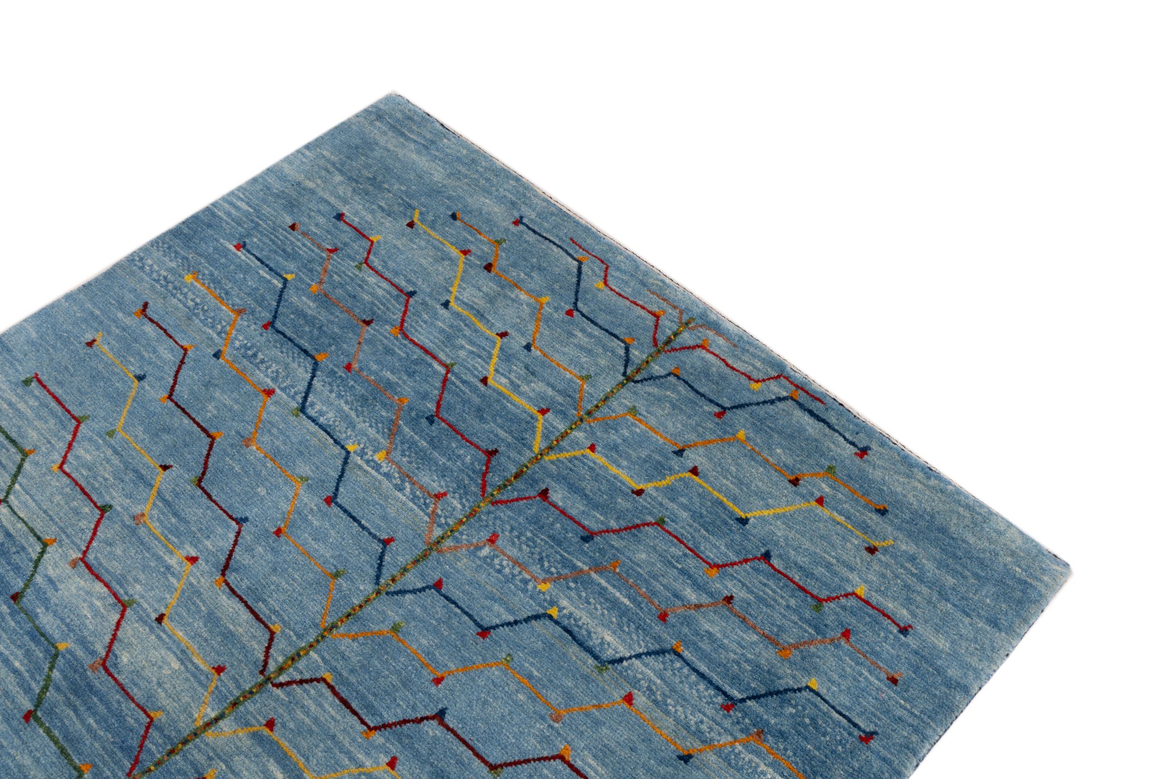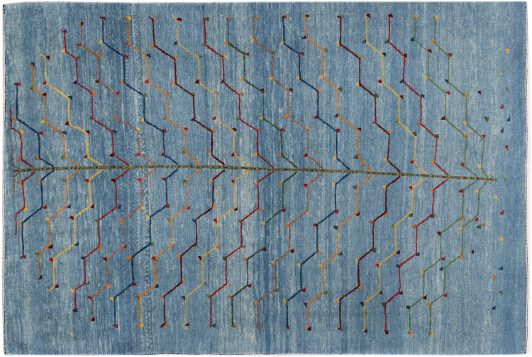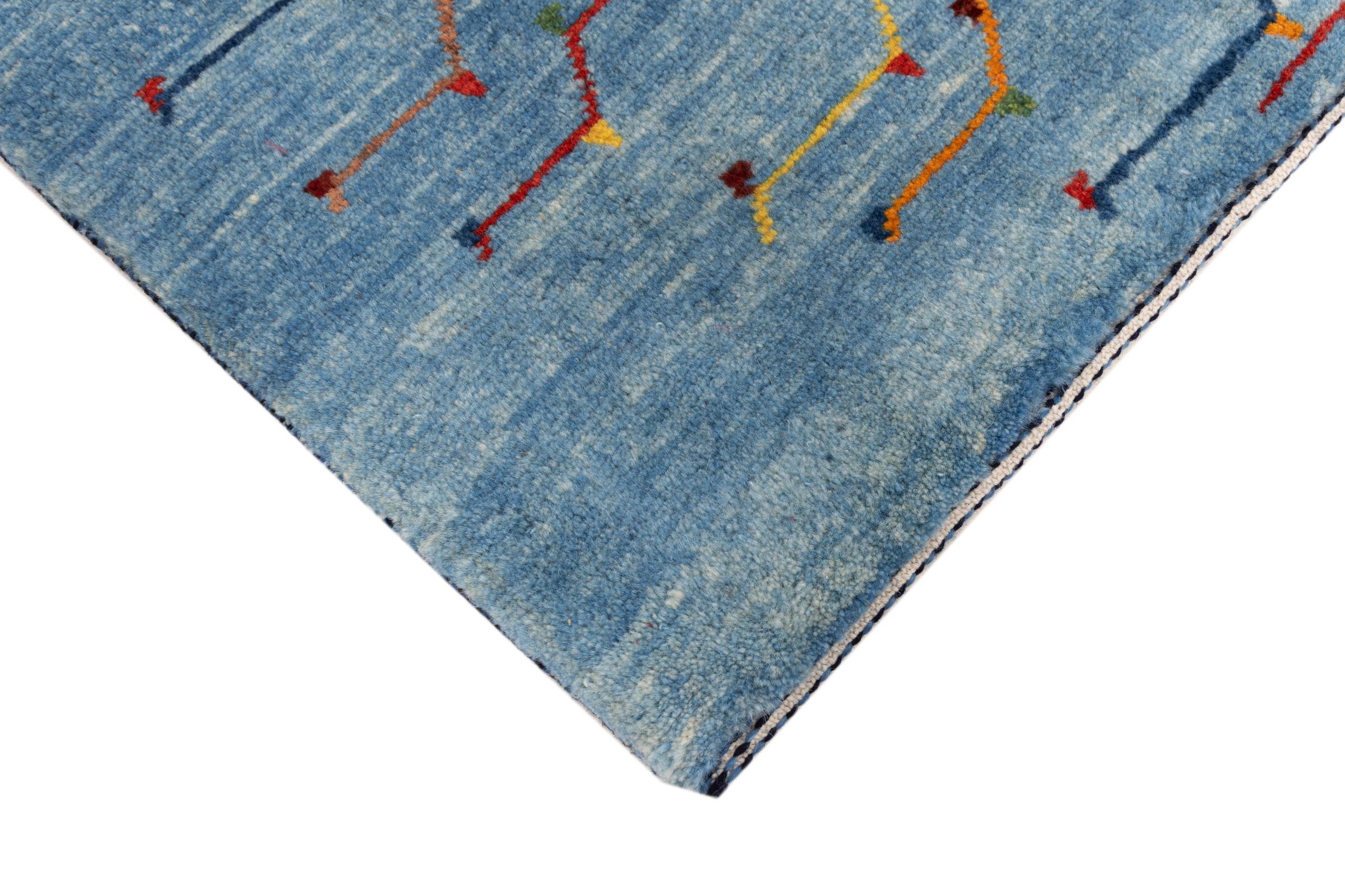 Dette smukke tæppe er en persisk Gabbeh og er en af ​​de højeste kvalitet Gabbeh tæpper. Tæpper er knyttet af nomader eller semi-nomader i Iran ved hjælp af traditionelt håndværk. De enkle motiver og mønstre er for det meste inspireret af nomadernes umiddelbare omgivelser. F.eks. Kan kameler, træer eller buske findes på traditionelle tæpper. Persiske Gabbeh-tæpper er lavet af uld fra lokale fårbesætninger. Ulden er derfor for det meste spundet for hånd. Hver af disse orientalske tæpper udgør en unik karakter af århundreder gammel kultur.
