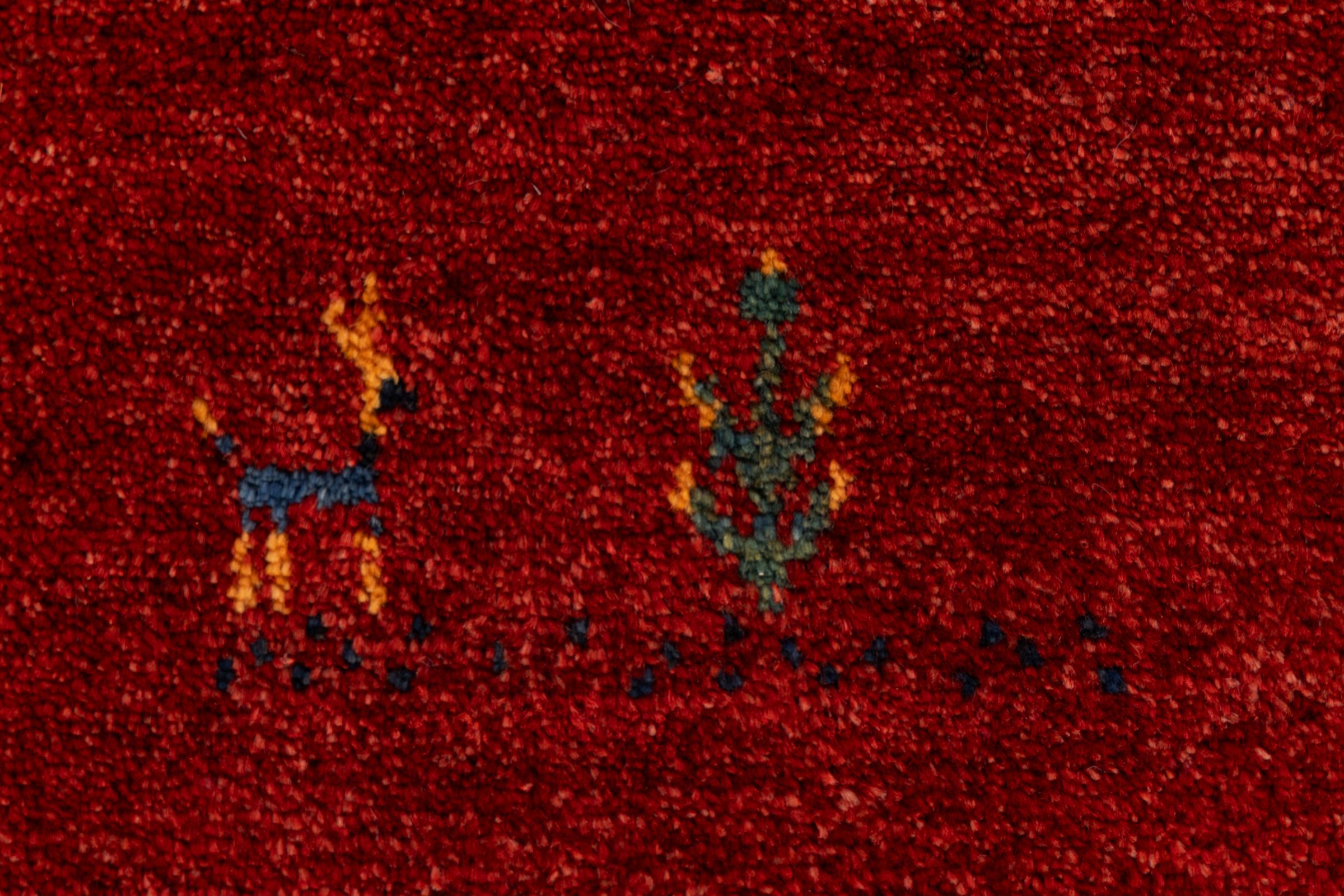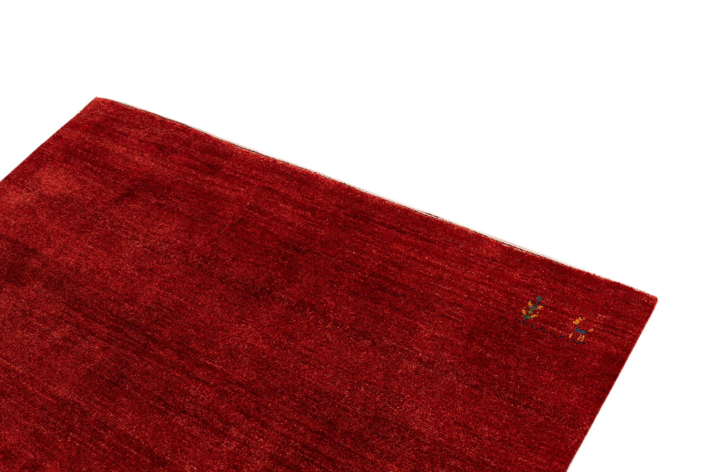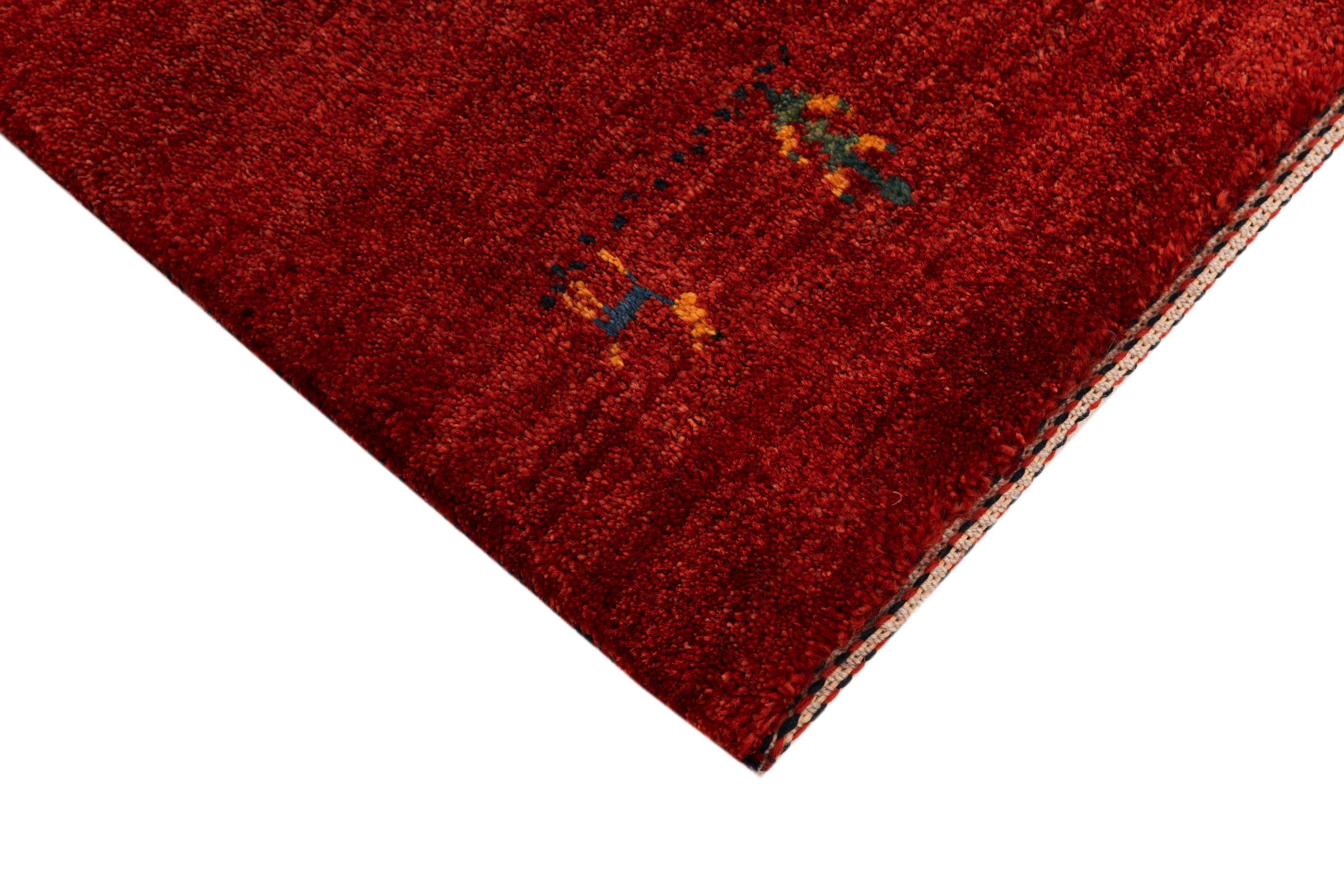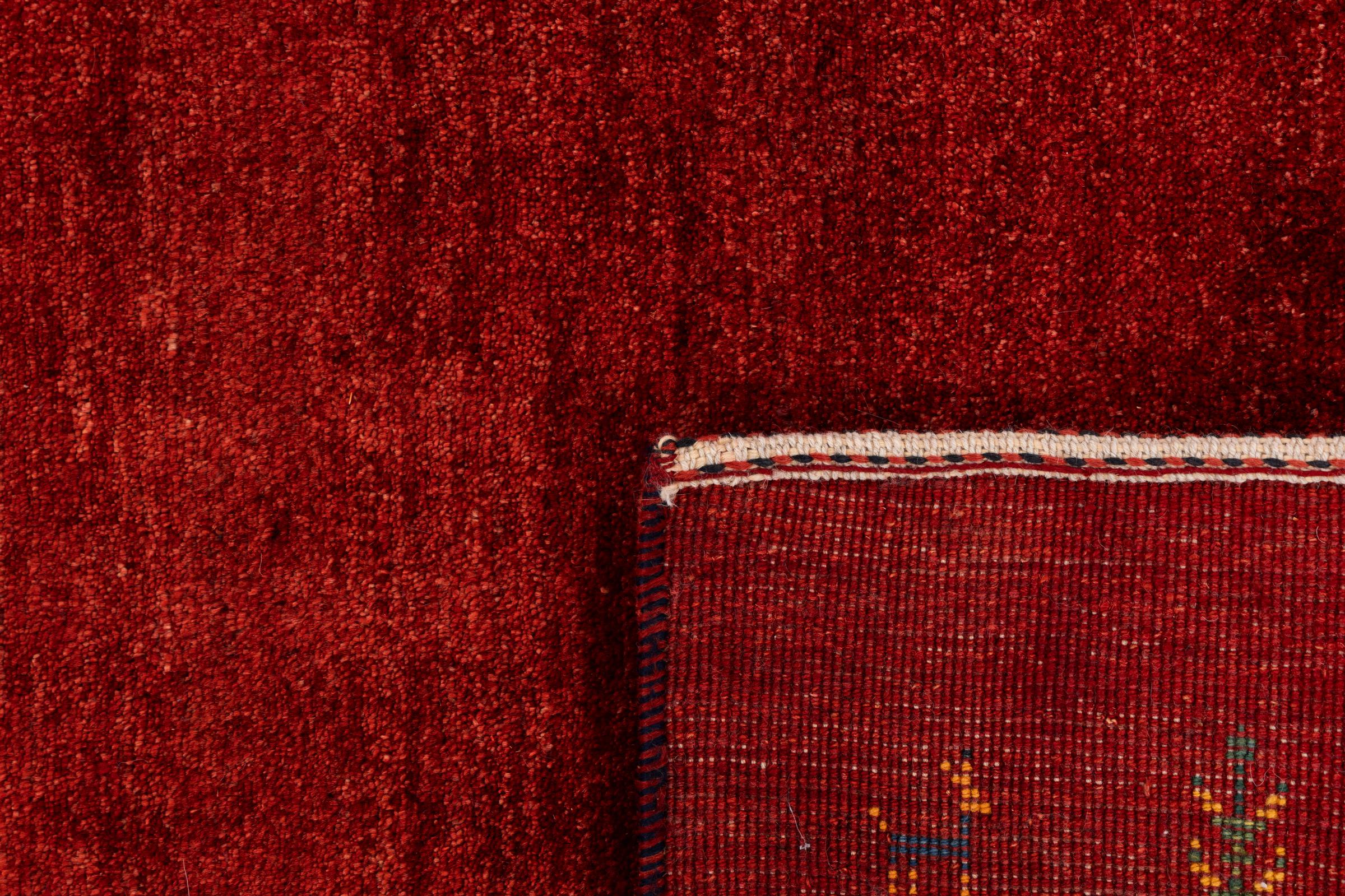 Dette smukke tæppe er en persisk Gabbeh og er en af ​​de højeste kvalitet Gabbeh tæpper. Tæpper er knyttet af nomader eller semi-nomader i Iran ved hjælp af traditionelt håndværk. De enkle motiver og mønstre er for det meste inspireret af nomadernes umiddelbare omgivelser. F.eks. Kan kameler, træer eller buske findes på traditionelle tæpper. Persiske Gabbeh-tæpper er lavet af uld fra lokale fårbesætninger. Ulden er derfor for det meste spundet for hånd. Hver af disse orientalske tæpper udgør en unik karakter af århundreder gammel kultur.