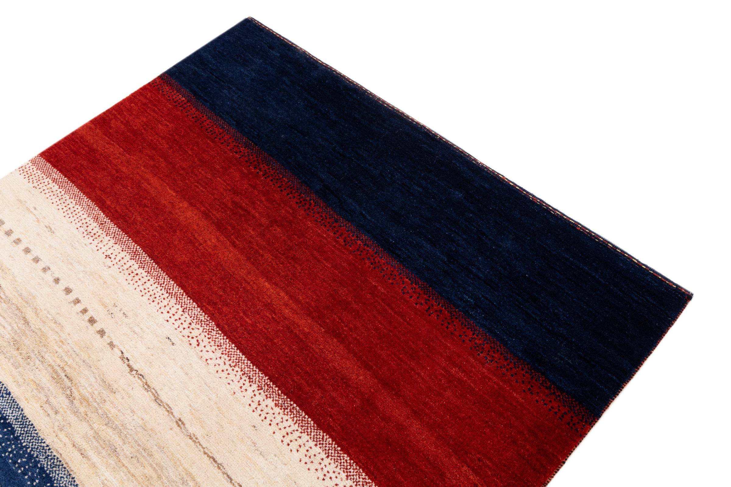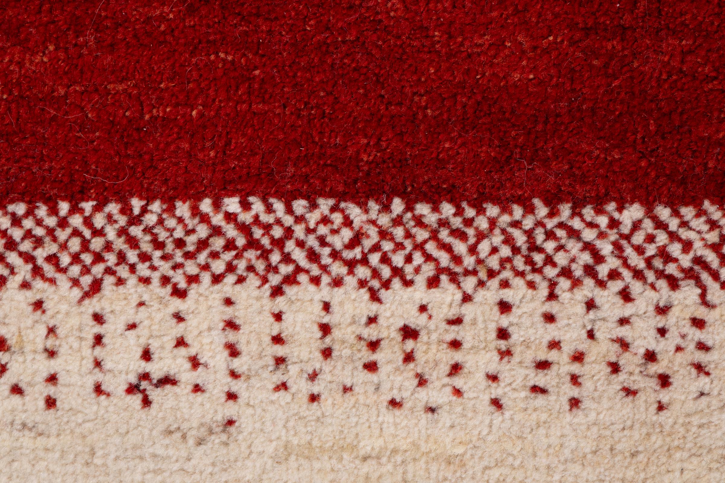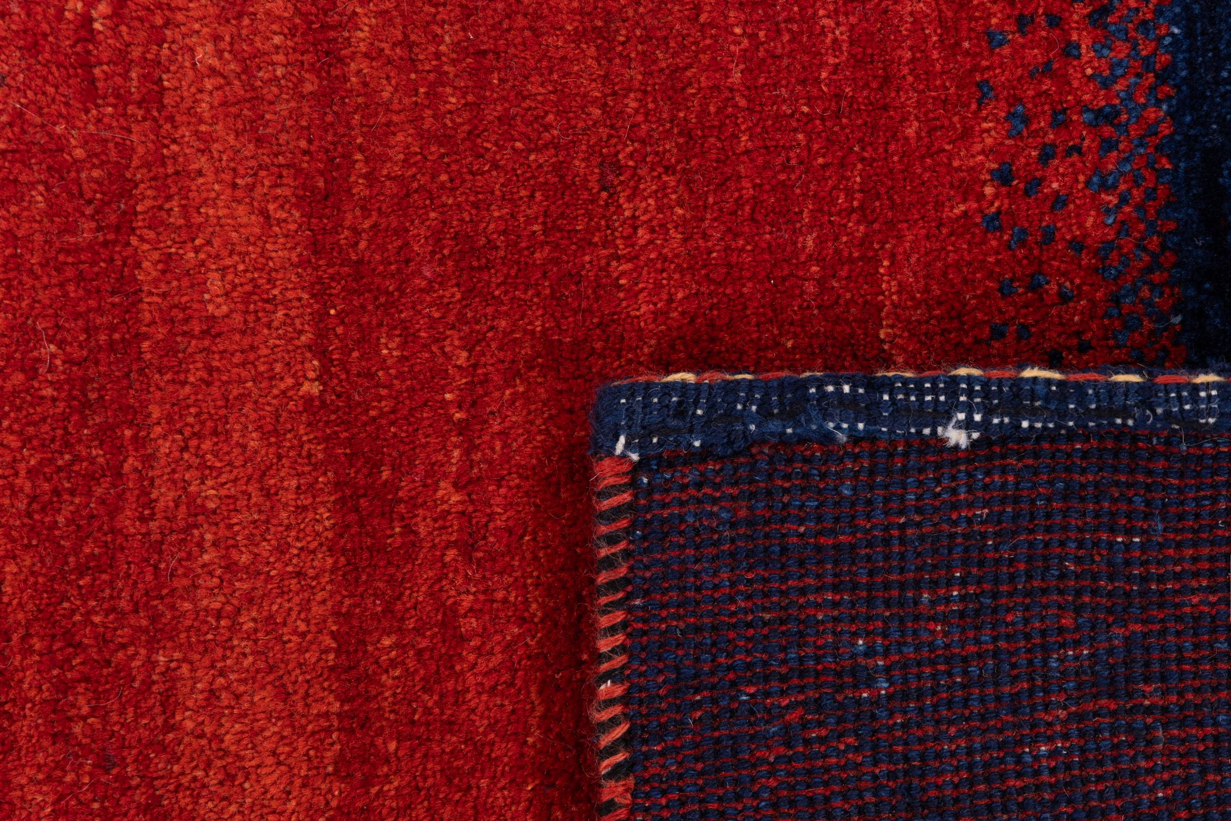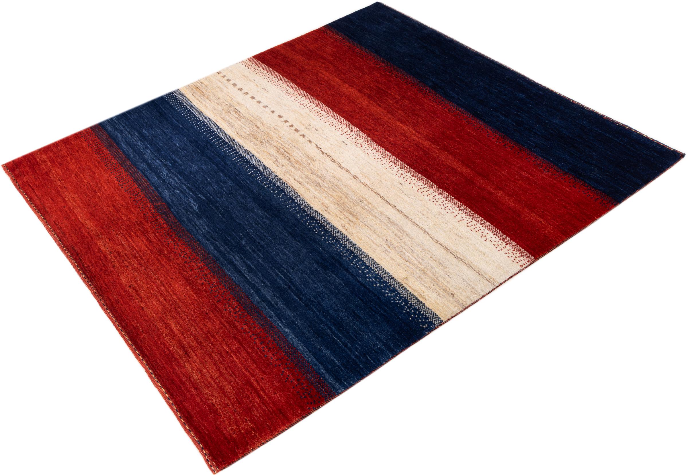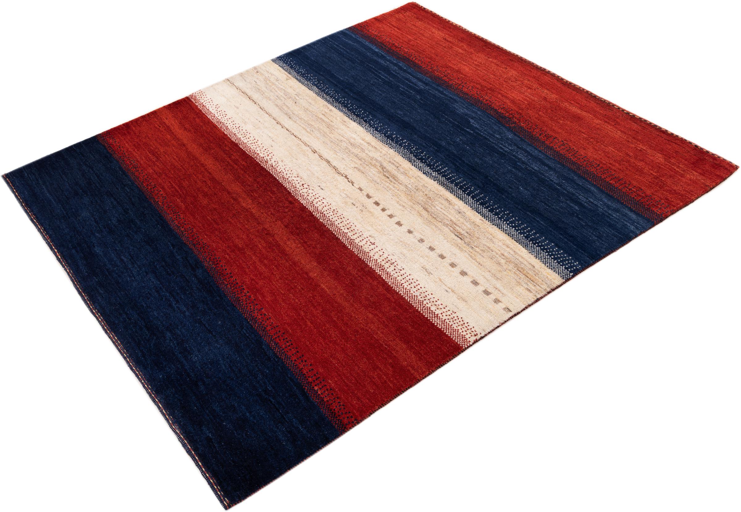 Dette smukke tæppe er en persisk Gabbeh og er en af ​​de højeste kvalitet Gabbeh tæpper. Tæpper er knyttet af nomader eller semi-nomader i Iran ved hjælp af traditionelt håndværk. De enkle motiver og mønstre er for det meste inspireret af nomadernes umiddelbare omgivelser. F.eks. Kan kameler, træer eller buske findes på traditionelle tæpper. Persiske Gabbeh-tæpper er lavet af uld fra lokale fårbesætninger. Ulden er derfor for det meste spundet for hånd. Hver af disse orientalske tæpper udgør en unik karakter af århundreder gammel kultur.