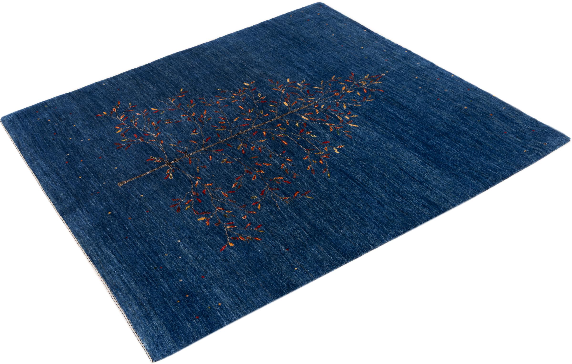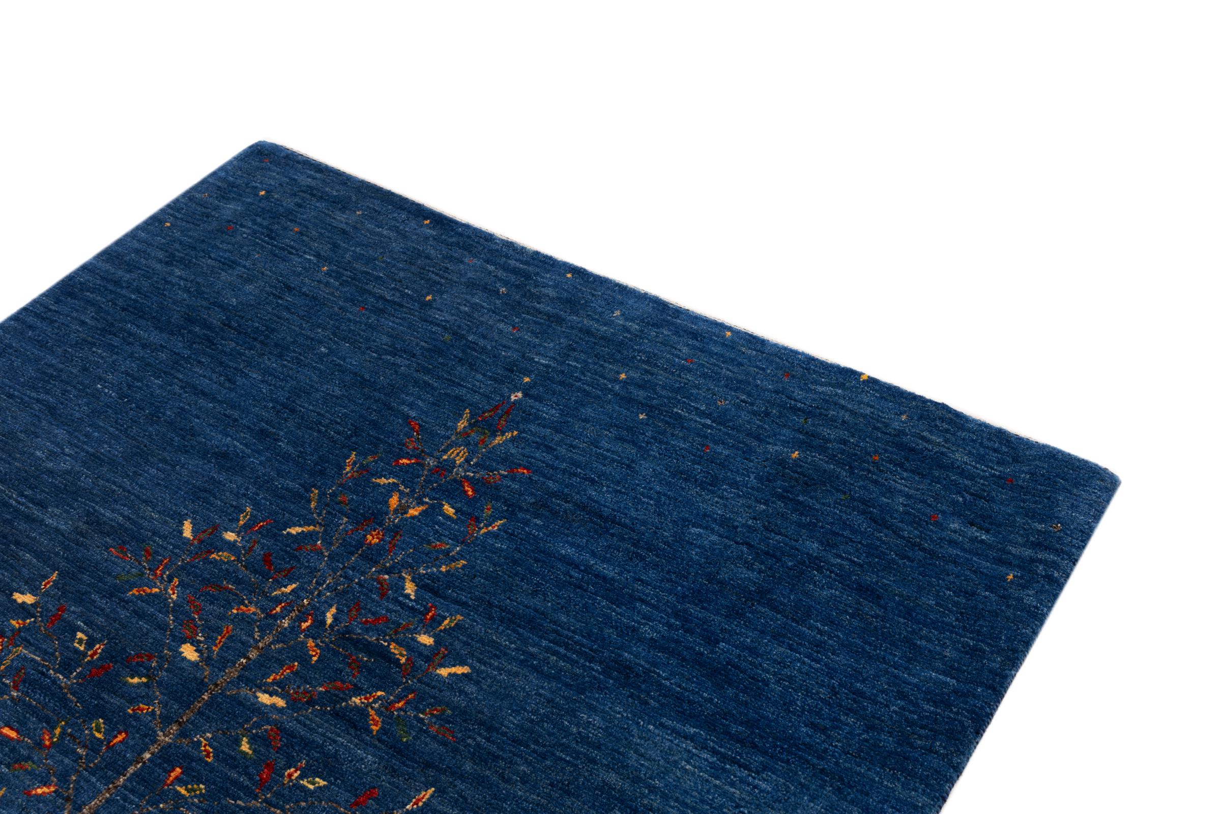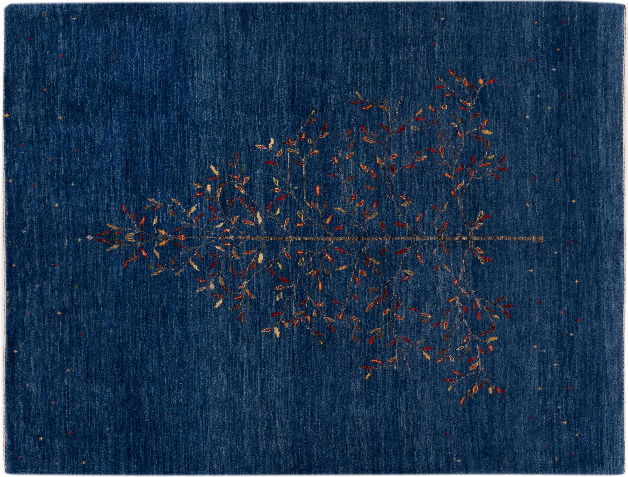 Dette smukke tæppe er en persisk Gabbeh og er en af ​​de højeste kvalitet Gabbeh tæpper. Tæpper er knyttet af nomader eller semi-nomader i Iran ved hjælp af traditionelt håndværk. De enkle motiver og mønstre er for det meste inspireret af nomadernes umiddelbare omgivelser. F.eks. Kan kameler, træer eller buske findes på traditionelle tæpper. Persiske Gabbeh-tæpper er lavet af uld fra lokale fårbesætninger. Ulden er derfor for det meste spundet for hånd. Hver af disse orientalske tæpper udgør en unik karakter af århundreder gammel kultur.