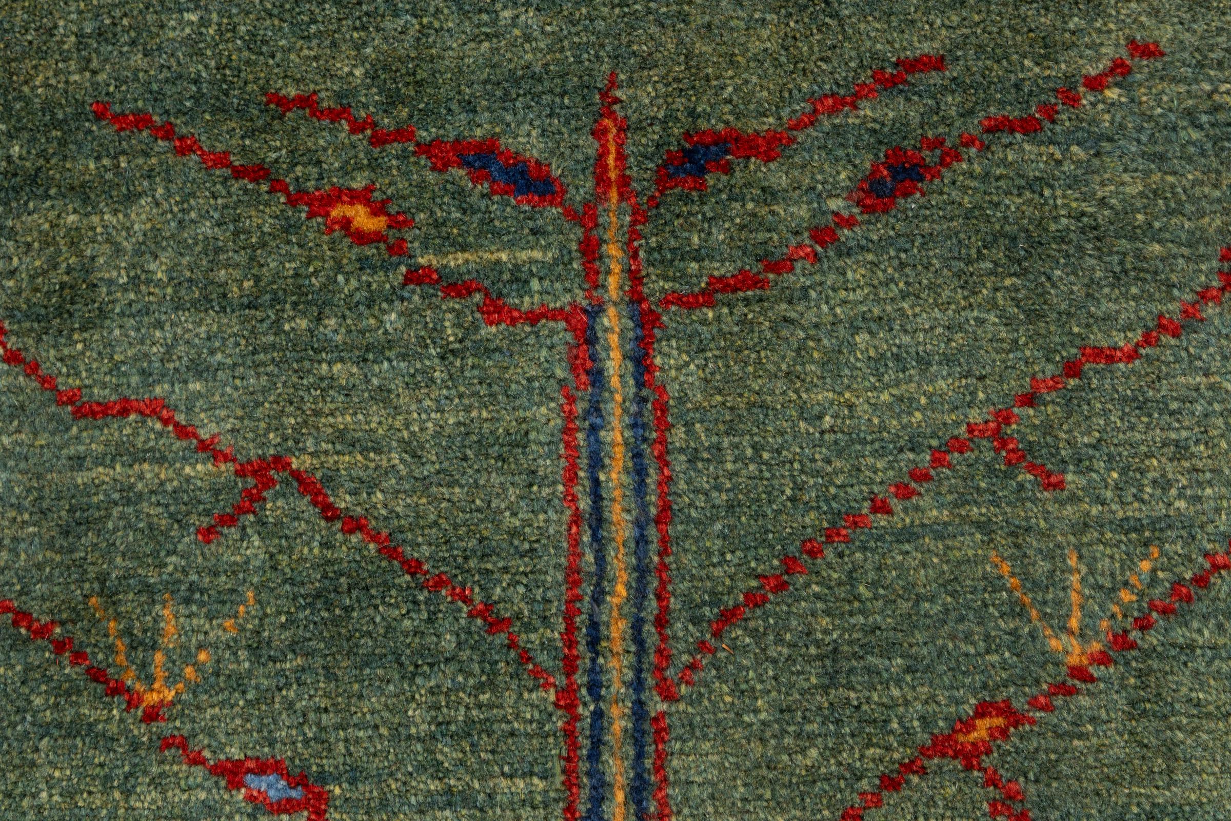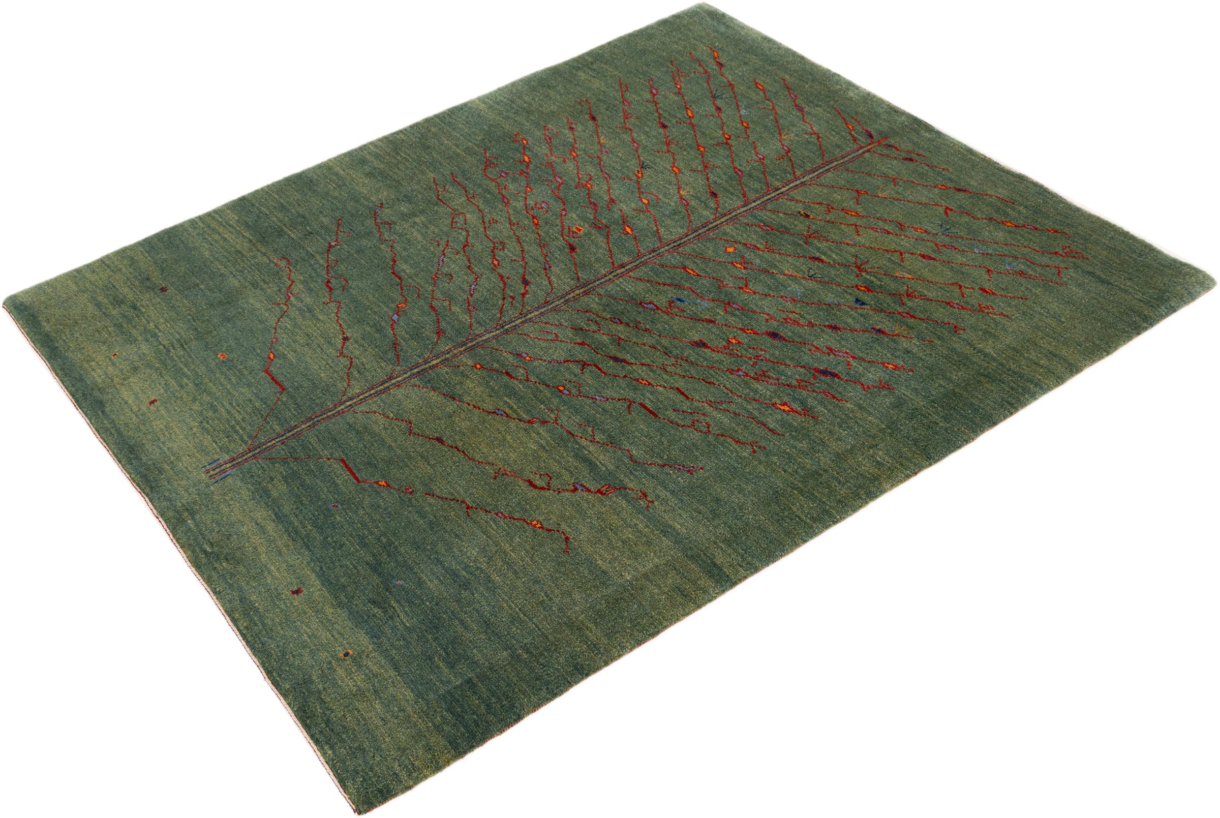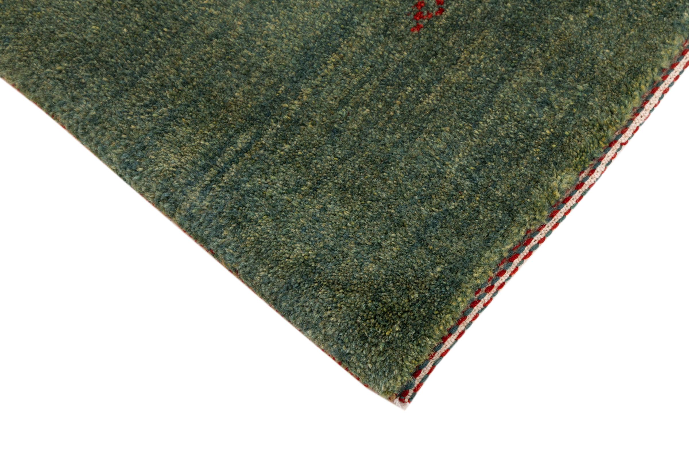 Dette smukke tæppe er en persisk Gabbeh og er en af ​​de højeste kvalitet Gabbeh tæpper. Tæpper er knyttet af nomader eller semi-nomader i Iran ved hjælp af traditionelt håndværk. De enkle motiver og mønstre er for det meste inspireret af nomadernes umiddelbare omgivelser. F.eks. Kan kameler, træer eller buske findes på traditionelle tæpper. Persiske Gabbeh-tæpper er lavet af uld fra lokale fårbesætninger. Ulden er derfor for det meste spundet for hånd. Hver af disse orientalske tæpper udgør en unik karakter af århundreder gammel kultur.