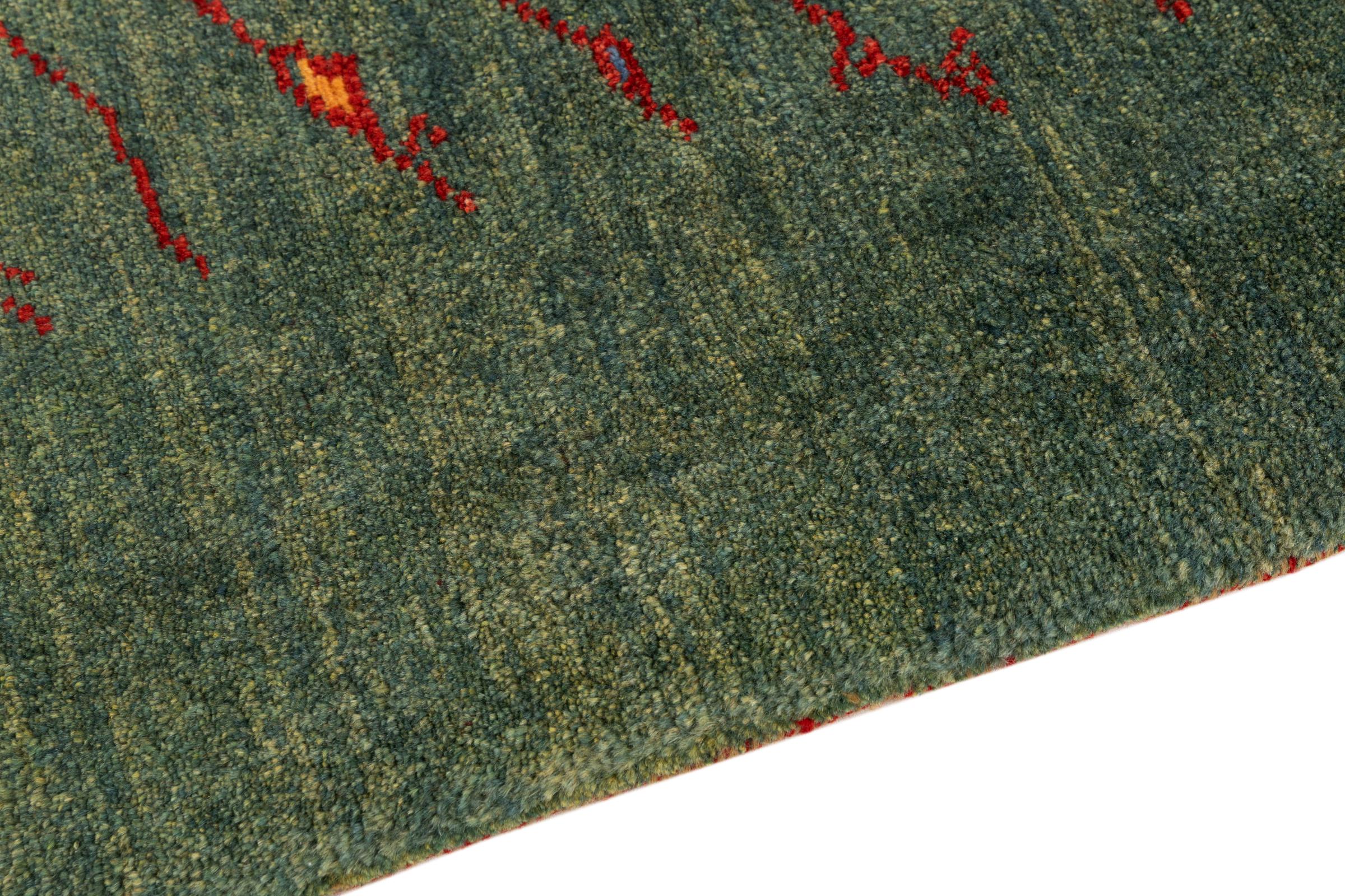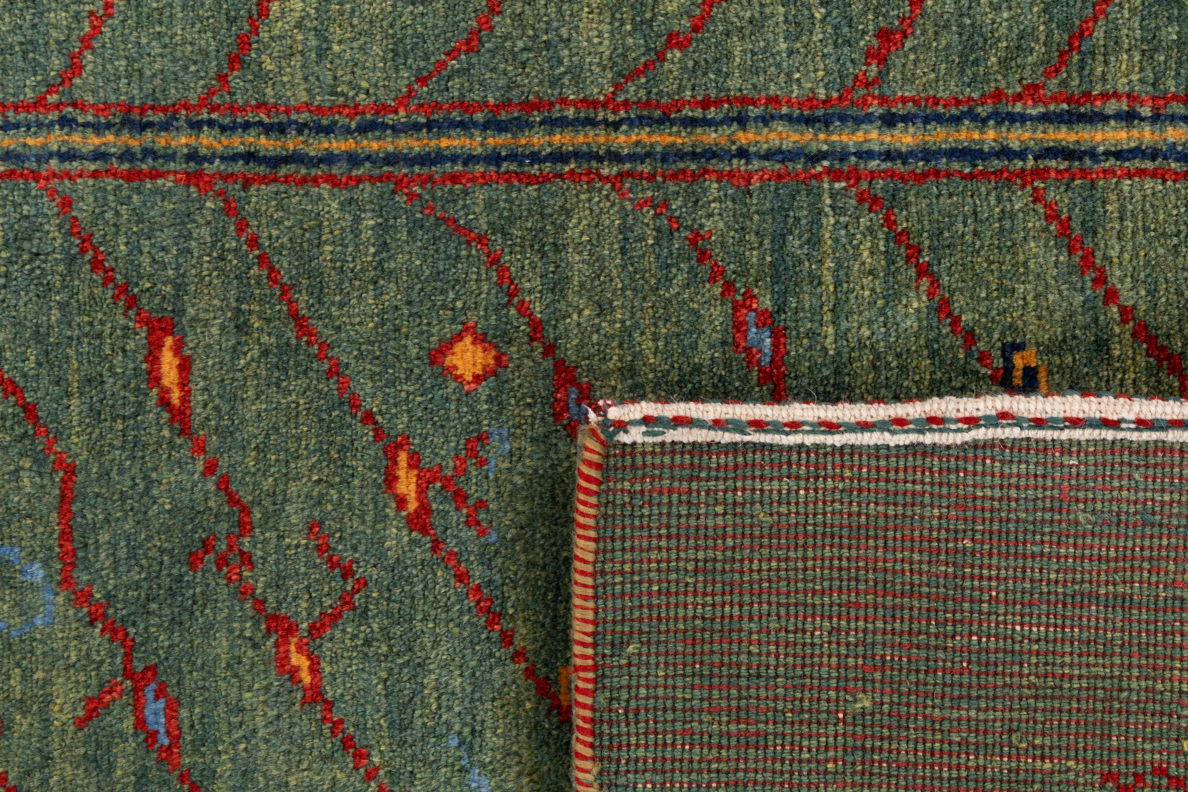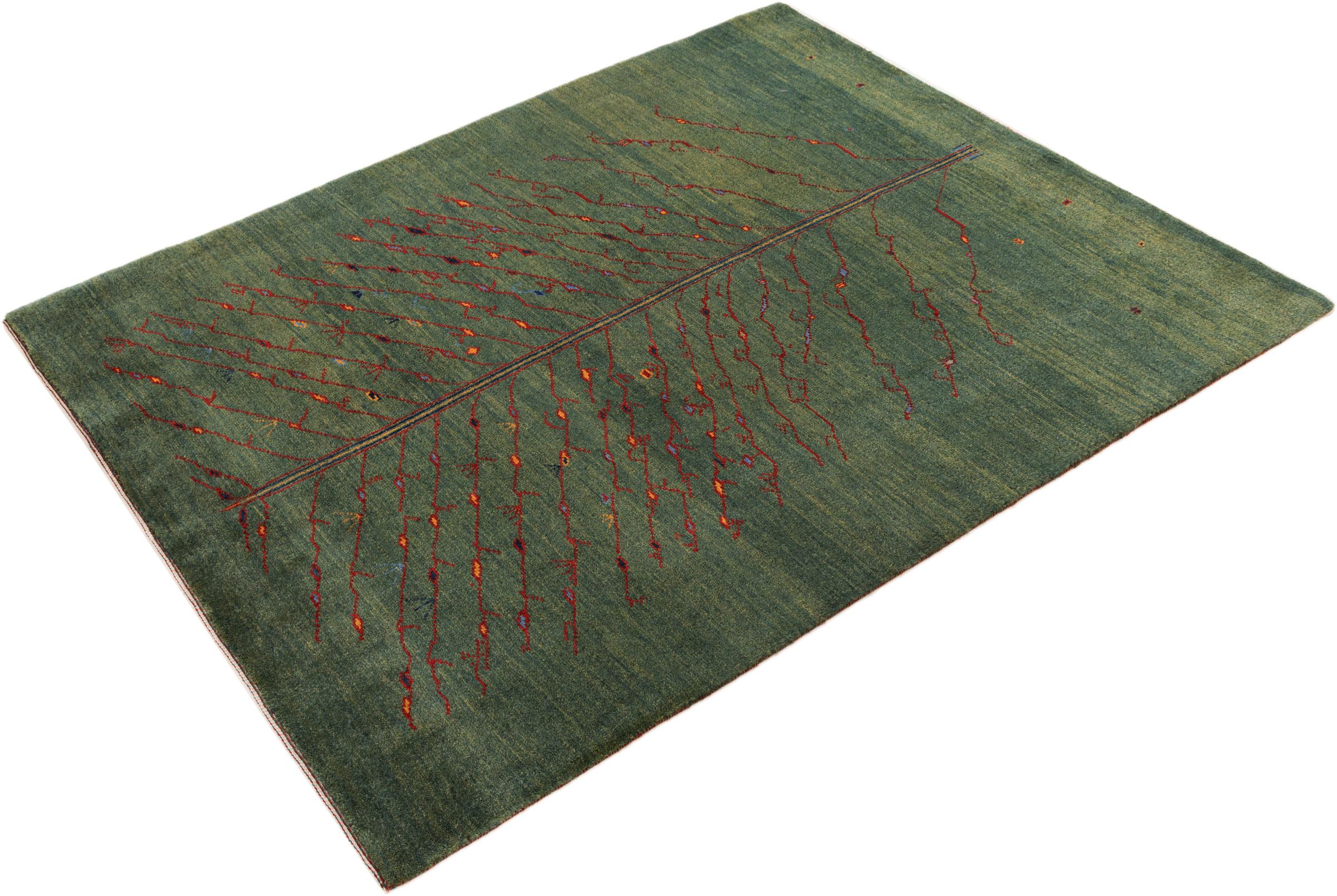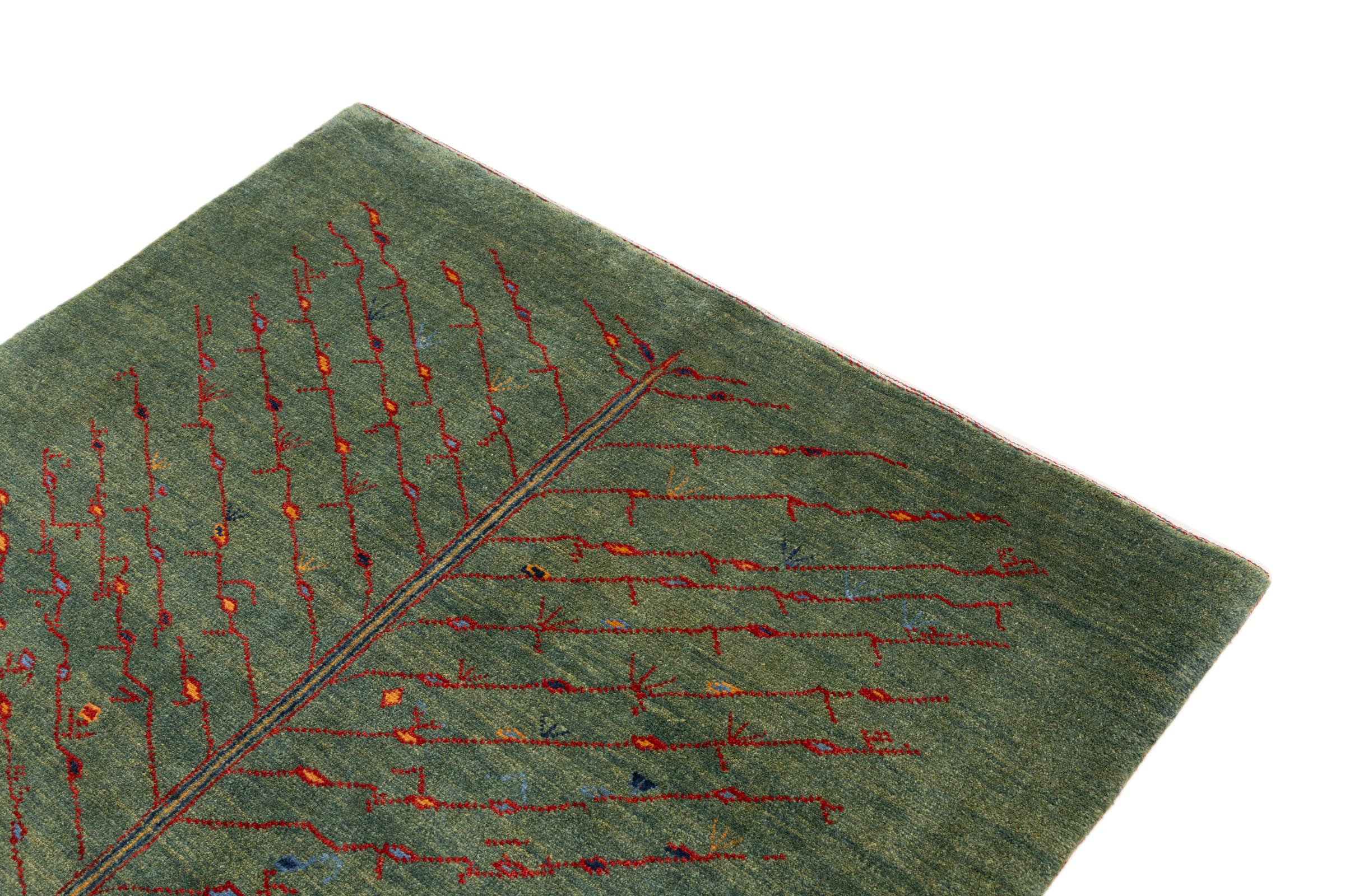 Dette smukke tæppe er en persisk Gabbeh og er en af ​​de højeste kvalitet Gabbeh tæpper. Tæpper er knyttet af nomader eller semi-nomader i Iran ved hjælp af traditionelt håndværk. De enkle motiver og mønstre er for det meste inspireret af nomadernes umiddelbare omgivelser. F.eks. Kan kameler, træer eller buske findes på traditionelle tæpper. Persiske Gabbeh-tæpper er lavet af uld fra lokale fårbesætninger. Ulden er derfor for det meste spundet for hånd. Hver af disse orientalske tæpper udgør en unik karakter af århundreder gammel kultur.