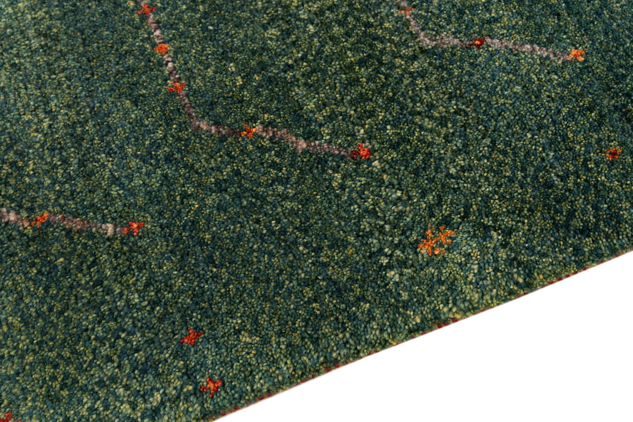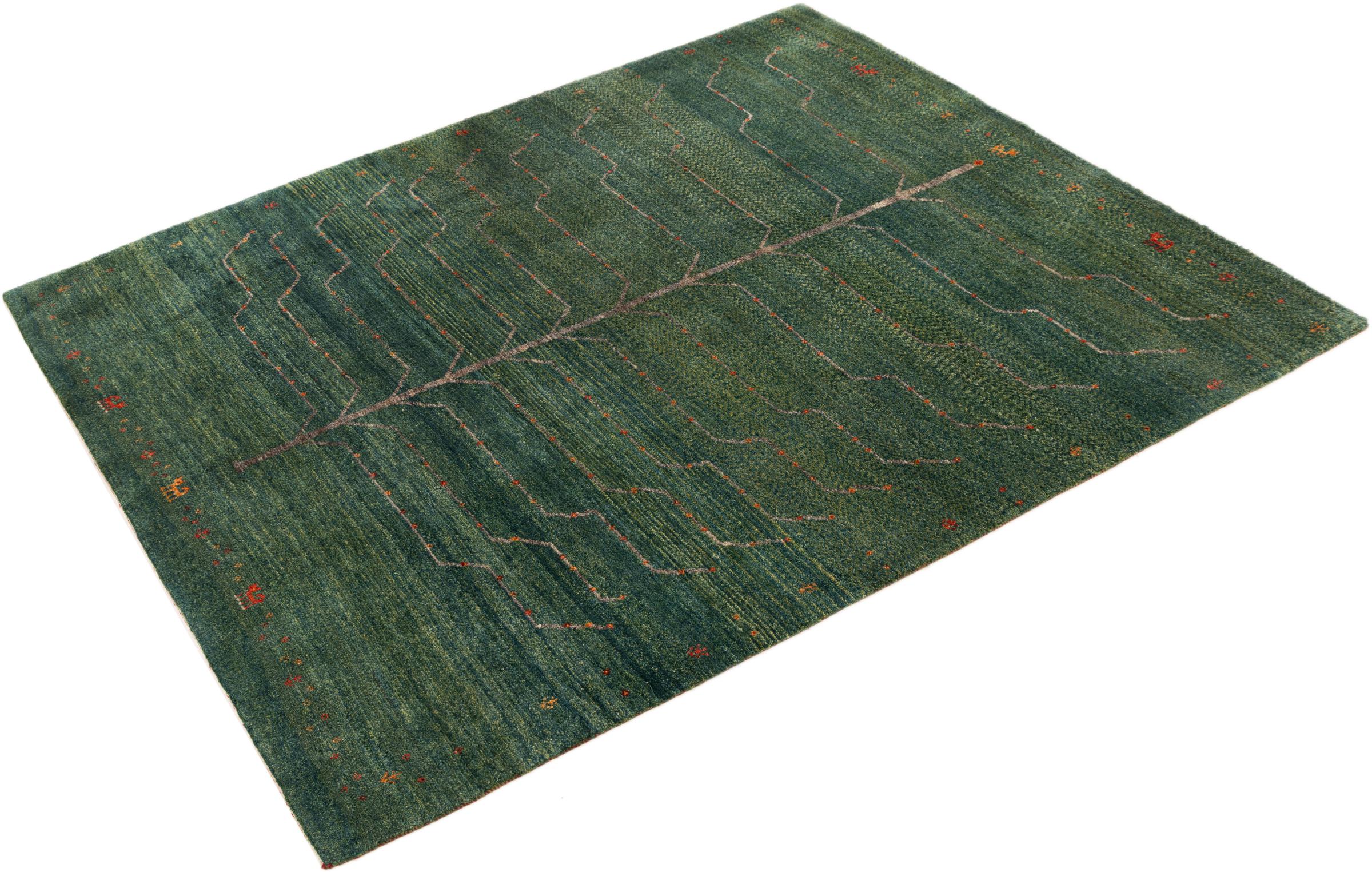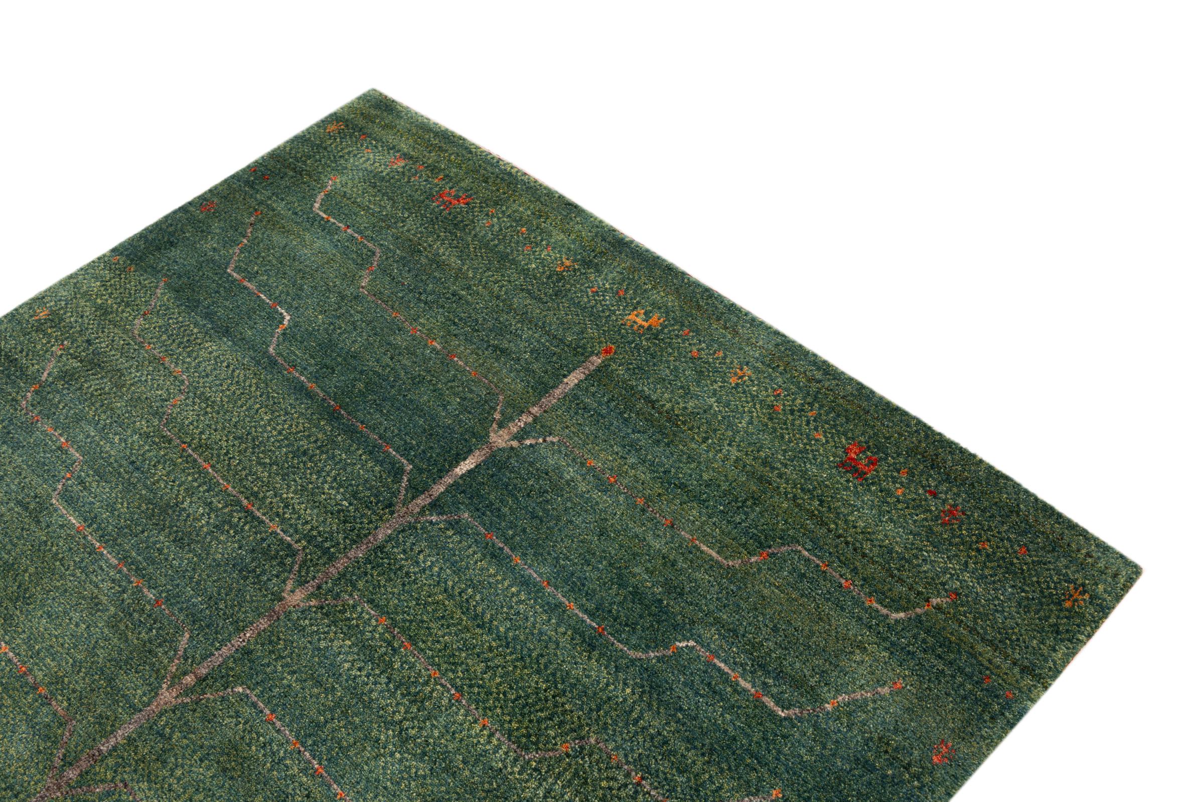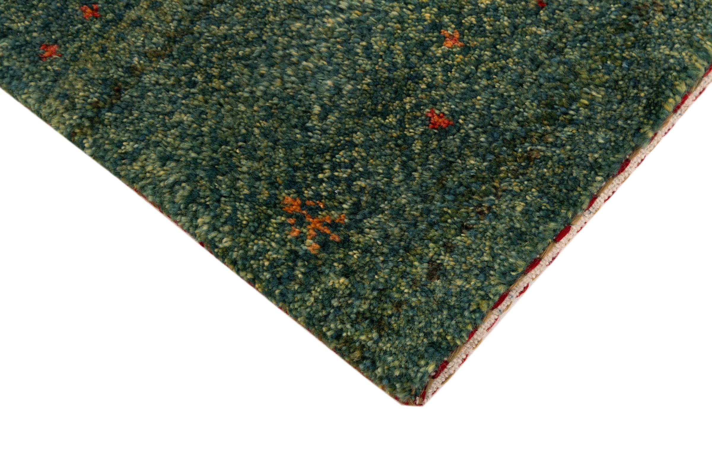 Dette smukke tæppe er en persisk Gabbeh og er en af ​​de højeste kvalitet Gabbeh tæpper. Tæpper er knyttet af nomader eller semi-nomader i Iran ved hjælp af traditionelt håndværk. De enkle motiver og mønstre er for det meste inspireret af nomadernes umiddelbare omgivelser. F.eks. Kan kameler, træer eller buske findes på traditionelle tæpper. Persiske Gabbeh-tæpper er lavet af uld fra lokale fårbesætninger. Ulden er derfor for det meste spundet for hånd. Hver af disse orientalske tæpper udgør en unik karakter af århundreder gammel kultur.