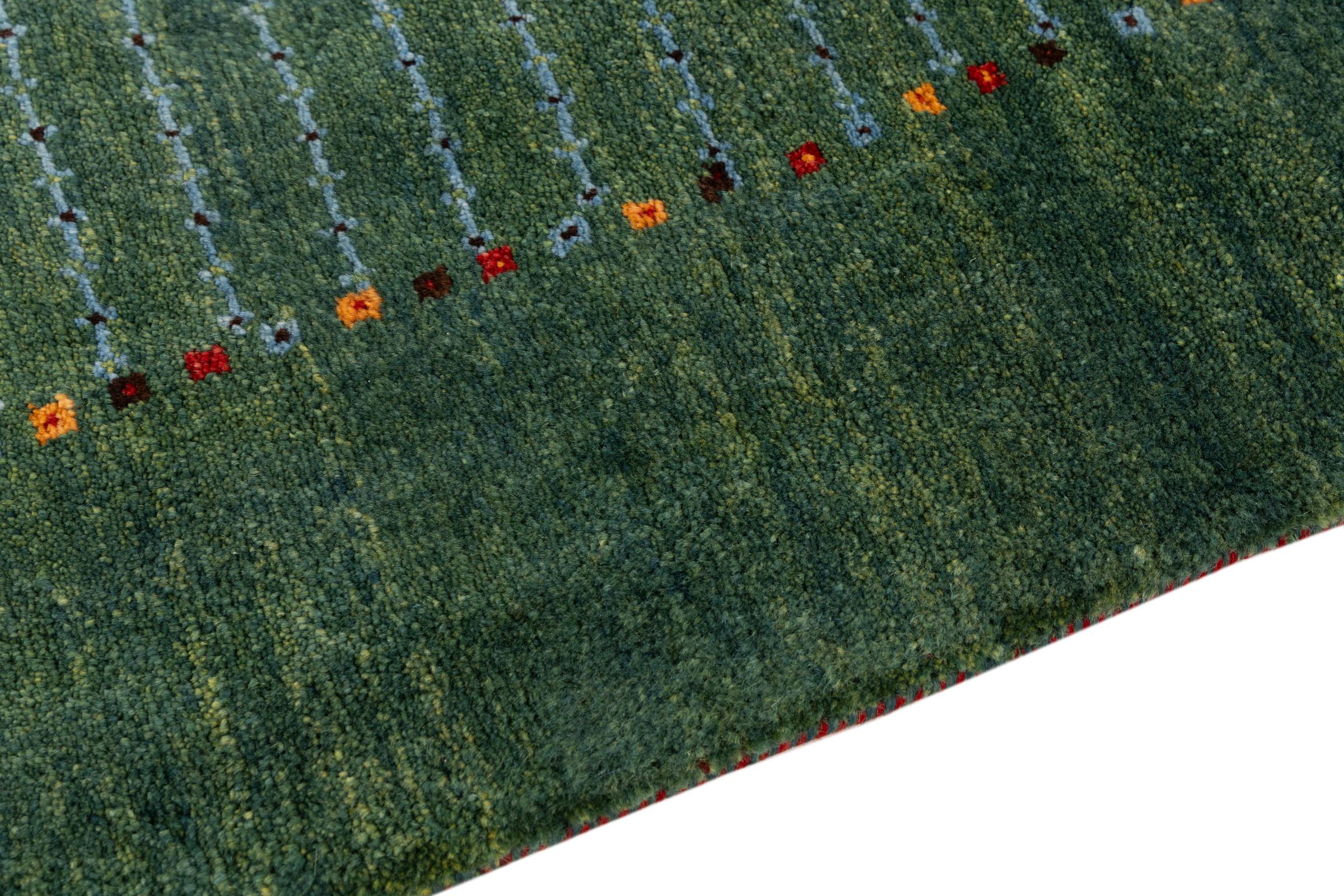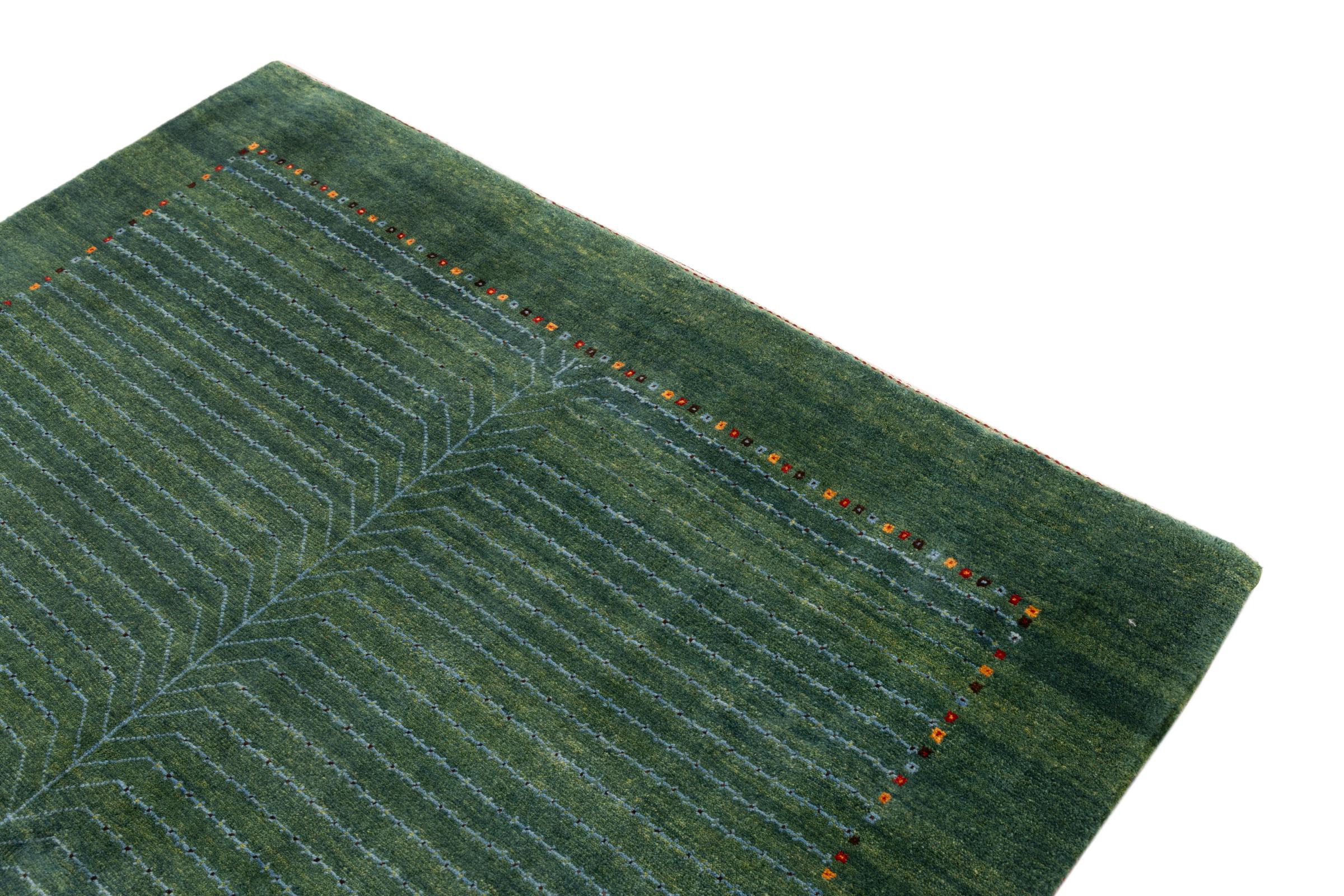 Dette smukke tæppe er en persisk Gabbeh og er en af ​​de højeste kvalitet Gabbeh tæpper. Tæpper er knyttet af nomader eller semi-nomader i Iran ved hjælp af traditionelt håndværk. De enkle motiver og mønstre er for det meste inspireret af nomadernes umiddelbare omgivelser. F.eks. Kan kameler, træer eller buske findes på traditionelle tæpper. Persiske Gabbeh-tæpper er lavet af uld fra lokale fårbesætninger. Ulden er derfor for det meste spundet for hånd. Hver af disse orientalske tæpper udgør en unik karakter af århundreder gammel kultur.