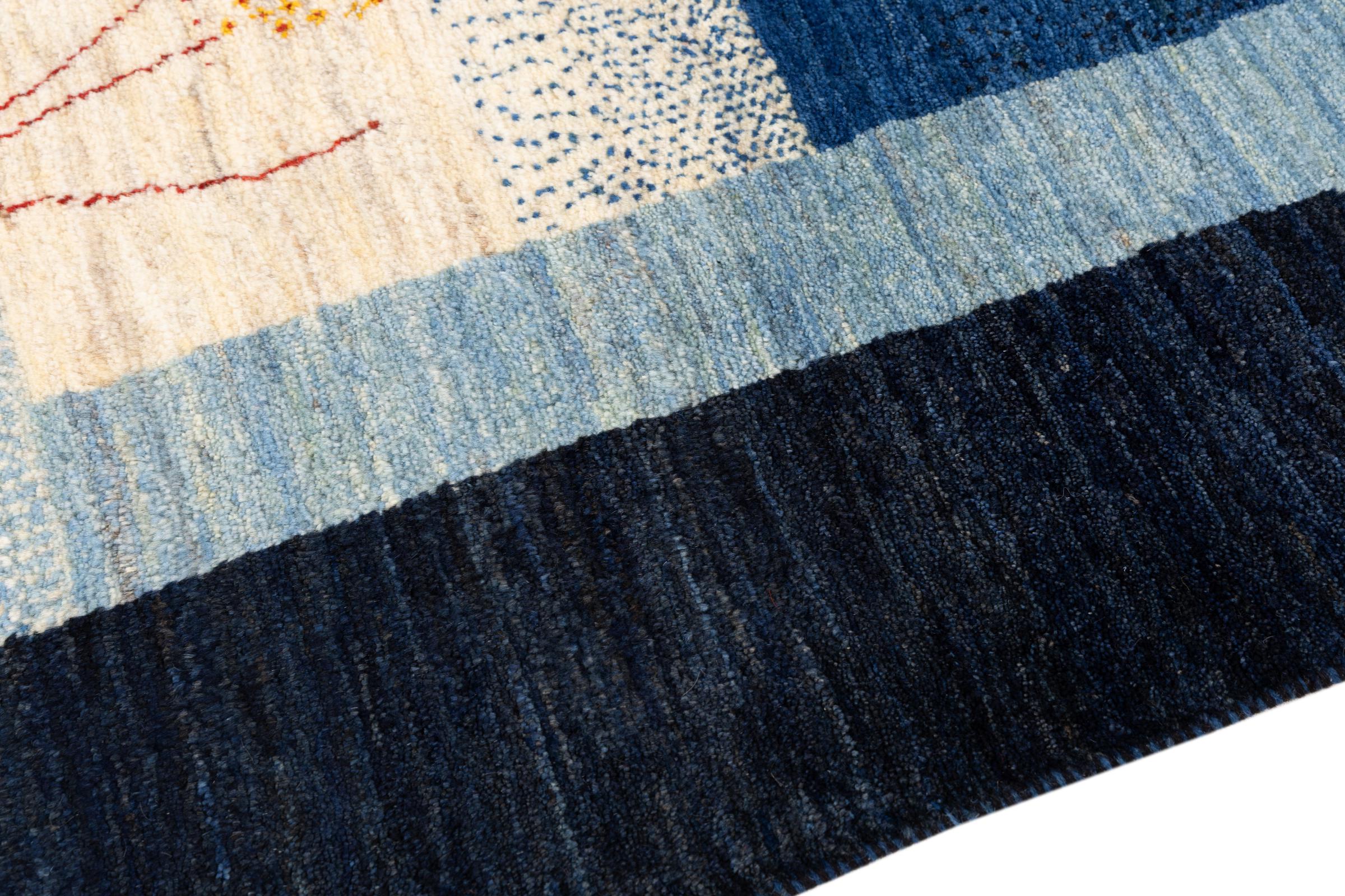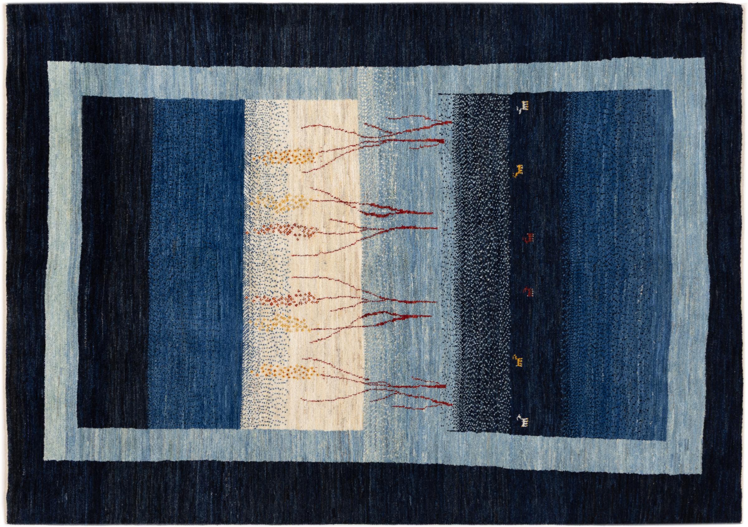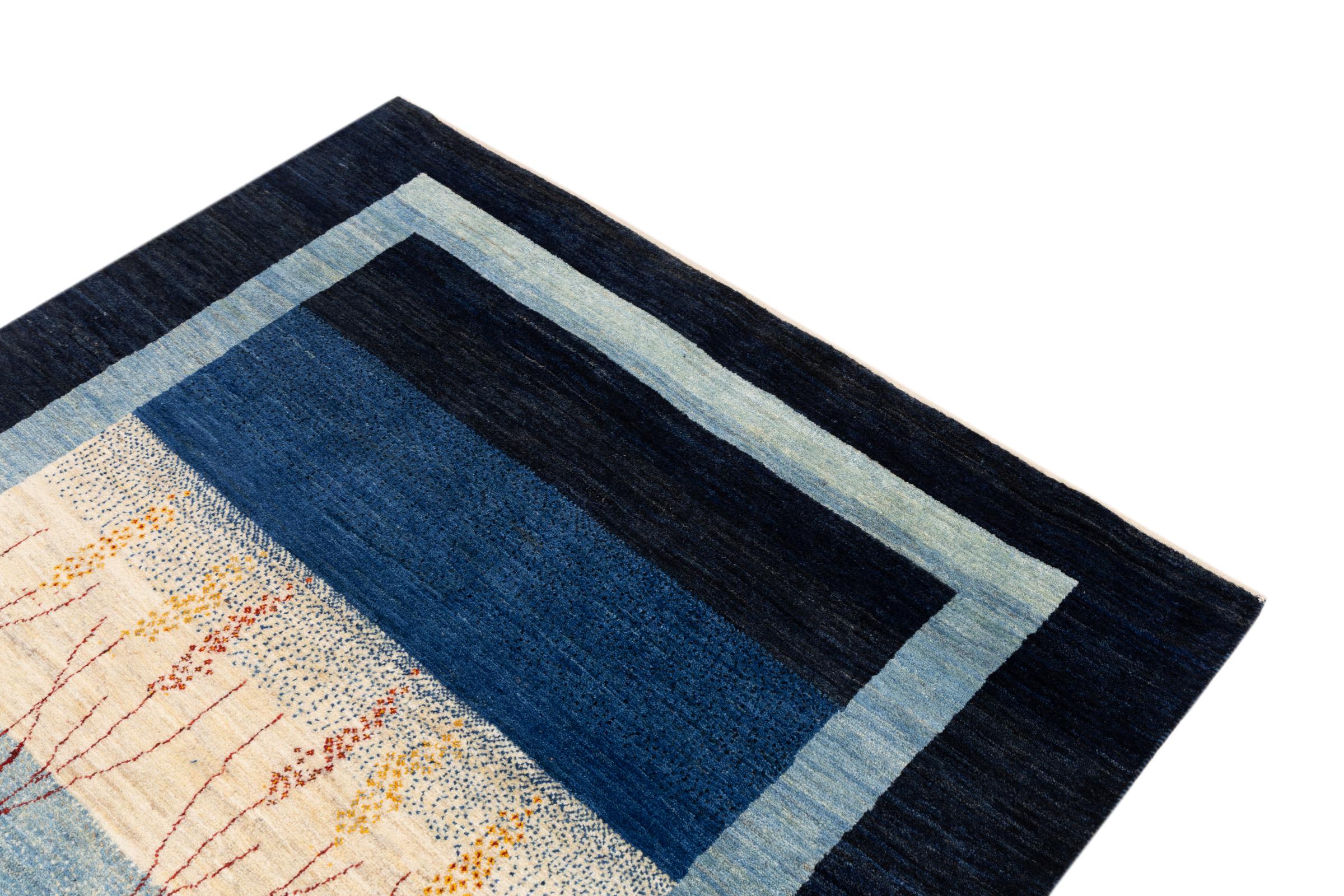 Dette smukke tæppe er en persisk Gabbeh og er en af ​​de højeste kvalitet Gabbeh tæpper. Tæpper er knyttet af nomader eller semi-nomader i Iran ved hjælp af traditionelt håndværk. De enkle motiver og mønstre er for det meste inspireret af nomadernes umiddelbare omgivelser. F.eks. Kan kameler, træer eller buske findes på traditionelle tæpper. Persiske Gabbeh-tæpper er lavet af uld fra lokale fårbesætninger. Ulden er derfor for det meste spundet for hånd. Hver af disse orientalske tæpper udgør en unik karakter af århundreder gammel kultur.