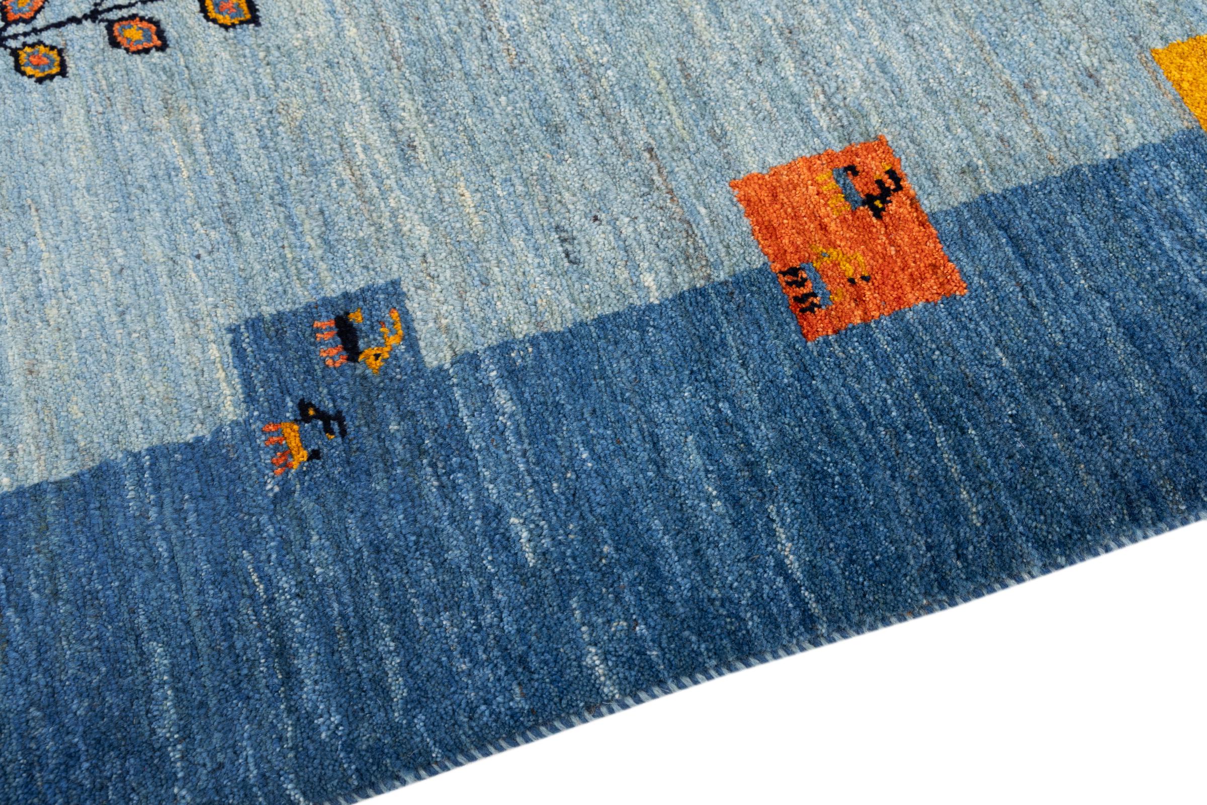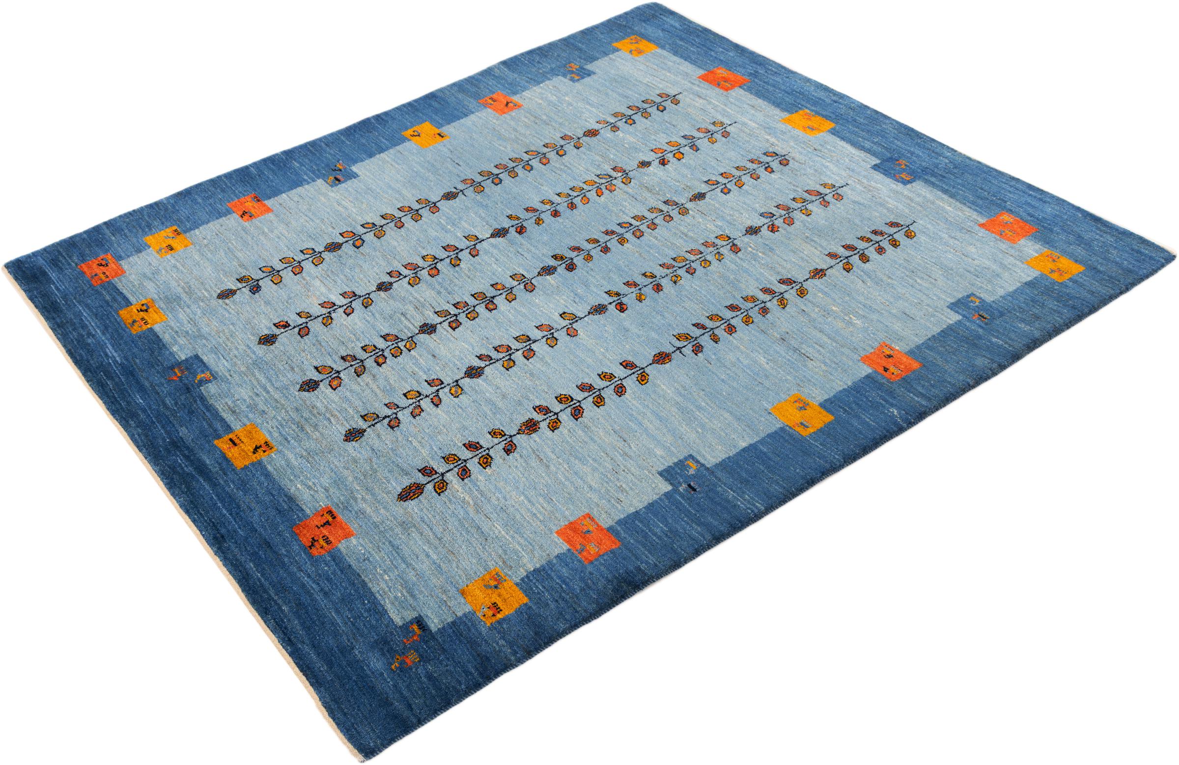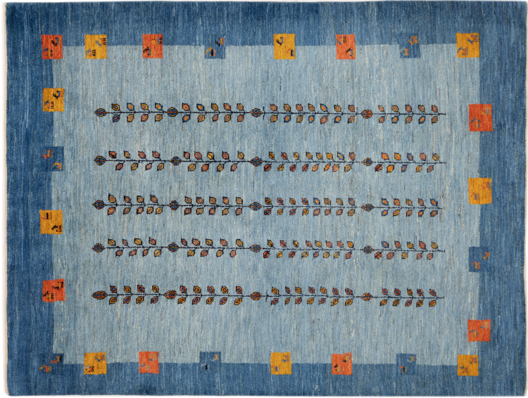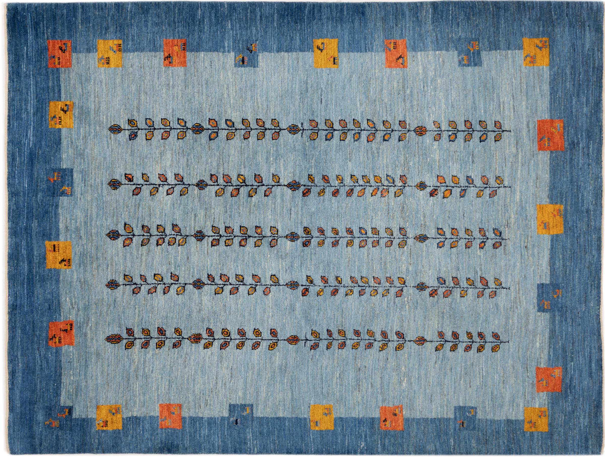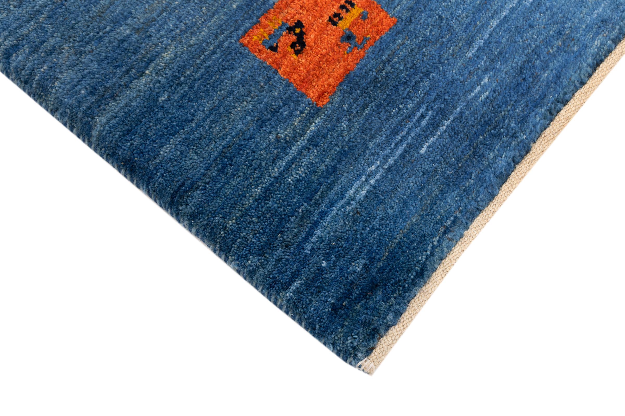 Dette smukke tæppe er en persisk Gabbeh og er en af ​​de højeste kvalitet Gabbeh tæpper. Tæpper er knyttet af nomader eller semi-nomader i Iran ved hjælp af traditionelt håndværk. De enkle motiver og mønstre er for det meste inspireret af nomadernes umiddelbare omgivelser. F.eks. Kan kameler, træer eller buske findes på traditionelle tæpper. Persiske Gabbeh-tæpper er lavet af uld fra lokale fårbesætninger. Ulden er derfor for det meste spundet for hånd. Hver af disse orientalske tæpper udgør en unik karakter af århundreder gammel kultur.