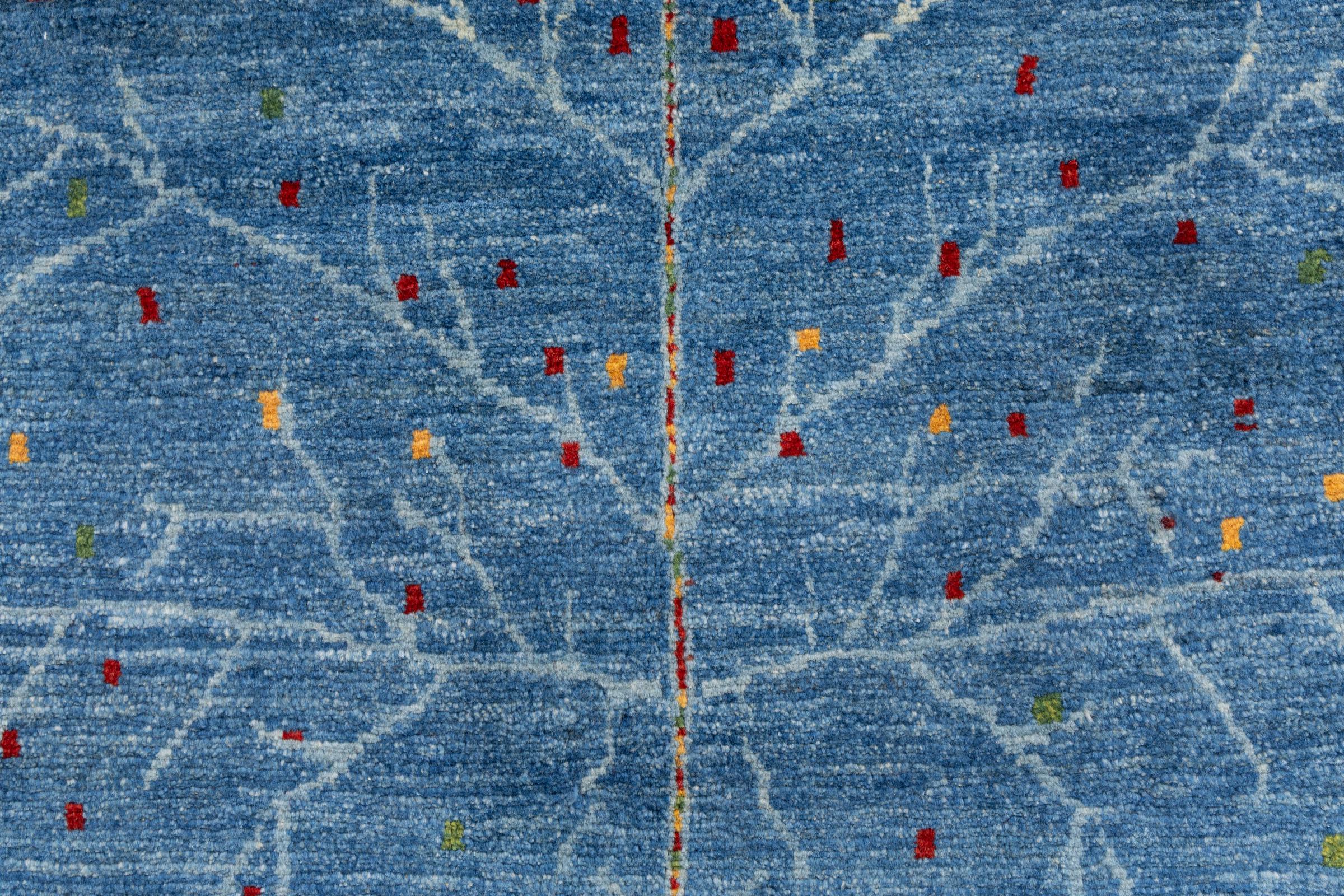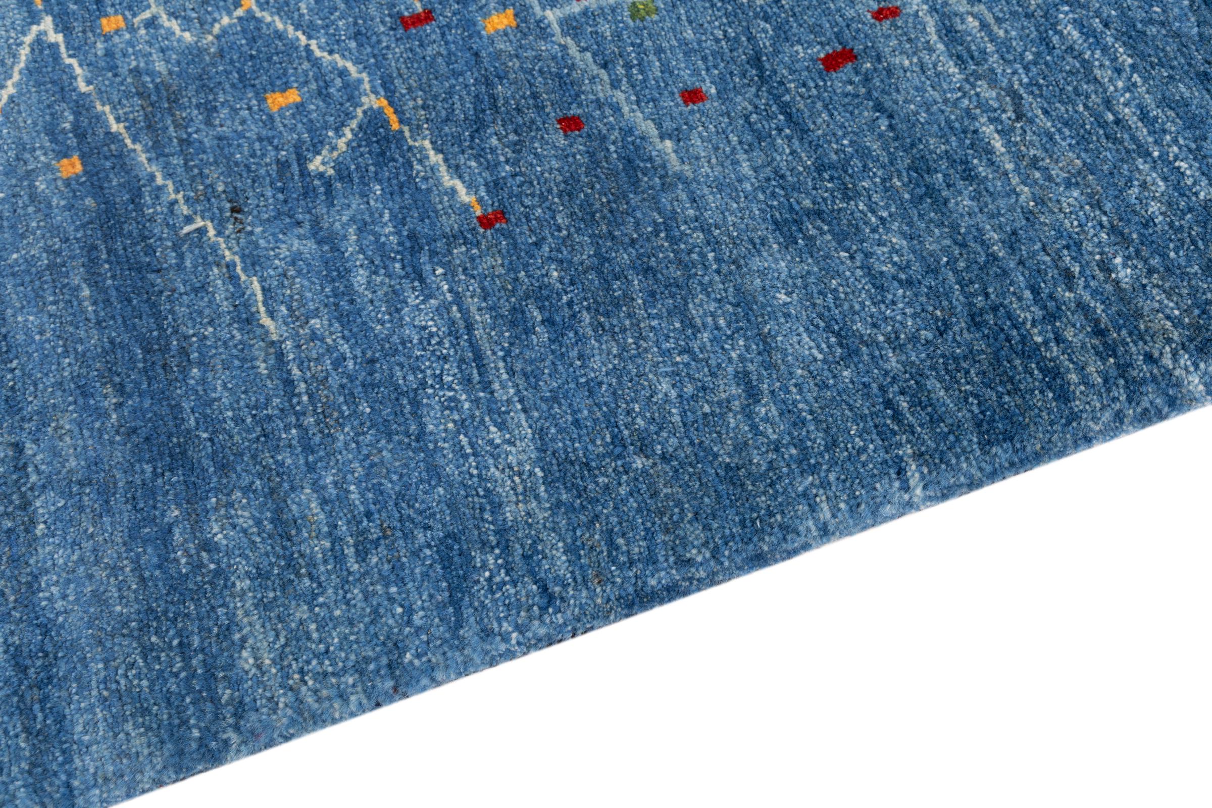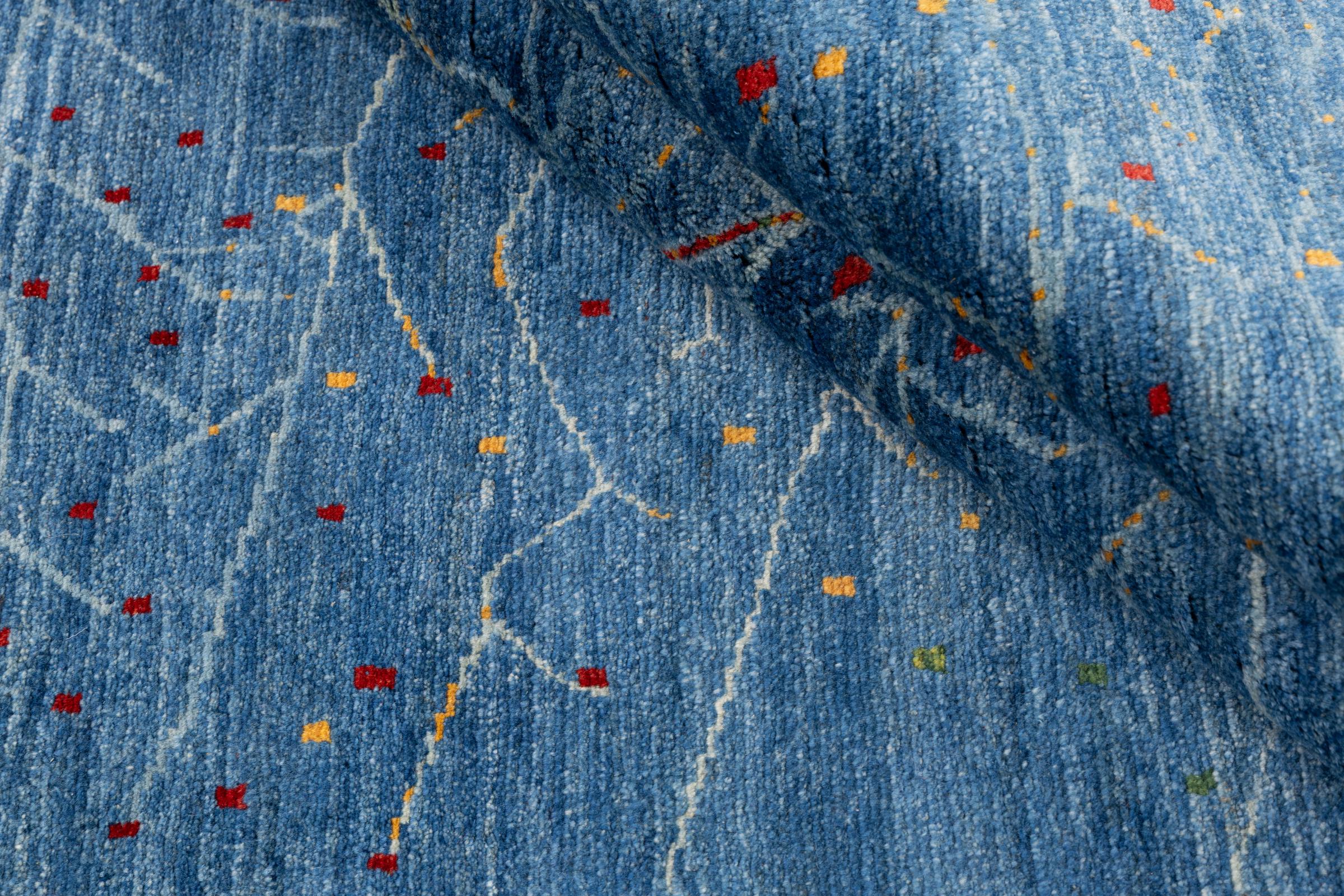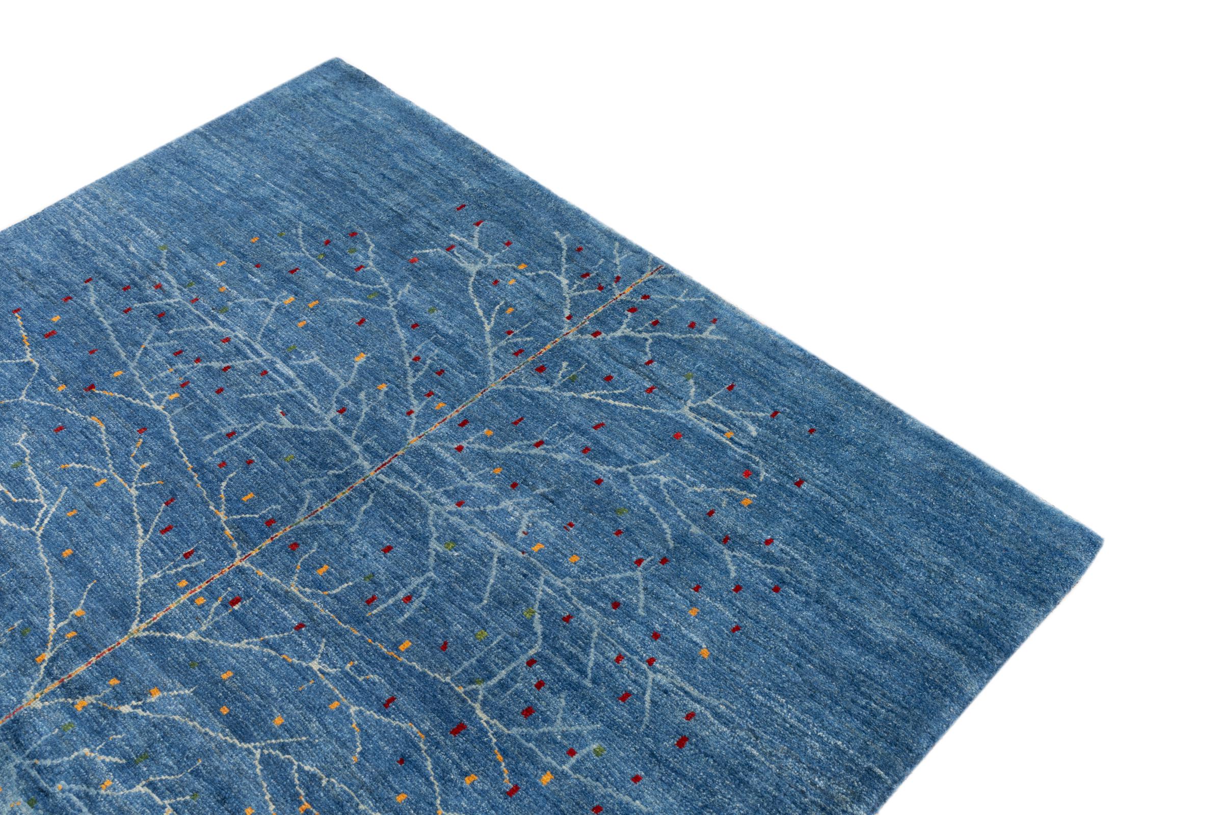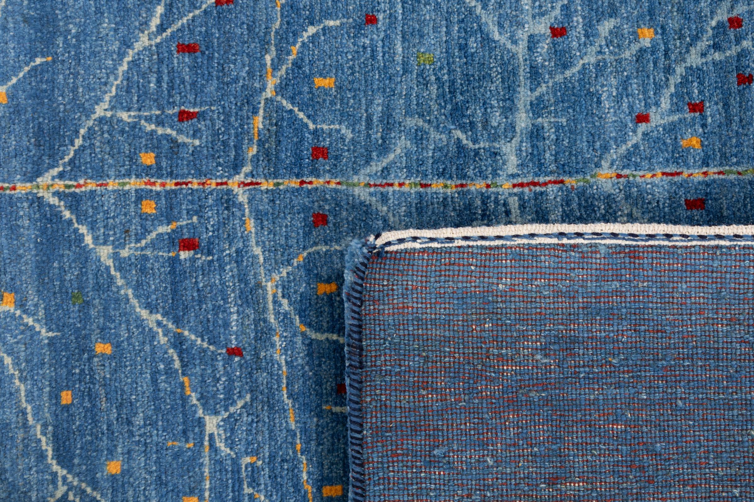 Dette smukke tæppe er en persisk Gabbeh og er en af ​​de højeste kvalitet Gabbeh tæpper. Tæpper er knyttet af nomader eller semi-nomader i Iran ved hjælp af traditionelt håndværk. De enkle motiver og mønstre er for det meste inspireret af nomadernes umiddelbare omgivelser. F.eks. Kan kameler, træer eller buske findes på traditionelle tæpper. Persiske Gabbeh-tæpper er lavet af uld fra lokale fårbesætninger. Ulden er derfor for det meste spundet for hånd. Hver af disse orientalske tæpper udgør en unik karakter af århundreder gammel kultur.