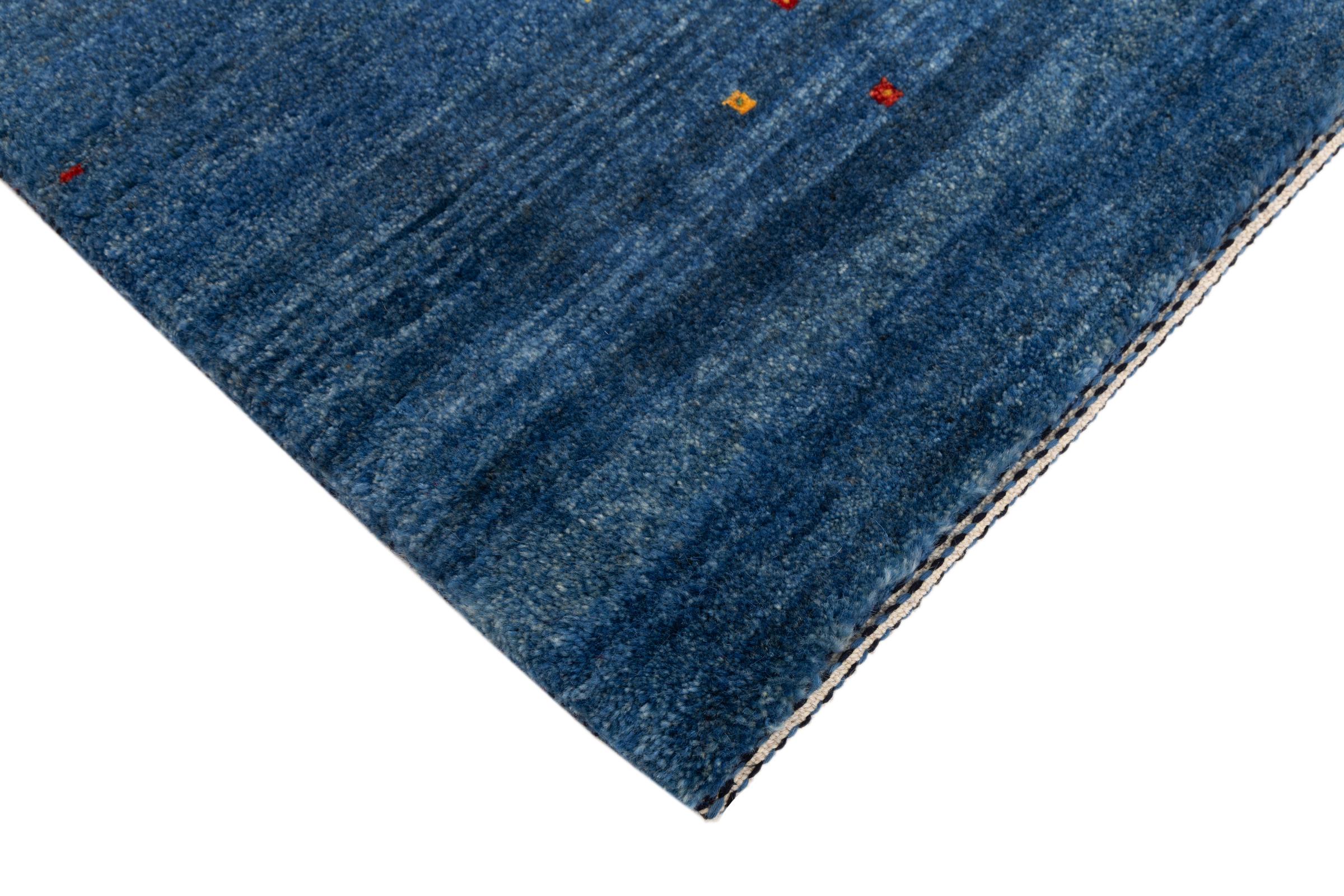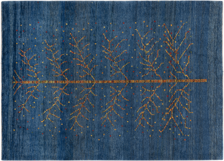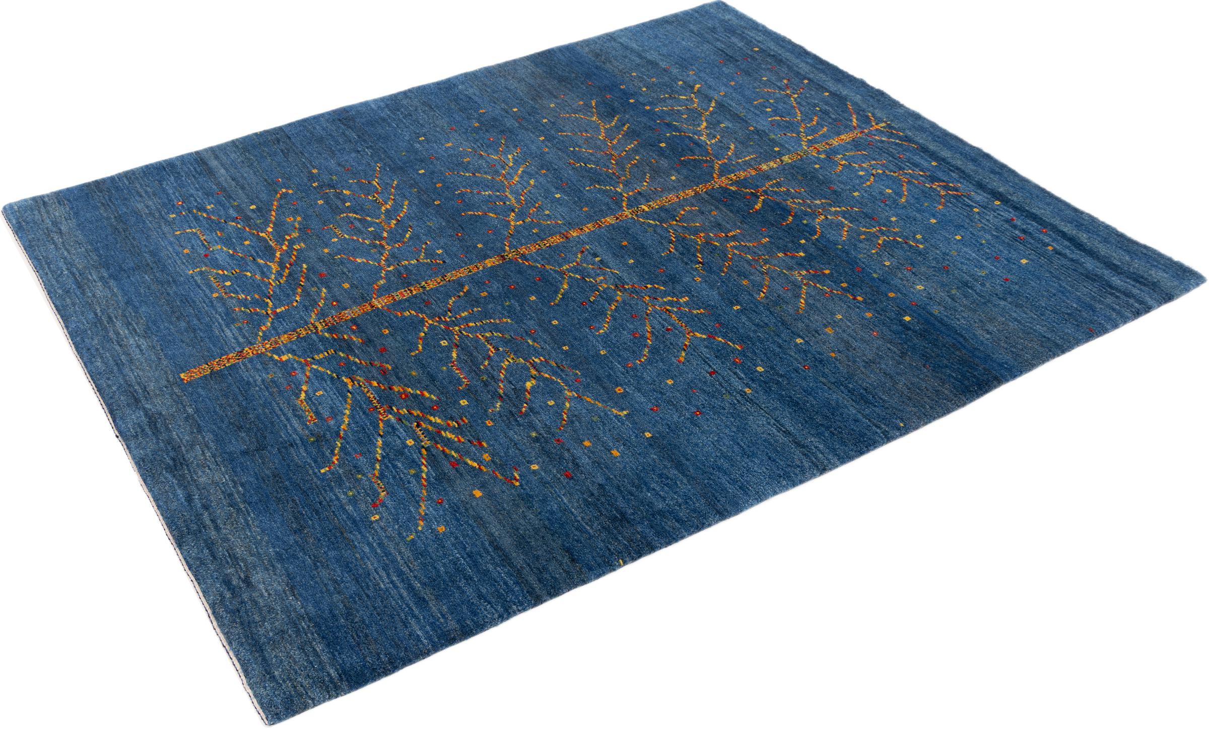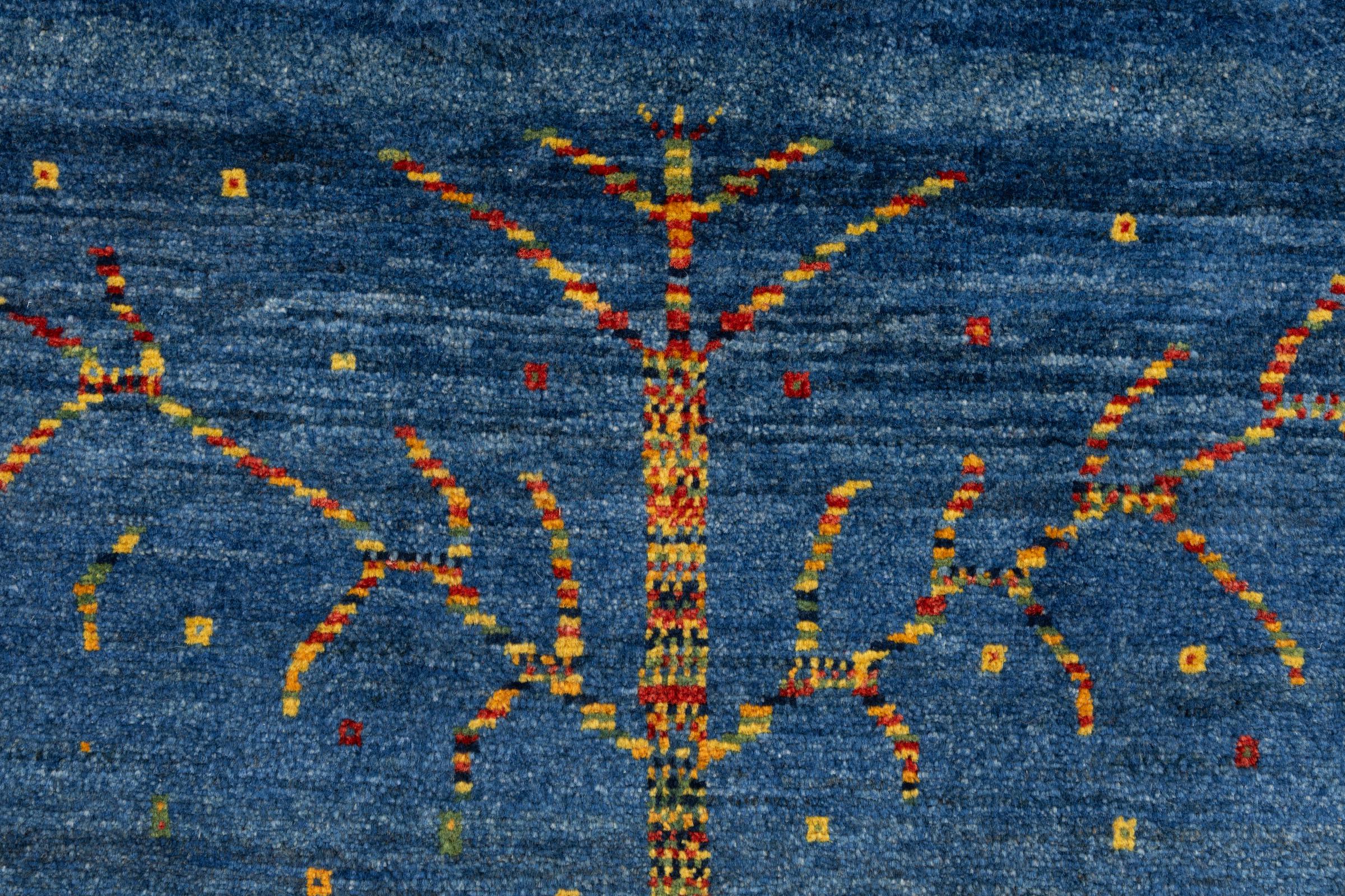 Dette smukke tæppe er en persisk Gabbeh og er en af ​​de højeste kvalitet Gabbeh tæpper. Tæpper er knyttet af nomader eller semi-nomader i Iran ved hjælp af traditionelt håndværk. De enkle motiver og mønstre er for det meste inspireret af nomadernes umiddelbare omgivelser. F.eks. Kan kameler, træer eller buske findes på traditionelle tæpper. Persiske Gabbeh-tæpper er lavet af uld fra lokale fårbesætninger. Ulden er derfor for det meste spundet for hånd. Hver af disse orientalske tæpper udgør en unik karakter af århundreder gammel kultur.