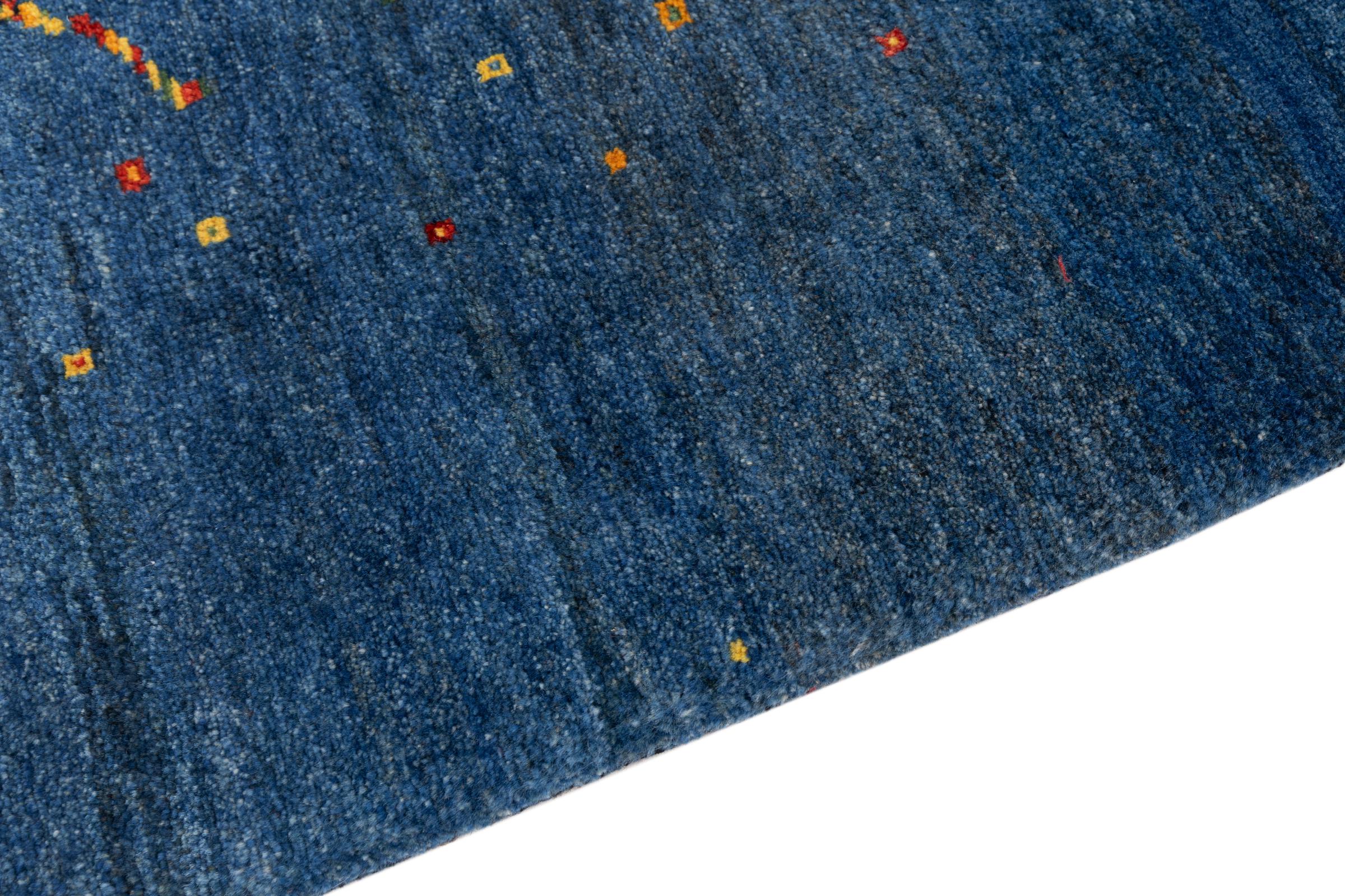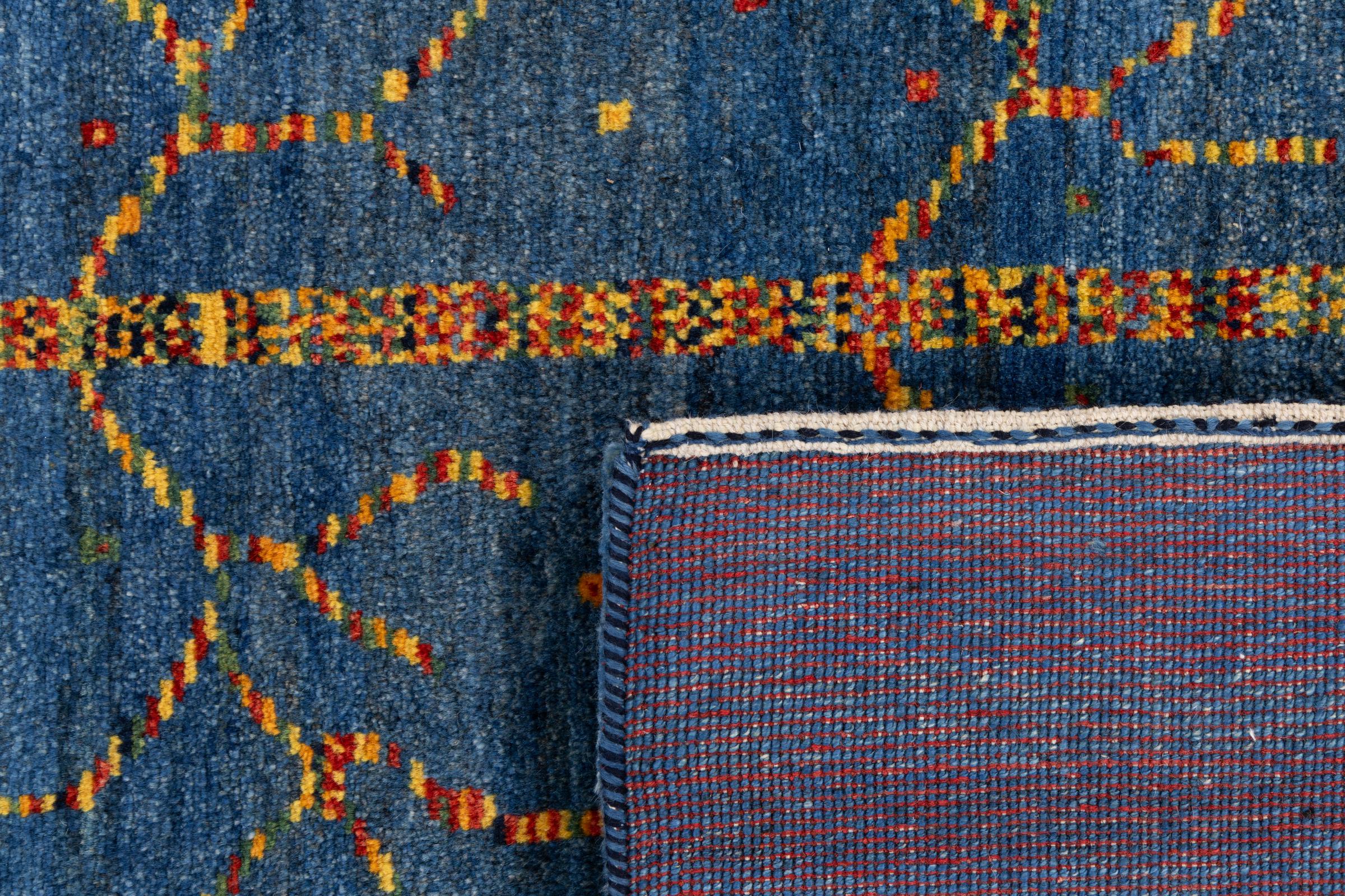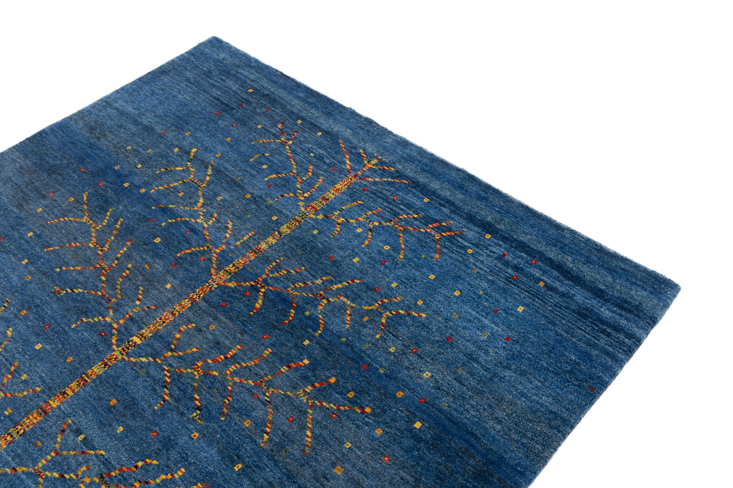 Dette smukke tæppe er en persisk Gabbeh og er en af ​​de højeste kvalitet Gabbeh tæpper. Tæpper er knyttet af nomader eller semi-nomader i Iran ved hjælp af traditionelt håndværk. De enkle motiver og mønstre er for det meste inspireret af nomadernes umiddelbare omgivelser. F.eks. Kan kameler, træer eller buske findes på traditionelle tæpper. Persiske Gabbeh-tæpper er lavet af uld fra lokale fårbesætninger. Ulden er derfor for det meste spundet for hånd. Hver af disse orientalske tæpper udgør en unik karakter af århundreder gammel kultur.