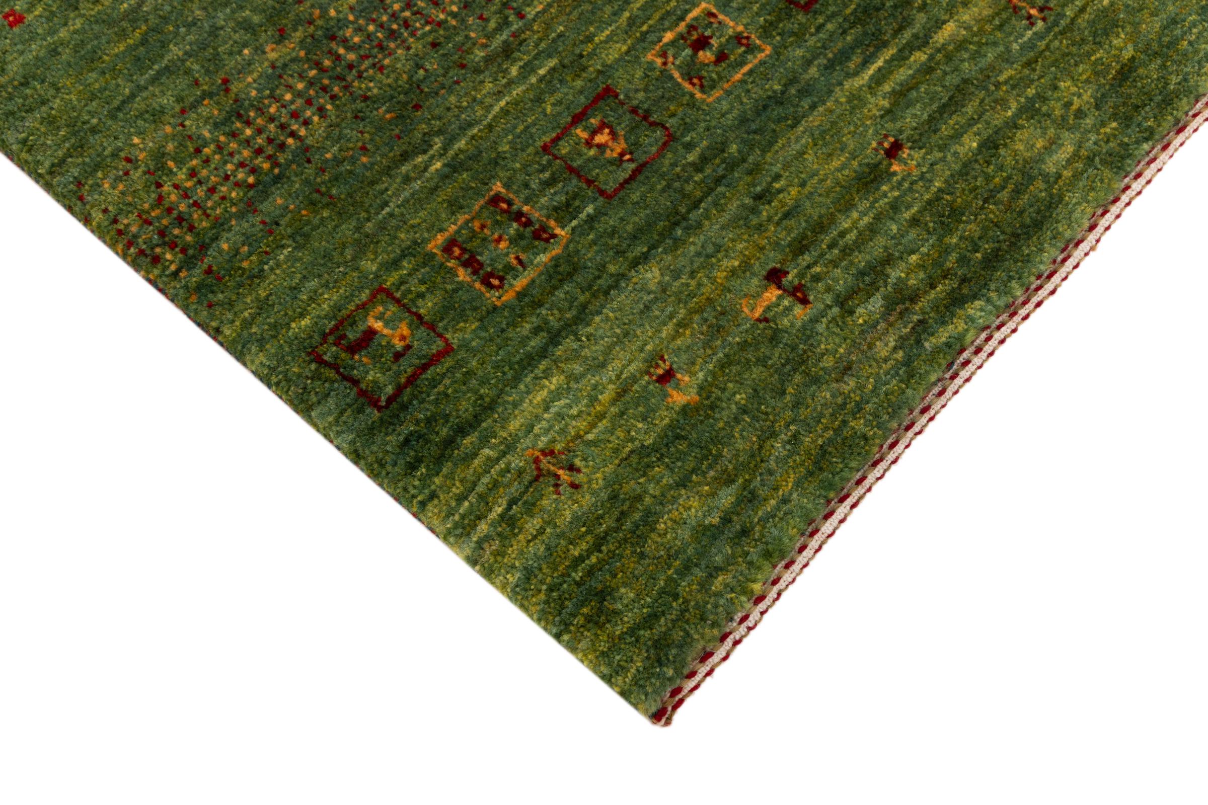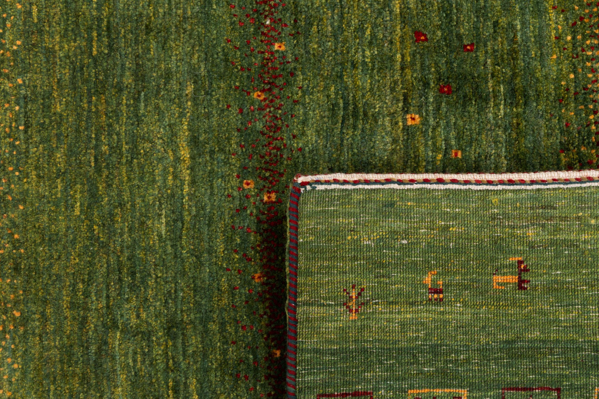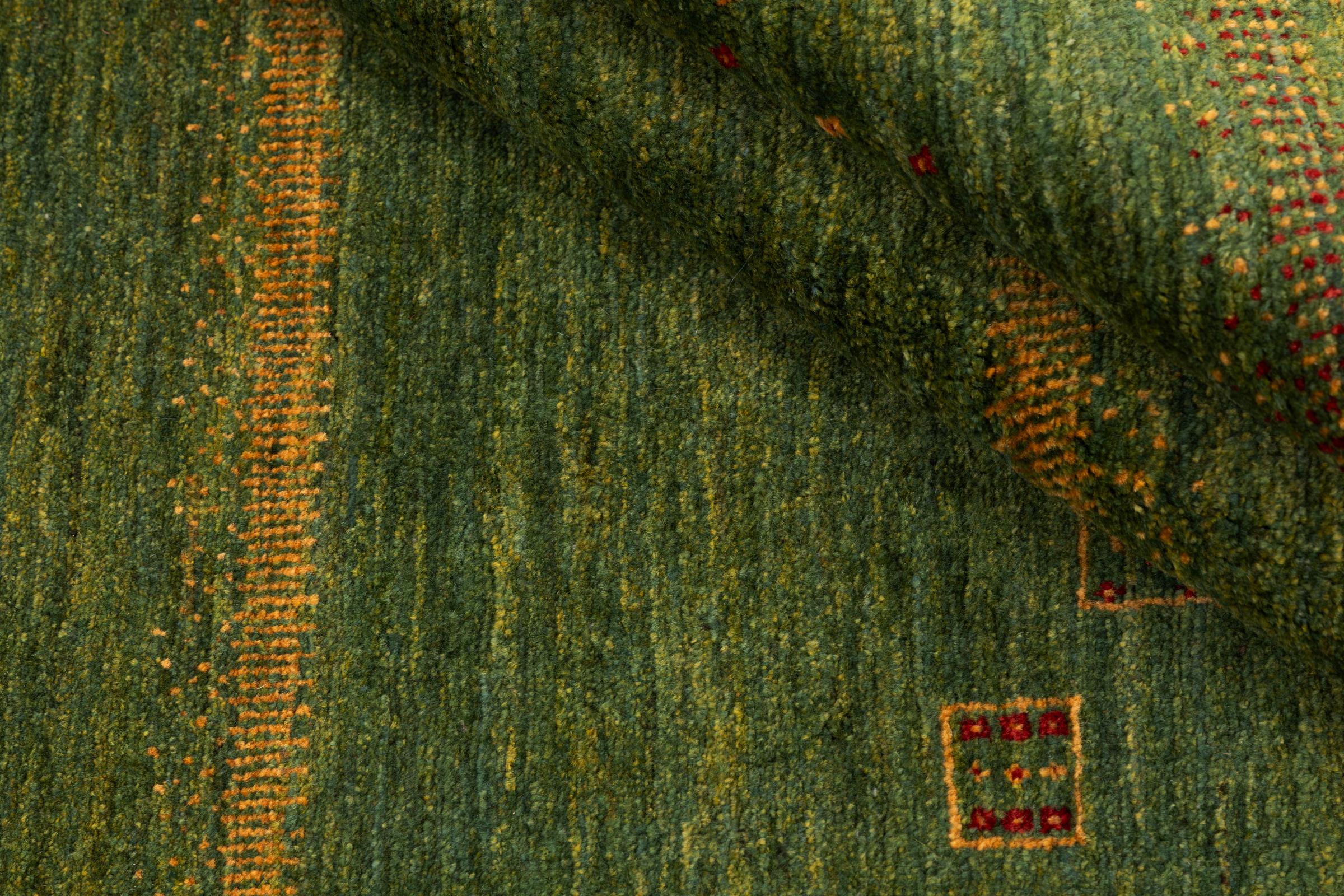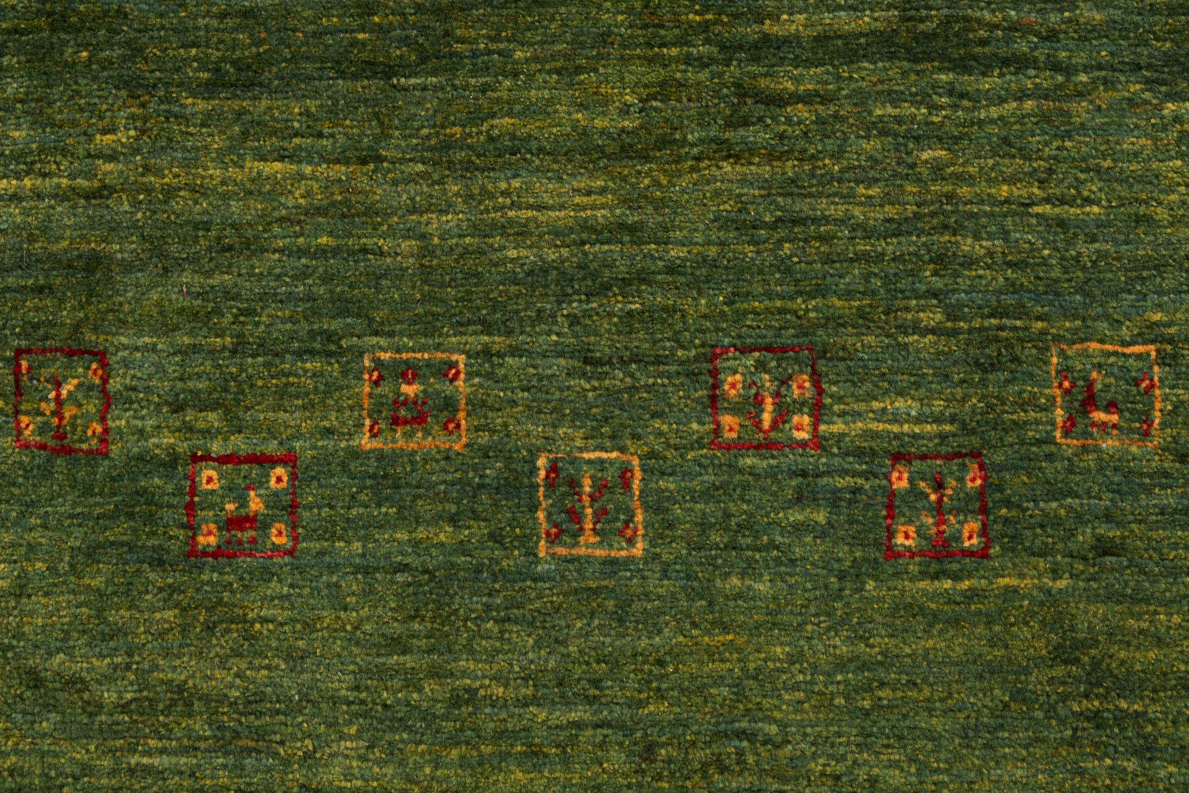 Dette smukke tæppe er en persisk Gabbeh og er en af ​​de højeste kvalitet Gabbeh tæpper. Tæpper er knyttet af nomader eller semi-nomader i Iran ved hjælp af traditionelt håndværk. De enkle motiver og mønstre er for det meste inspireret af nomadernes umiddelbare omgivelser. F.eks. Kan kameler, træer eller buske findes på traditionelle tæpper. Persiske Gabbeh-tæpper er lavet af uld fra lokale fårbesætninger. Ulden er derfor for det meste spundet for hånd. Hver af disse orientalske tæpper udgør en unik karakter af århundreder gammel kultur.