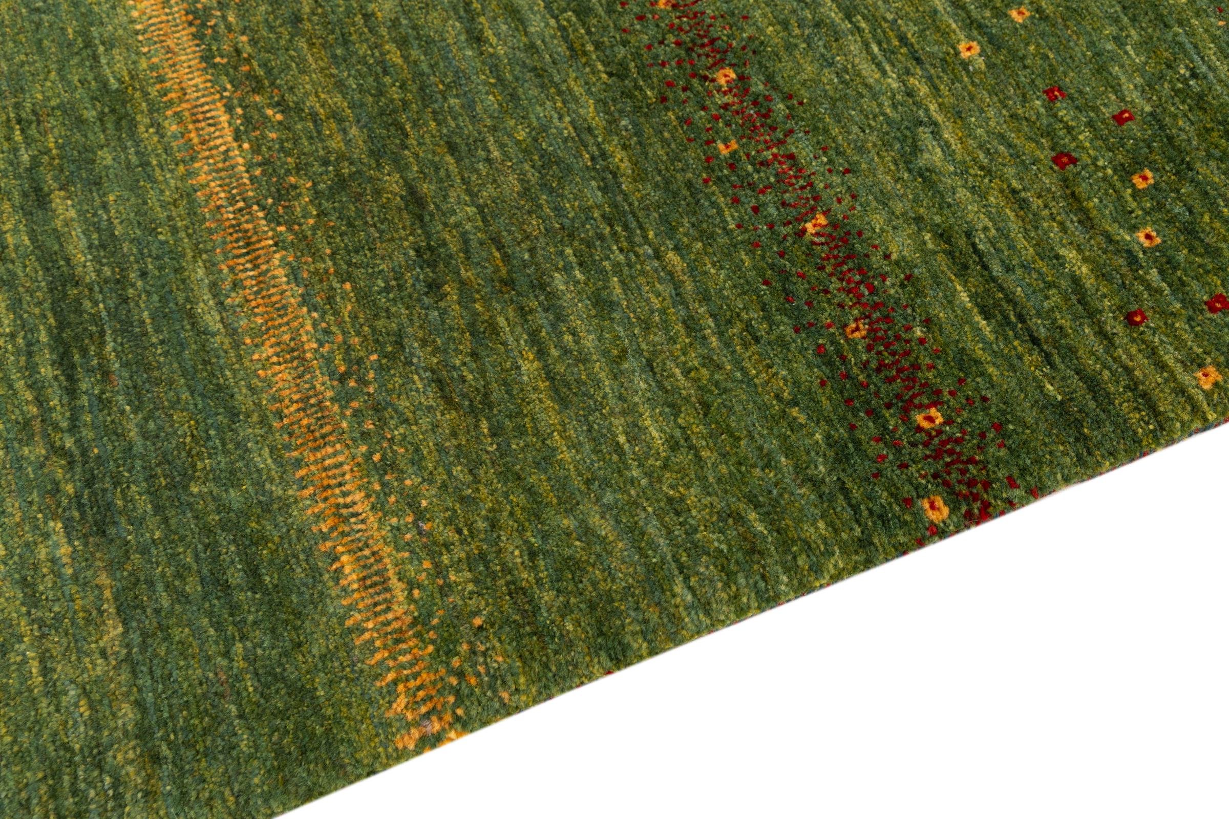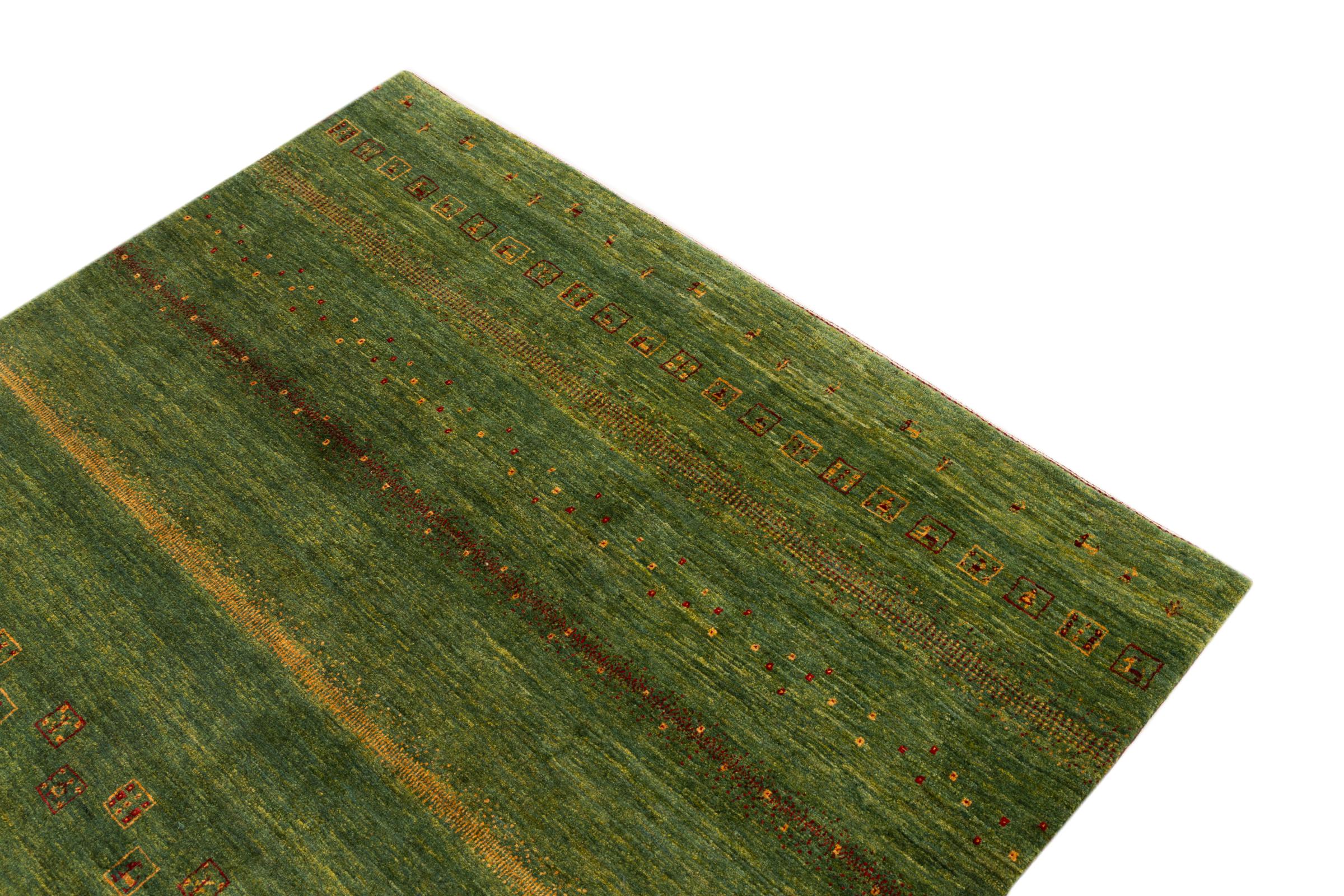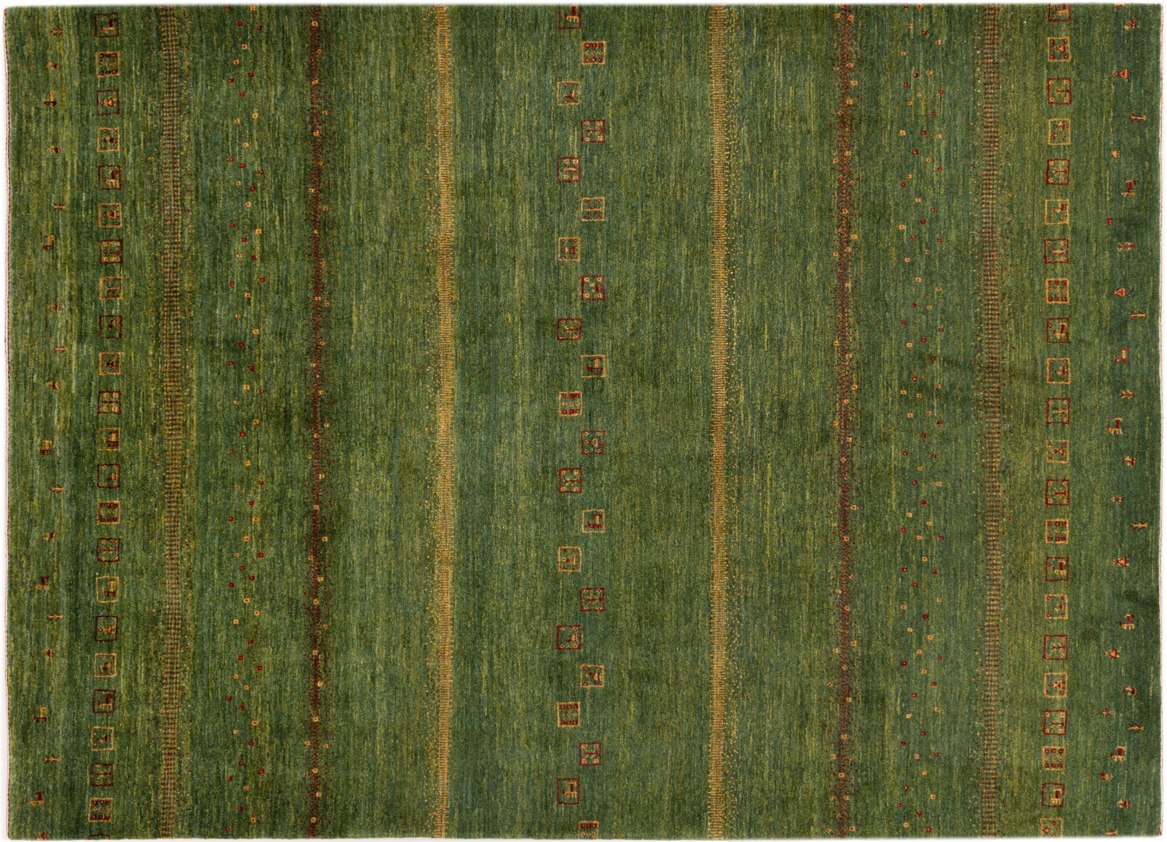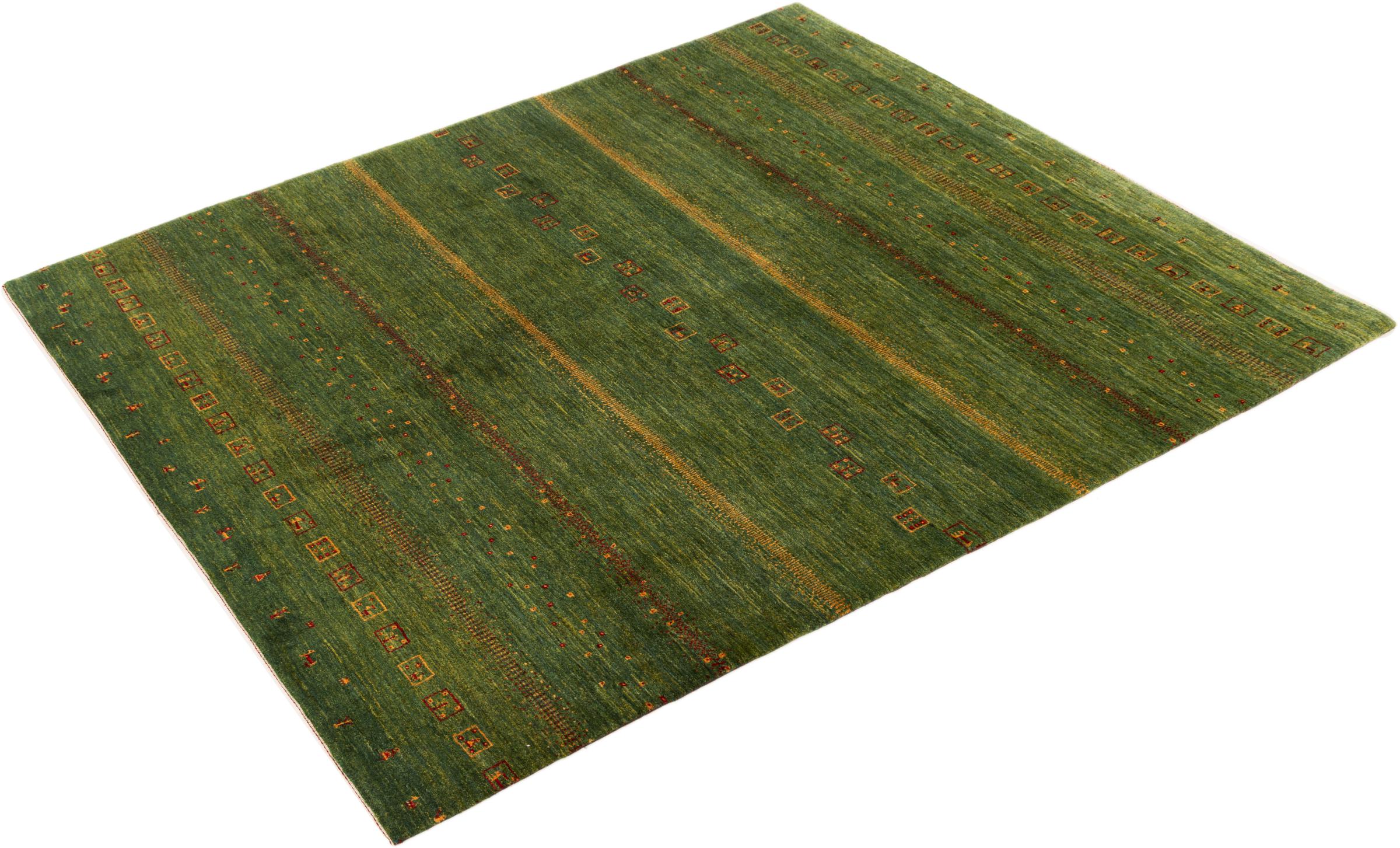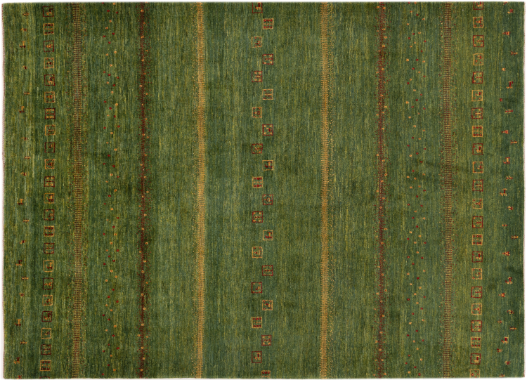 Dette smukke tæppe er en persisk Gabbeh og er en af ​​de højeste kvalitet Gabbeh tæpper. Tæpper er knyttet af nomader eller semi-nomader i Iran ved hjælp af traditionelt håndværk. De enkle motiver og mønstre er for det meste inspireret af nomadernes umiddelbare omgivelser. F.eks. Kan kameler, træer eller buske findes på traditionelle tæpper. Persiske Gabbeh-tæpper er lavet af uld fra lokale fårbesætninger. Ulden er derfor for det meste spundet for hånd. Hver af disse orientalske tæpper udgør en unik karakter af århundreder gammel kultur.