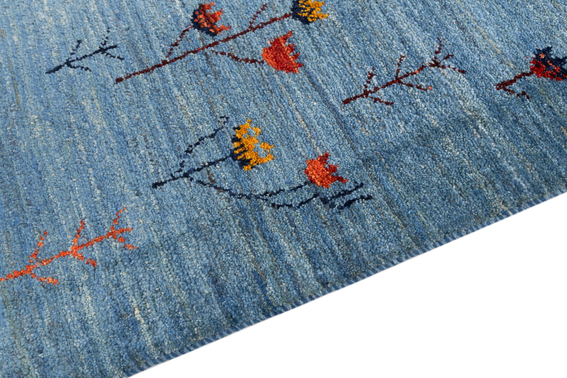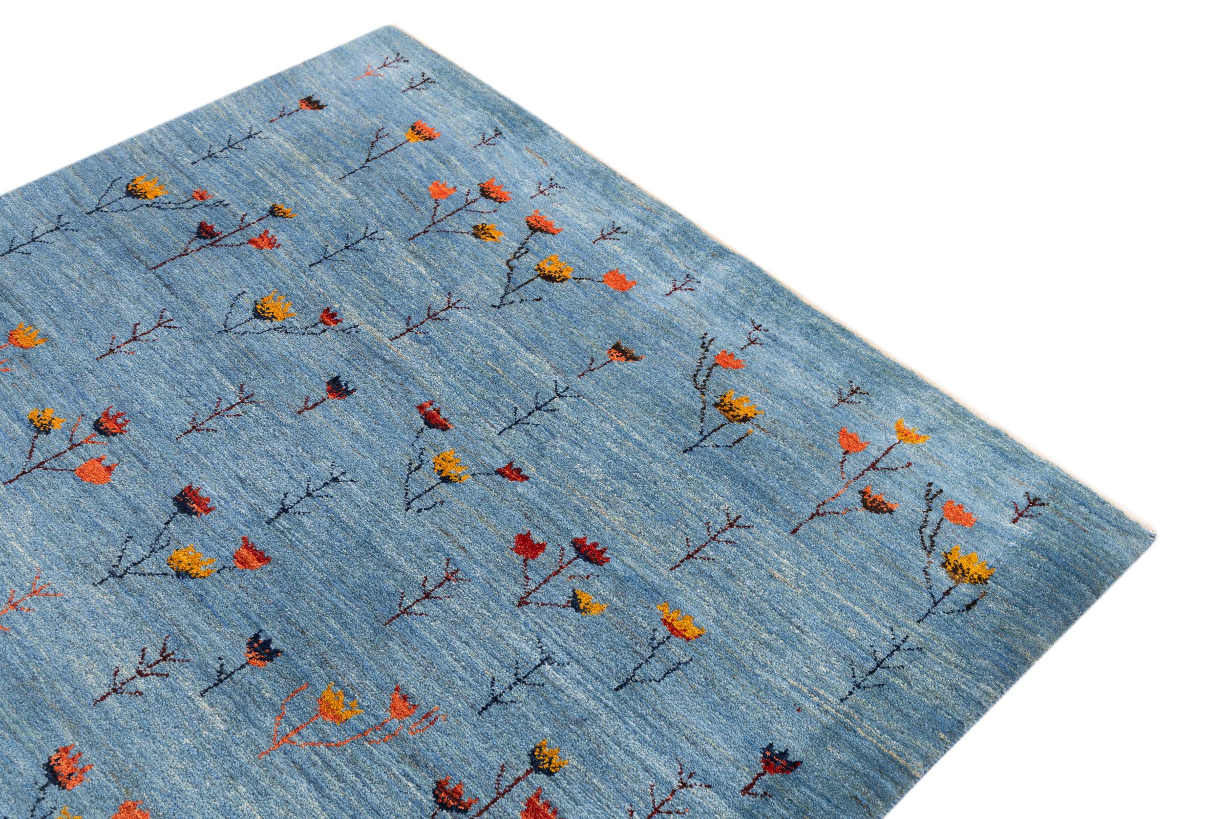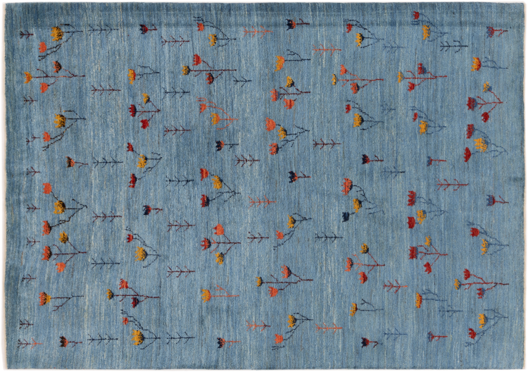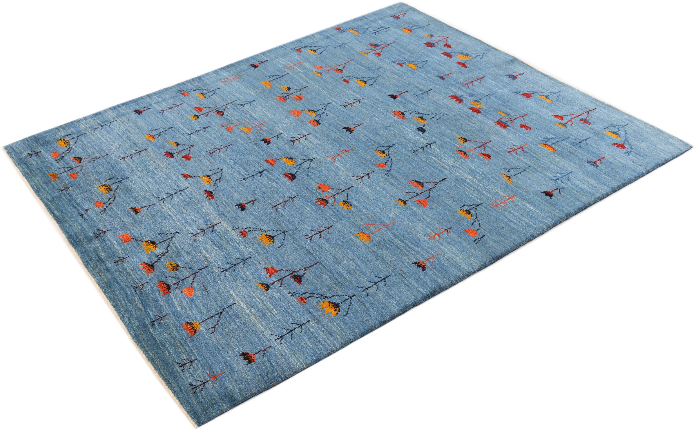 Dette smukke tæppe er en persisk Gabbeh og er en af ​​de højeste kvalitet Gabbeh tæpper. Tæpper er knyttet af nomader eller semi-nomader i Iran ved hjælp af traditionelt håndværk. De enkle motiver og mønstre er for det meste inspireret af nomadernes umiddelbare omgivelser. F.eks. Kan kameler, træer eller buske findes på traditionelle tæpper. Persiske Gabbeh-tæpper er lavet af uld fra lokale fårbesætninger. Ulden er derfor for det meste spundet for hånd. Hver af disse orientalske tæpper udgør en unik karakter af århundreder gammel kultur.