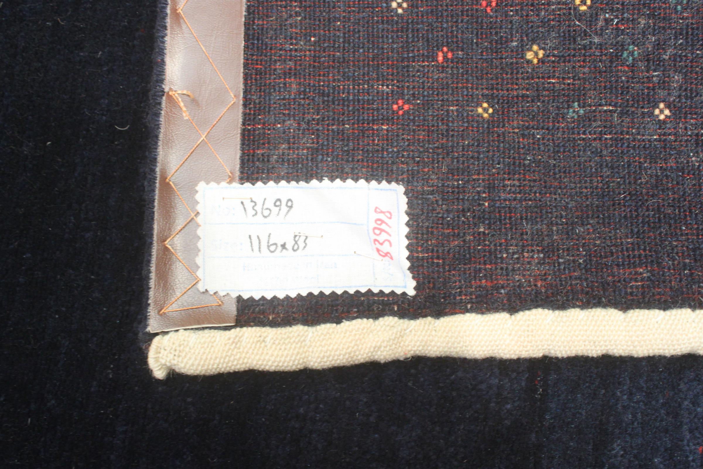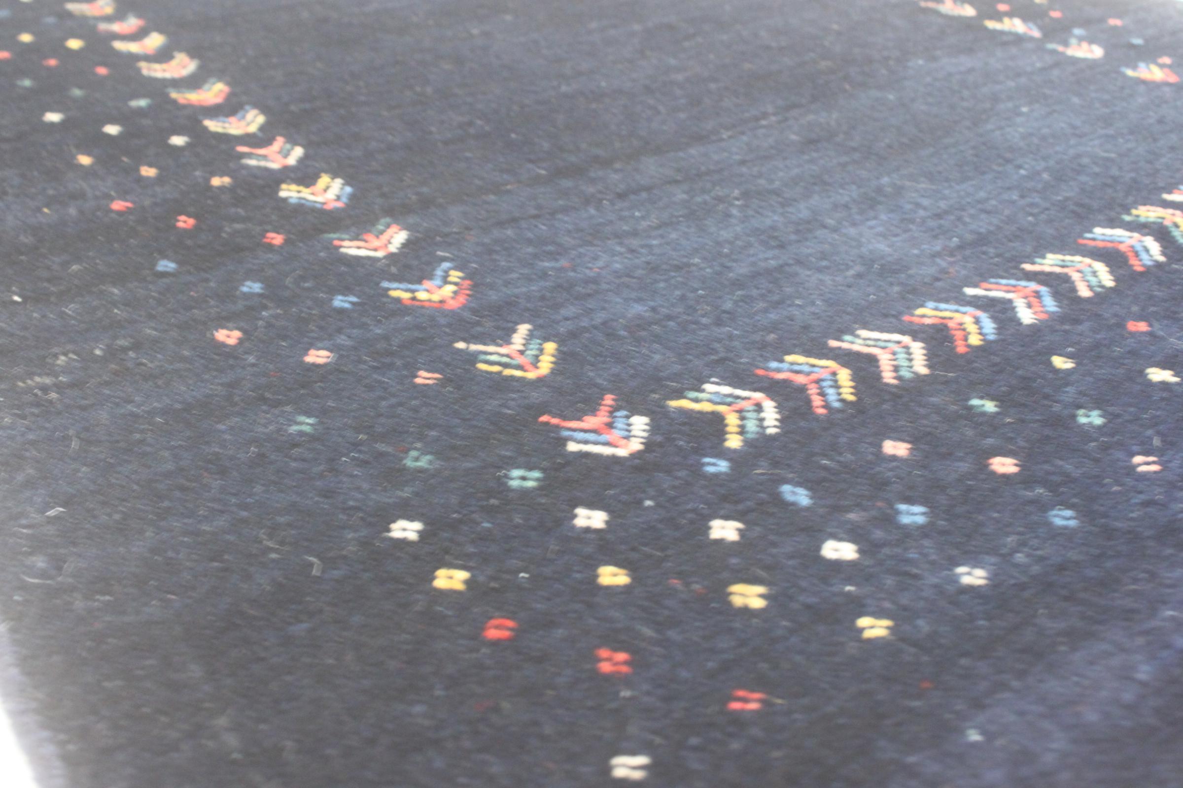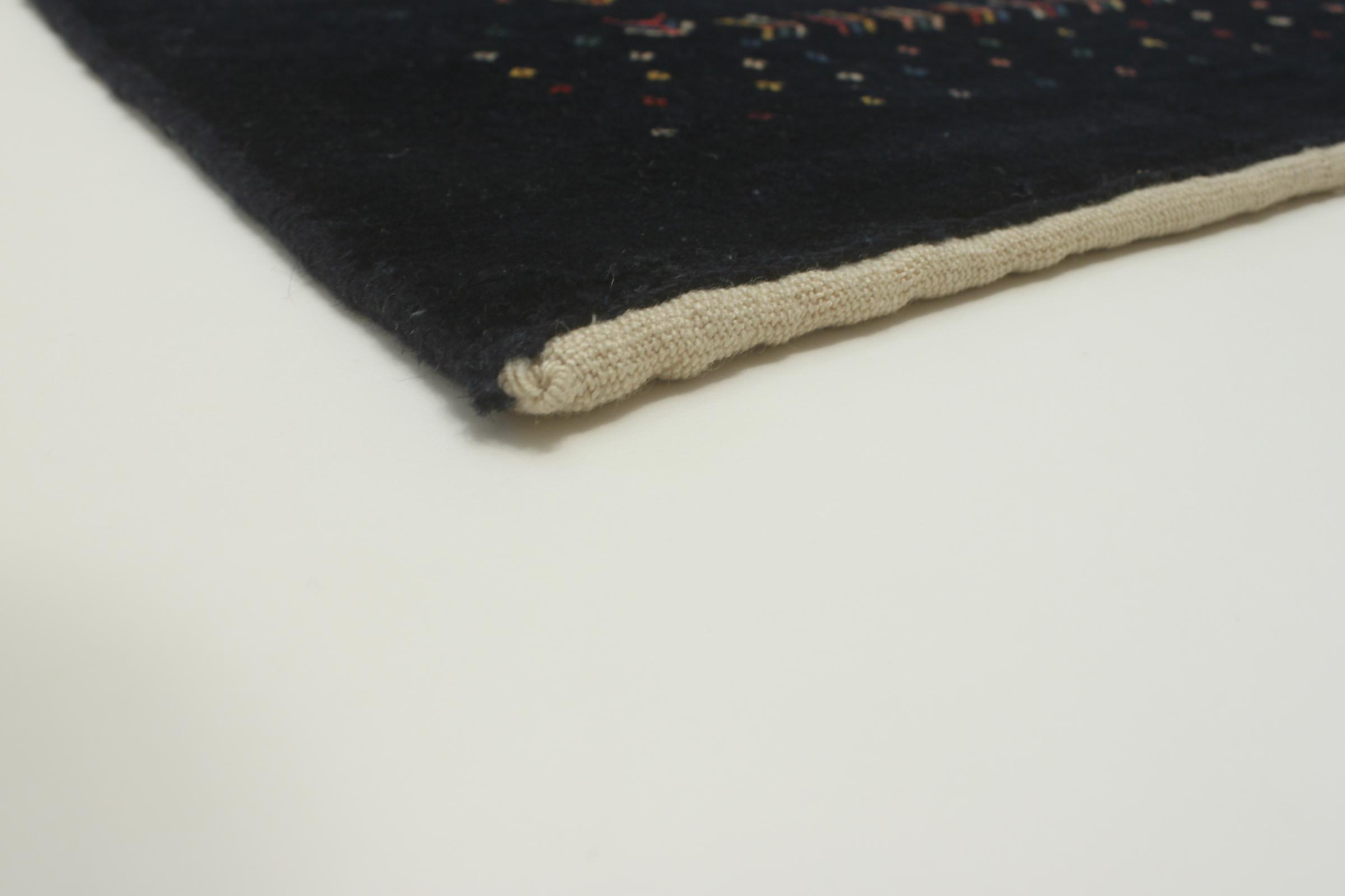 Dette smukke tæppe er en persisk Gabbeh og er en af ​​de højeste kvalitet Gabbeh tæpper. Tæpper er knyttet af nomader eller semi-nomader i Iran ved hjælp af traditionelt håndværk. De enkle motiver og mønstre er for det meste inspireret af nomadernes umiddelbare omgivelser. F.eks. Kan kameler, træer eller buske findes på traditionelle tæpper. Persiske Gabbeh-tæpper er lavet af uld fra lokale fårbesætninger. Ulden er derfor for det meste spundet for hånd. Hver af disse orientalske tæpper udgør en unik karakter af århundreder gammel kultur.