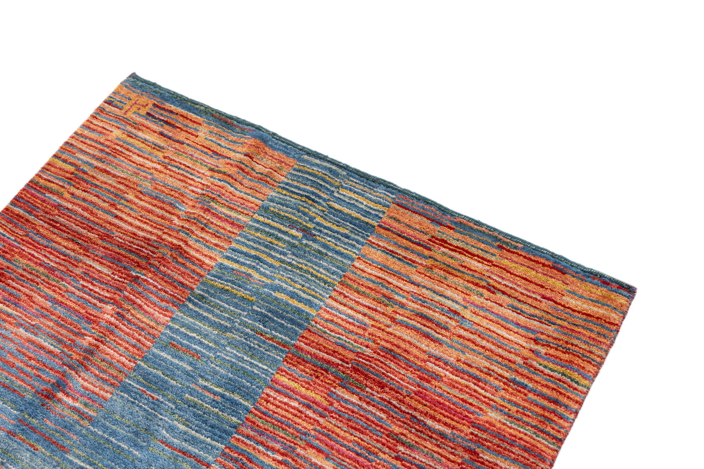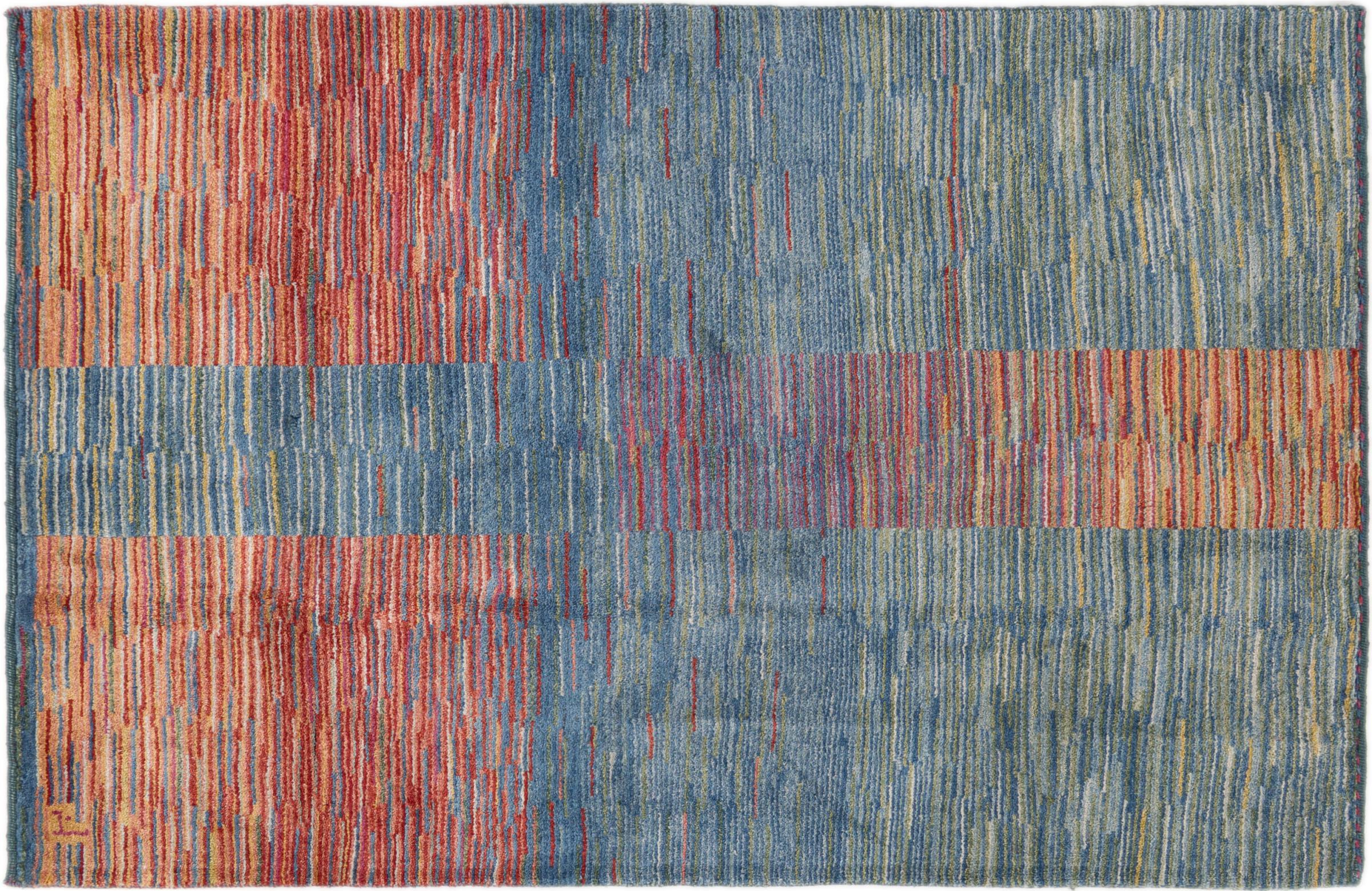 Dette smukke tæppe er en persisk Gabbeh og er en af ​​de højeste kvalitet Gabbeh tæpper. Tæpper er knyttet af nomader eller semi-nomader i Iran ved hjælp af traditionelt håndværk. De enkle motiver og mønstre er for det meste inspireret af nomadernes umiddelbare omgivelser. F.eks. Kan kameler, træer eller buske findes på traditionelle tæpper. Persiske Gabbeh-tæpper er lavet af uld fra lokale fårbesætninger. Ulden er derfor for det meste spundet for hånd. Hver af disse orientalske tæpper udgør en unik karakter af århundreder gammel kultur.