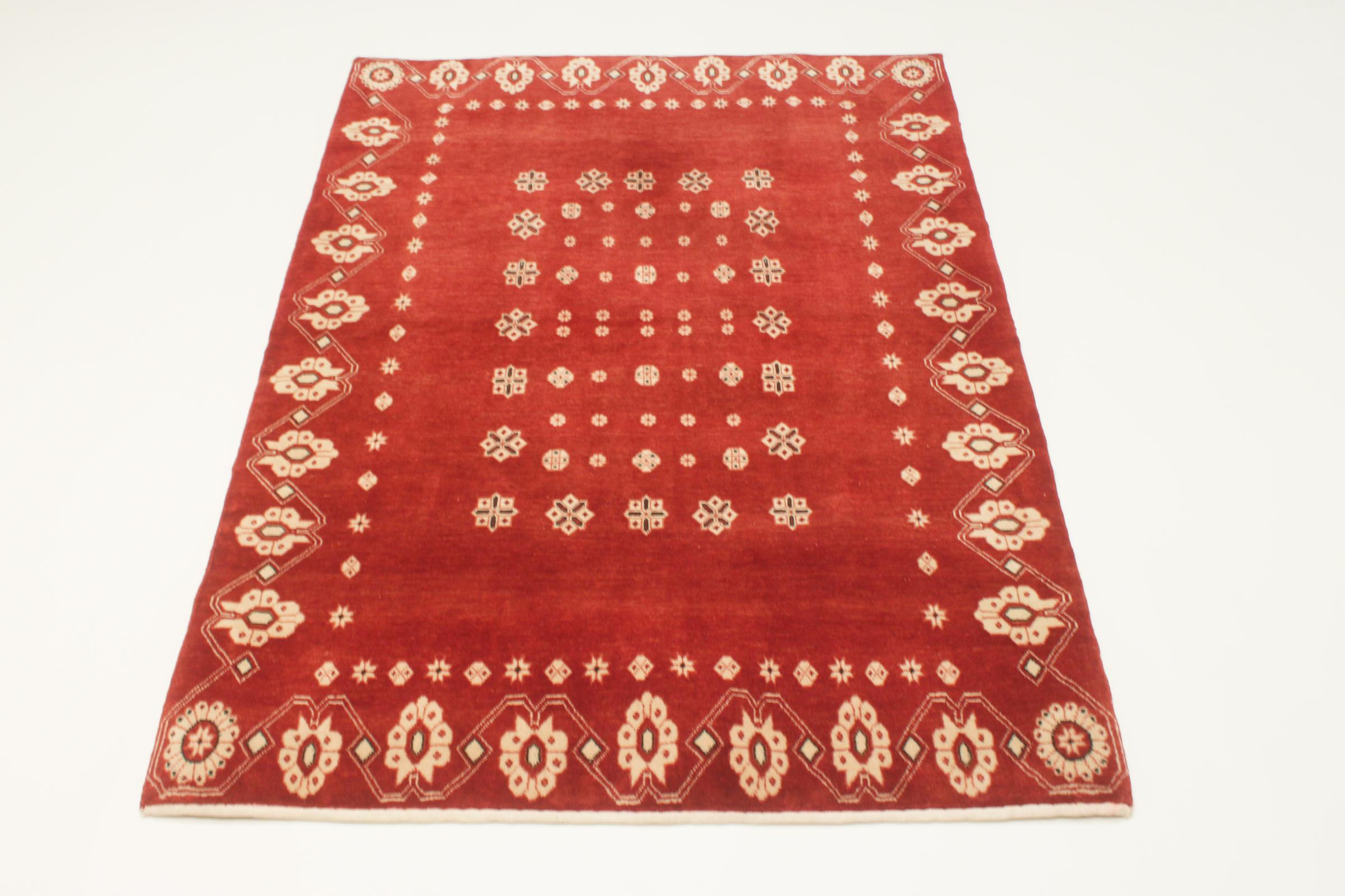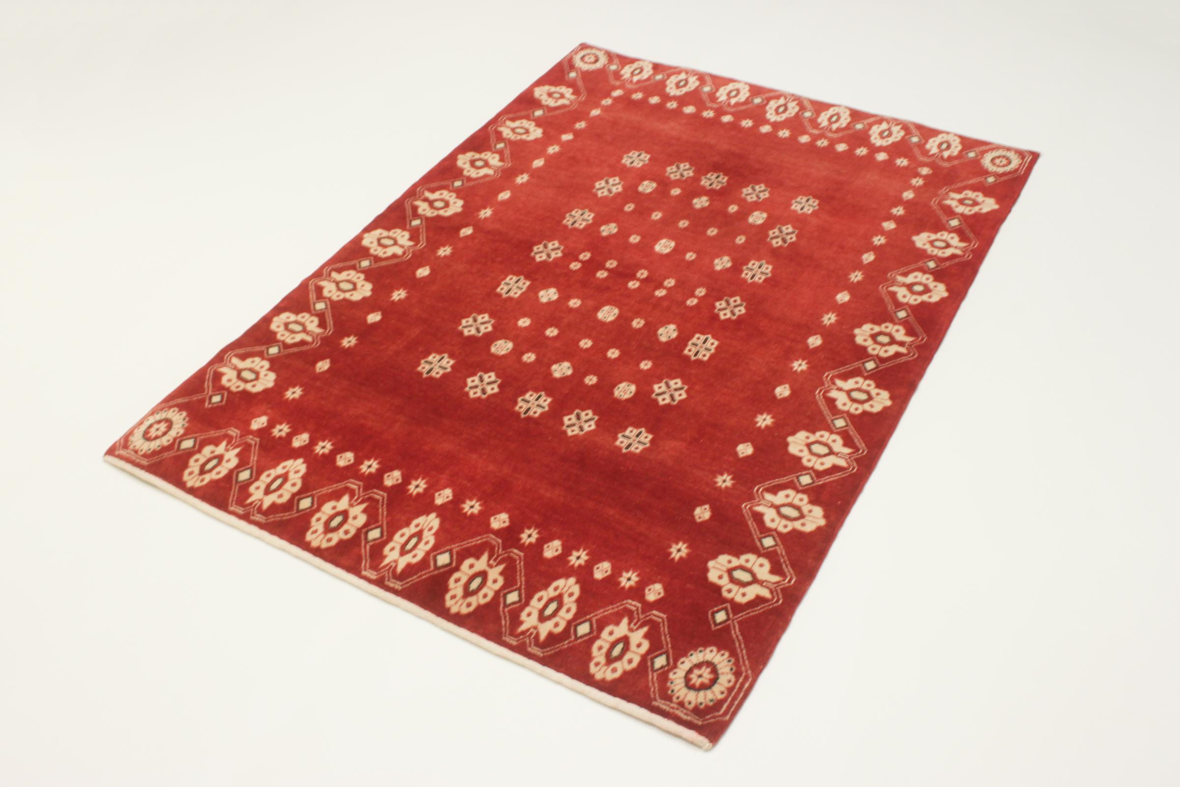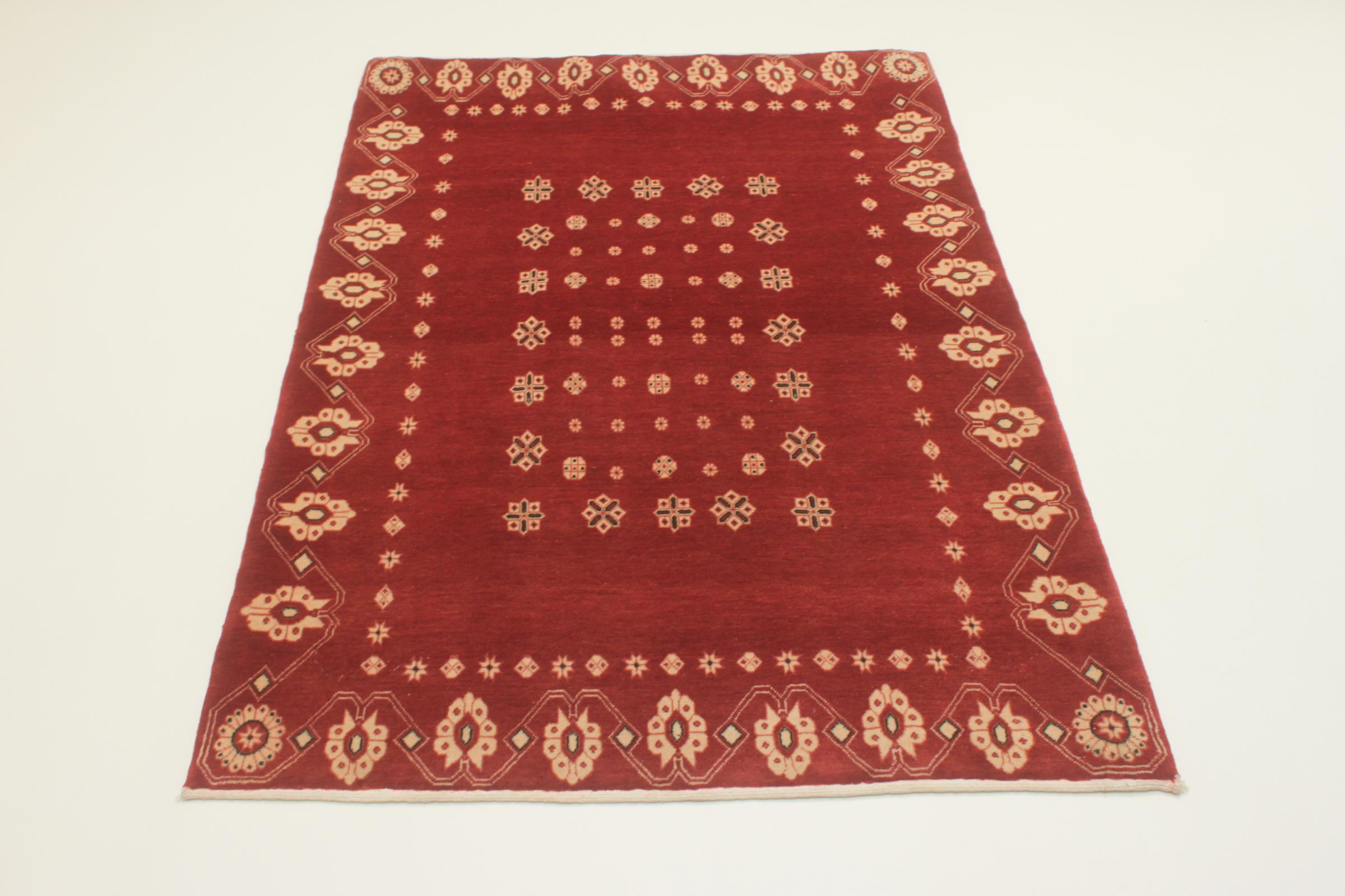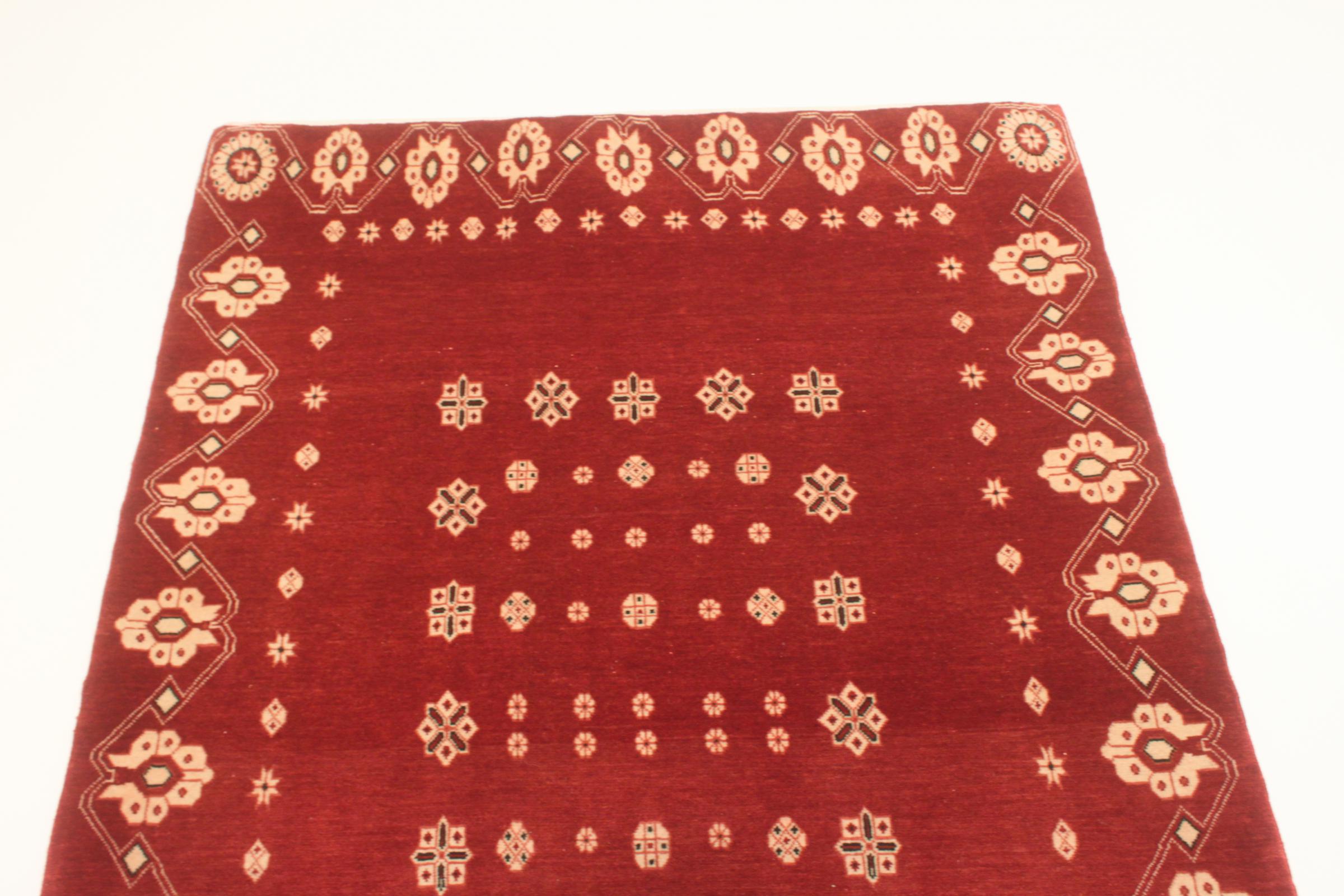 Dette smukke tæppe er en persisk Gabbeh og er en af ​​de højeste kvalitet Gabbeh tæpper. Tæpper er knyttet af nomader eller semi-nomader i Iran ved hjælp af traditionelt håndværk. De enkle motiver og mønstre er for det meste inspireret af nomadernes umiddelbare omgivelser. F.eks. Kan kameler, træer eller buske findes på traditionelle tæpper. Persiske Gabbeh-tæpper er lavet af uld fra lokale fårbesætninger. Ulden er derfor for det meste spundet for hånd. Hver af disse orientalske tæpper udgør en unik karakter af århundreder gammel kultur.