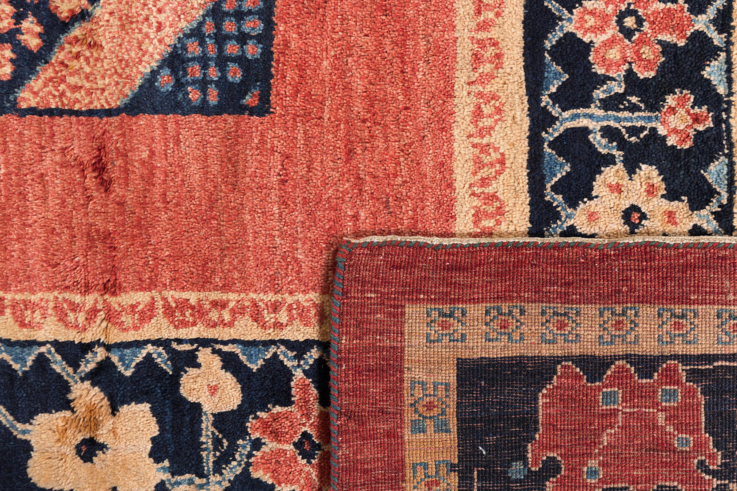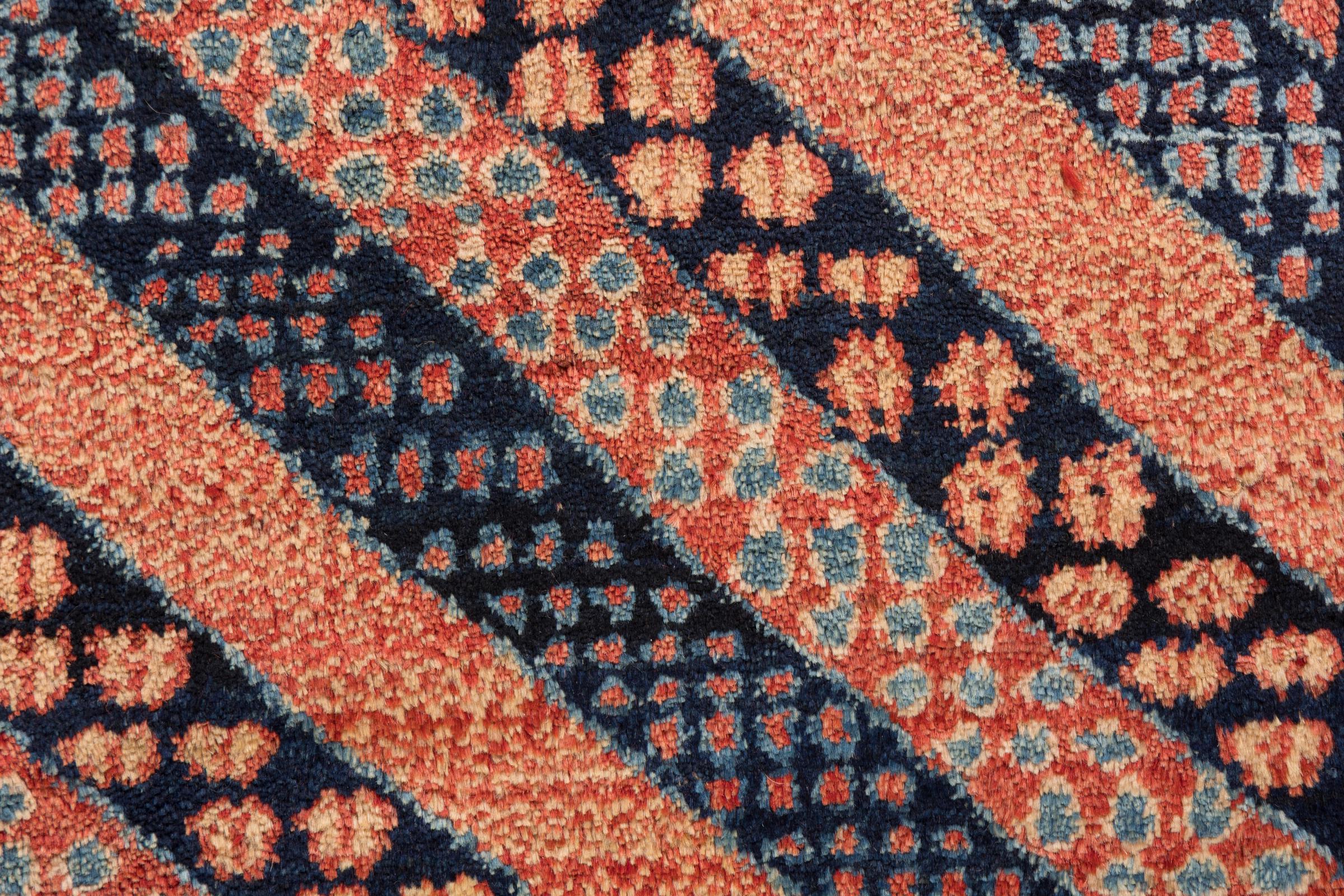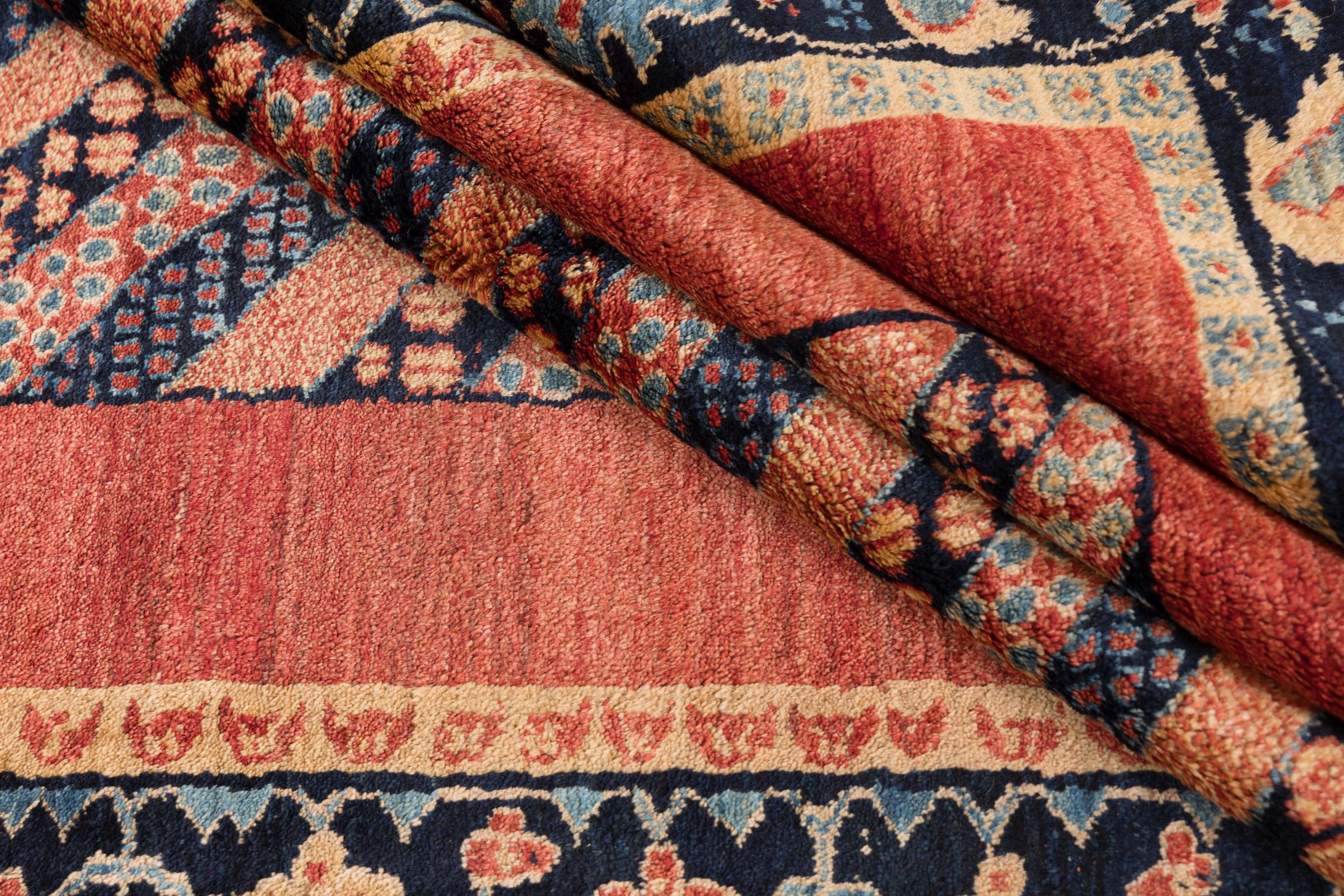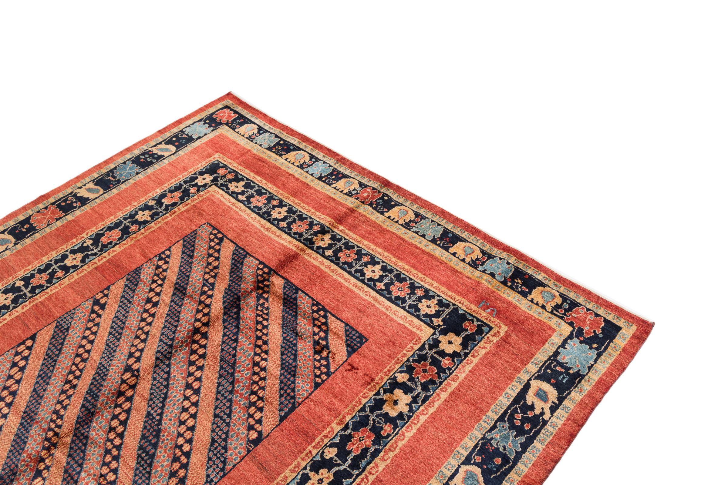 Dette smukke tæppe er en persisk Gabbeh og er en af ​​de højeste kvalitet Gabbeh tæpper. Tæpper er knyttet af nomader eller semi-nomader i Iran ved hjælp af traditionelt håndværk. De enkle motiver og mønstre er for det meste inspireret af nomadernes umiddelbare omgivelser. F.eks. Kan kameler, træer eller buske findes på traditionelle tæpper. Persiske Gabbeh-tæpper er lavet af uld fra lokale fårbesætninger. Ulden er derfor for det meste spundet for hånd. Hver af disse orientalske tæpper udgør en unik karakter af århundreder gammel kultur.