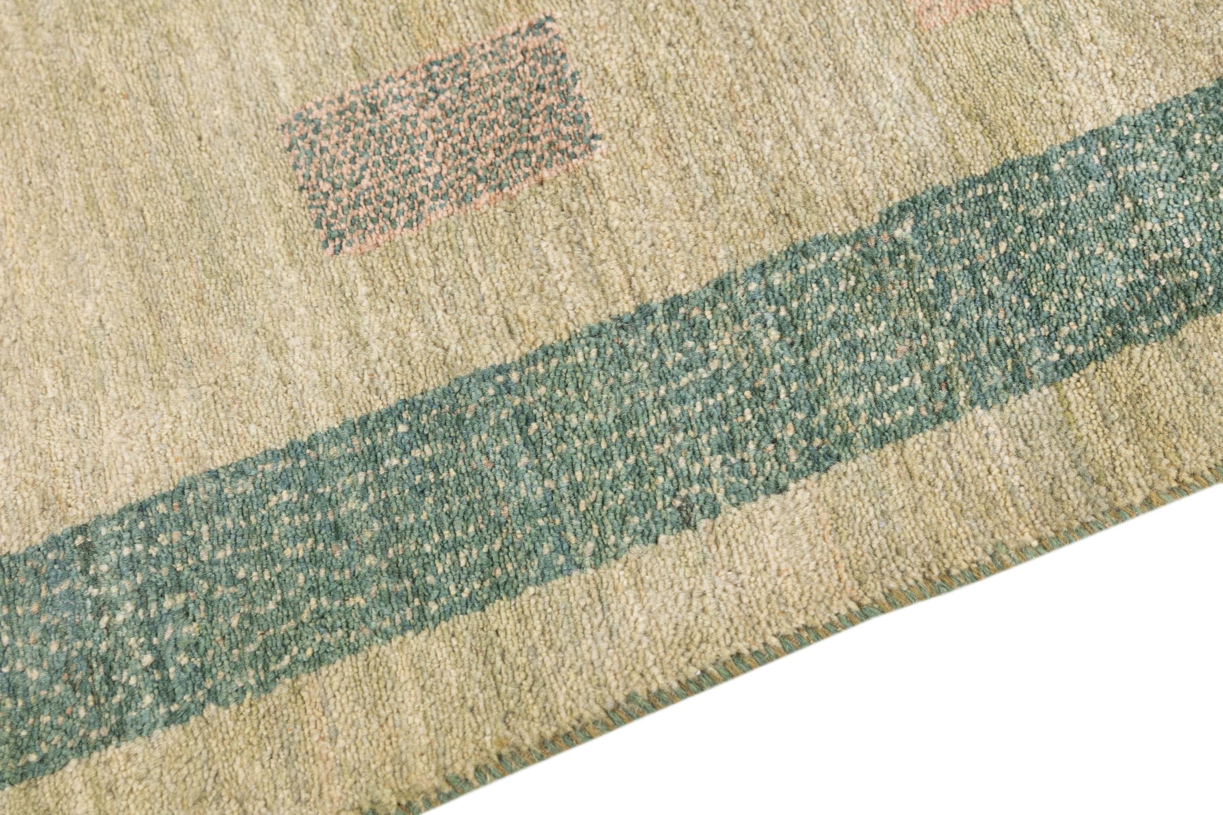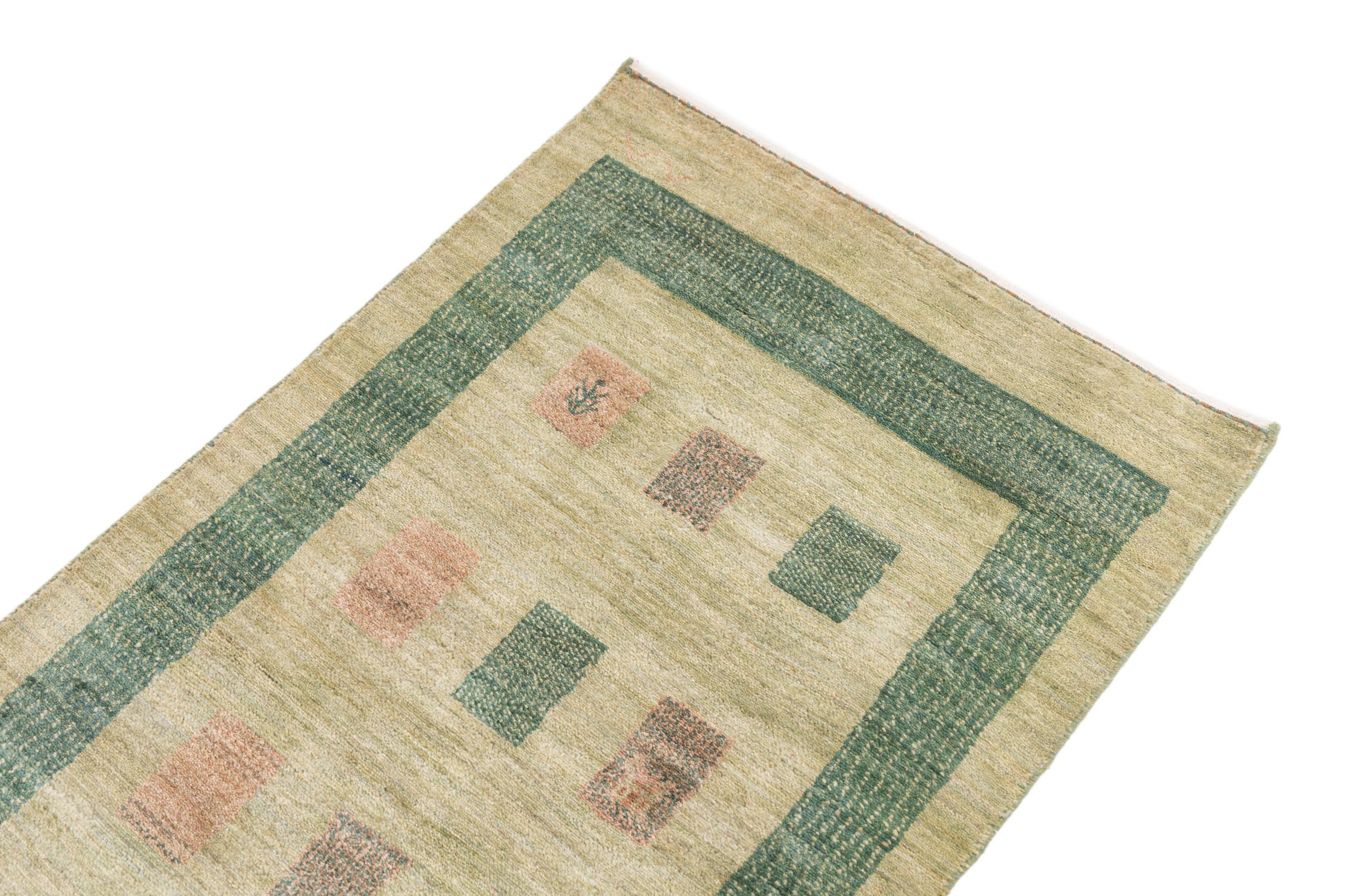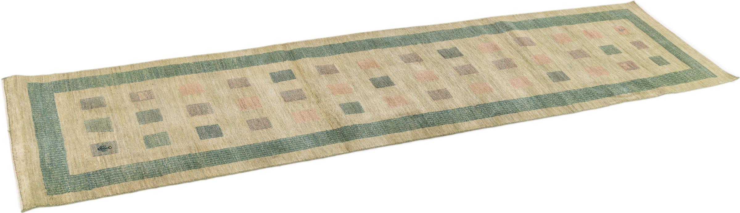Dette smukke tæppe er en persisk Gabbeh og er en af ​​de højeste kvalitet Gabbeh tæpper. Tæpper er knyttet af nomader eller semi-nomader i Iran ved hjælp af traditionelt håndværk. De enkle motiver og mønstre er for det meste inspireret af nomadernes umiddelbare omgivelser. F.eks. Kan kameler, træer eller buske findes på traditionelle tæpper. Persiske Gabbeh-tæpper er lavet af uld fra lokale fårbesætninger. Ulden er derfor for det meste spundet for hånd. Hver af disse orientalske tæpper udgør en unik karakter af århundreder gammel kultur.