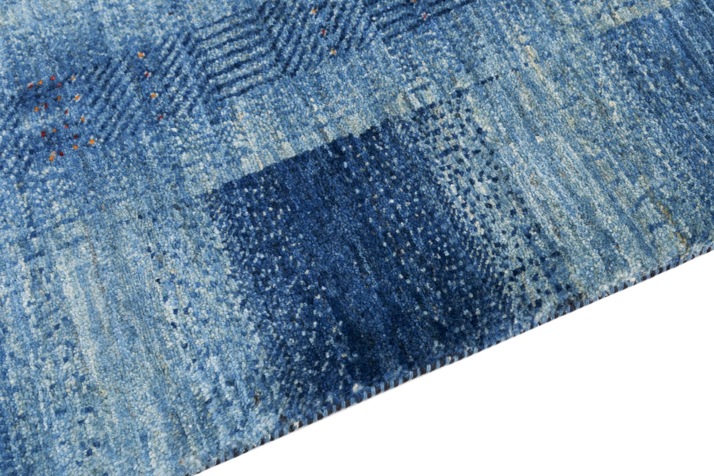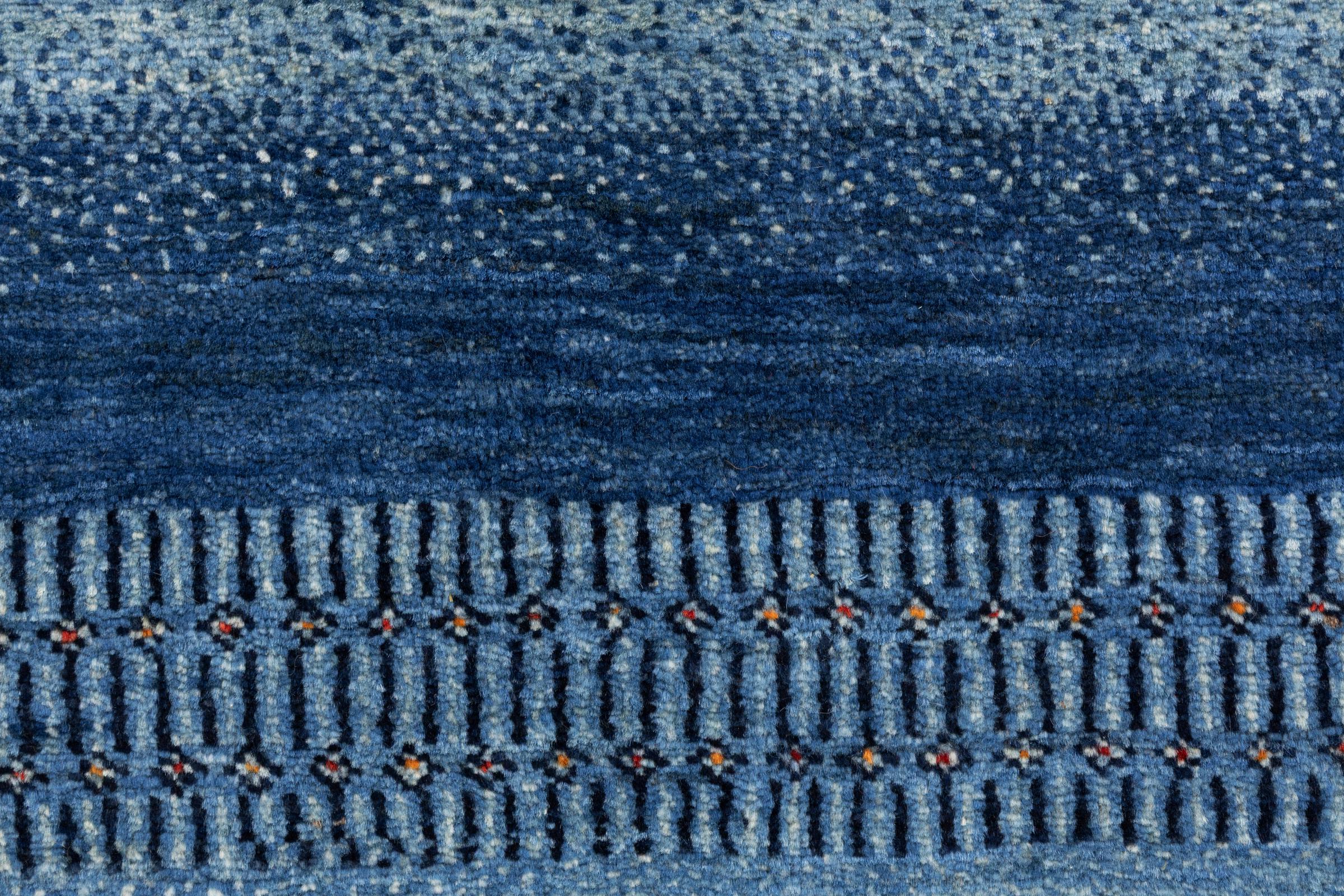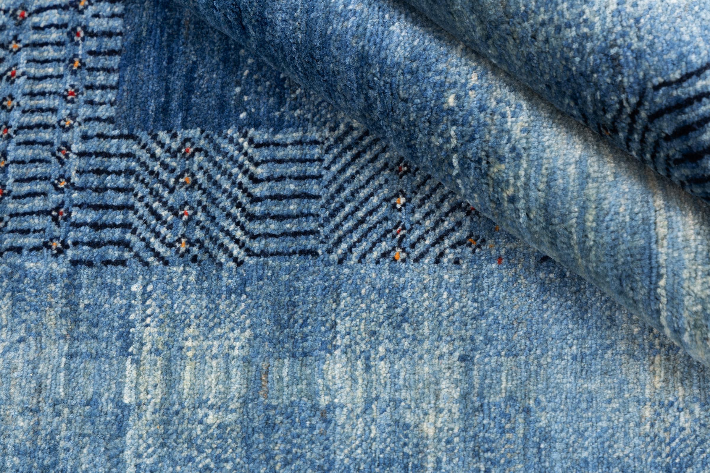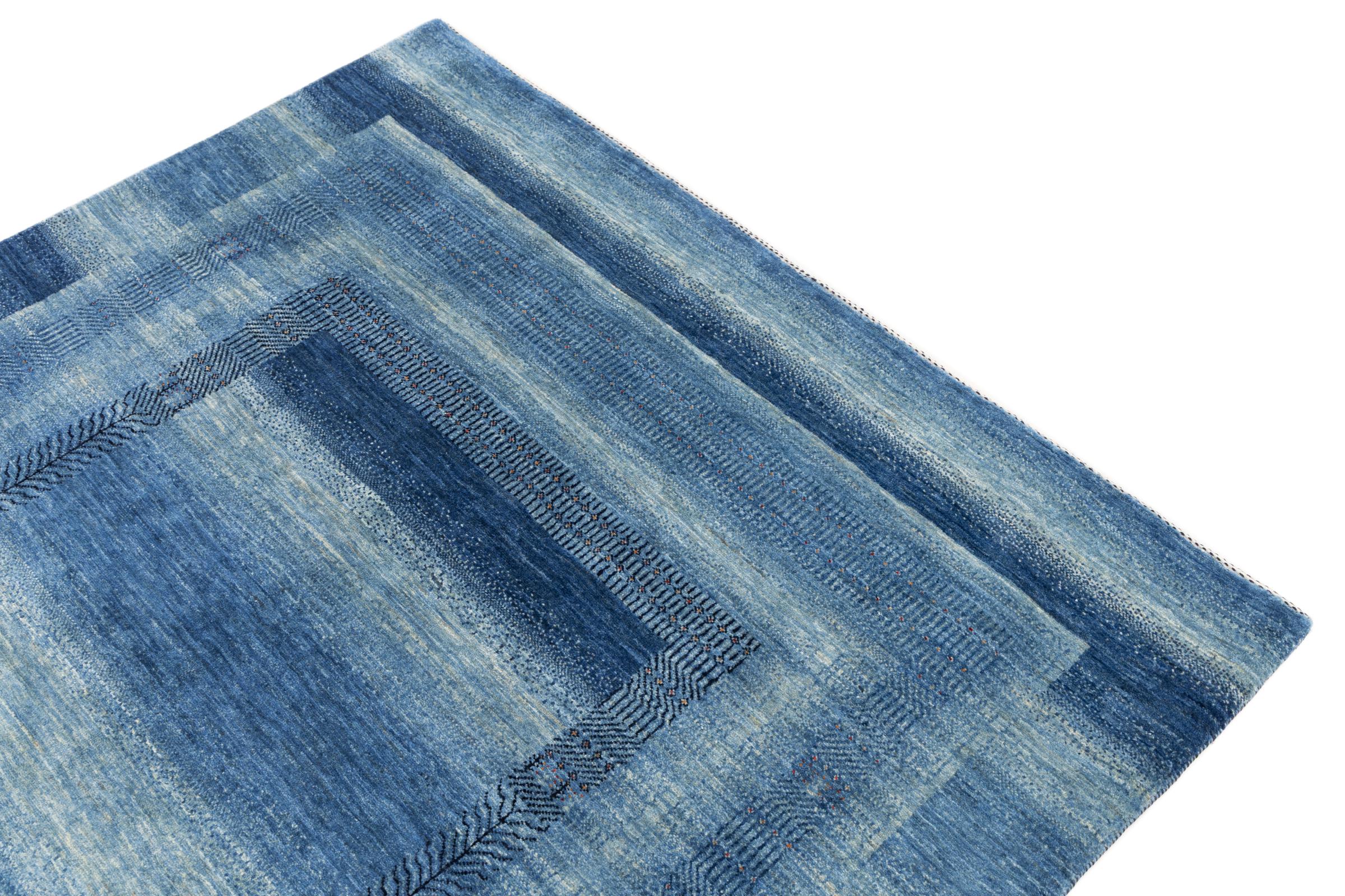 Dette smukke tæppe er en persisk Gabbeh og er en af ​​de højeste kvalitet Gabbeh tæpper. Tæpper er knyttet af nomader eller semi-nomader i Iran ved hjælp af traditionelt håndværk. De enkle motiver og mønstre er for det meste inspireret af nomadernes umiddelbare omgivelser. F.eks. Kan kameler, træer eller buske findes på traditionelle tæpper. Persiske Gabbeh-tæpper er lavet af uld fra lokale fårbesætninger. Ulden er derfor for det meste spundet for hånd. Hver af disse orientalske tæpper udgør en unik karakter af århundreder gammel kultur.