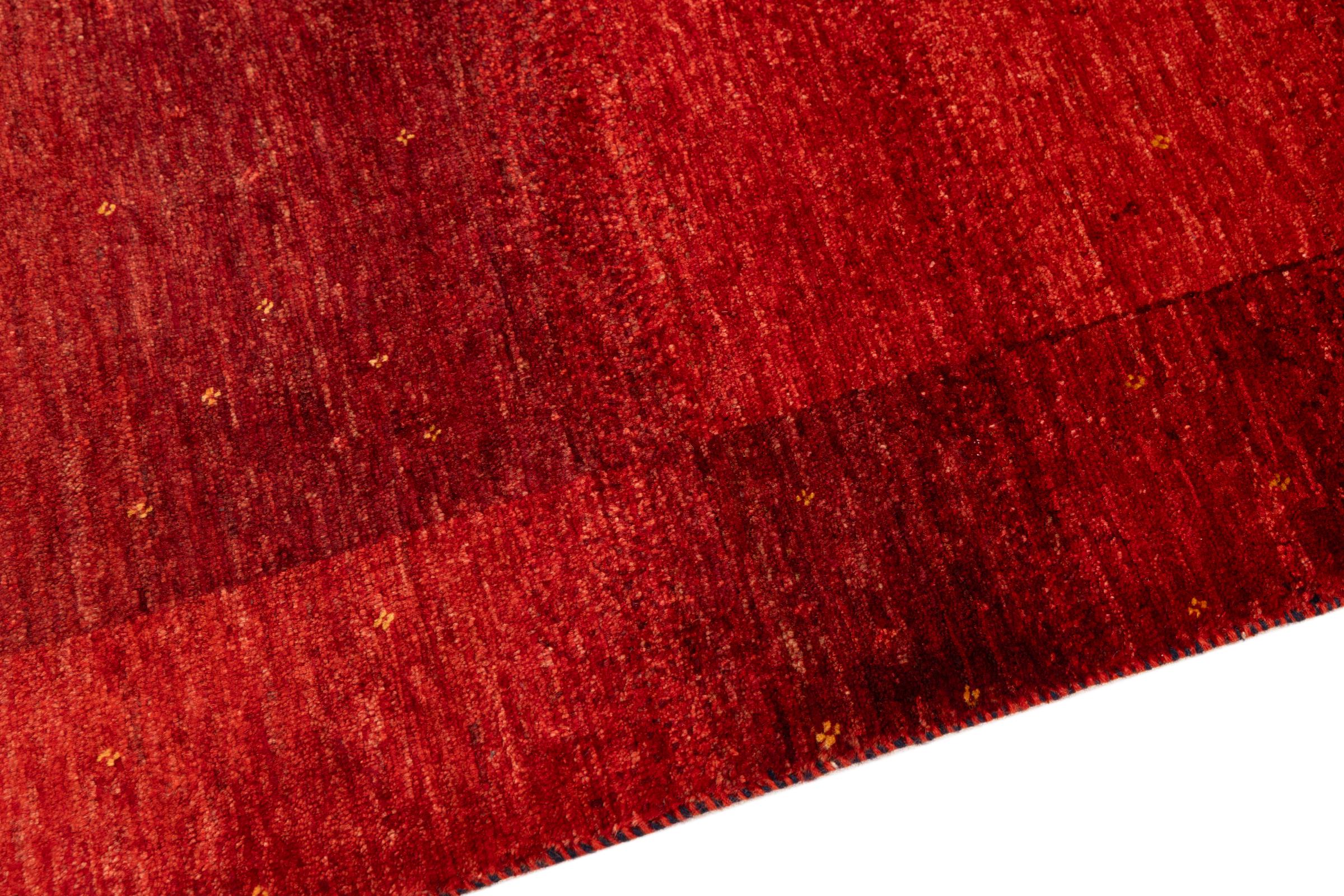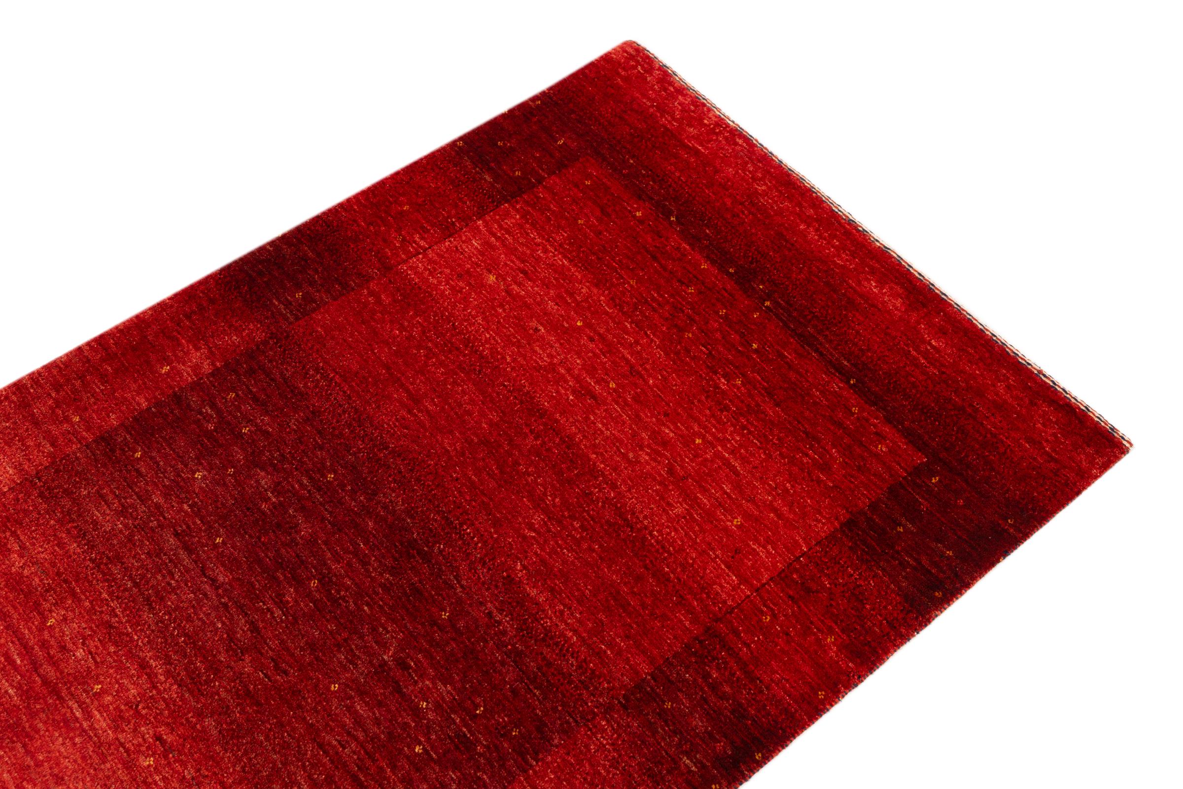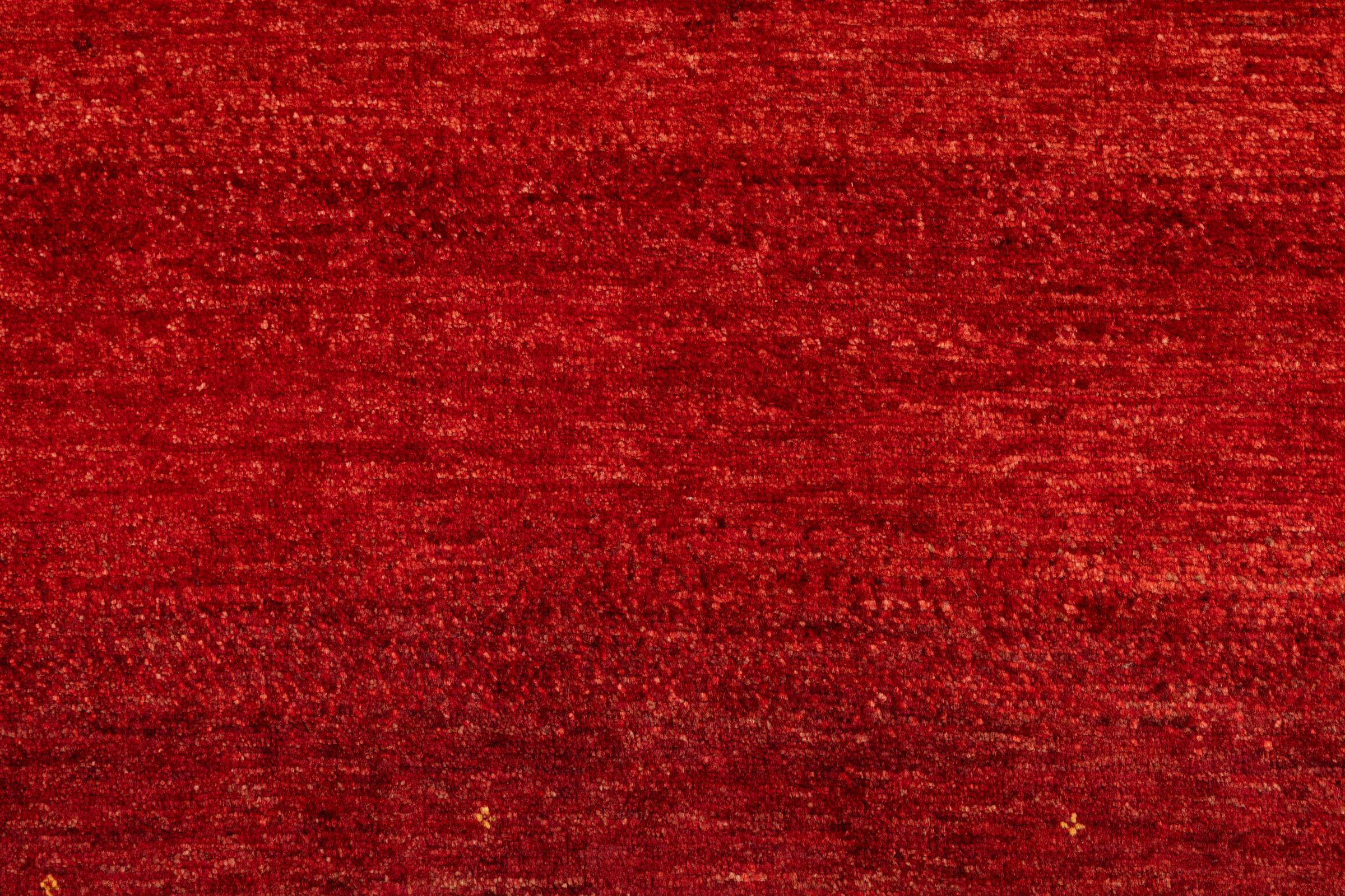 Dette smukke tæppe er en persisk Gabbeh og er en af ​​de højeste kvalitet Gabbeh tæpper. Tæpper er knyttet af nomader eller semi-nomader i Iran ved hjælp af traditionelt håndværk. De enkle motiver og mønstre er for det meste inspireret af nomadernes umiddelbare omgivelser. F.eks. Kan kameler, træer eller buske findes på traditionelle tæpper. Persiske Gabbeh-tæpper er lavet af uld fra lokale fårbesætninger. Ulden er derfor for det meste spundet for hånd. Hver af disse orientalske tæpper udgør en unik karakter af århundreder gammel kultur.