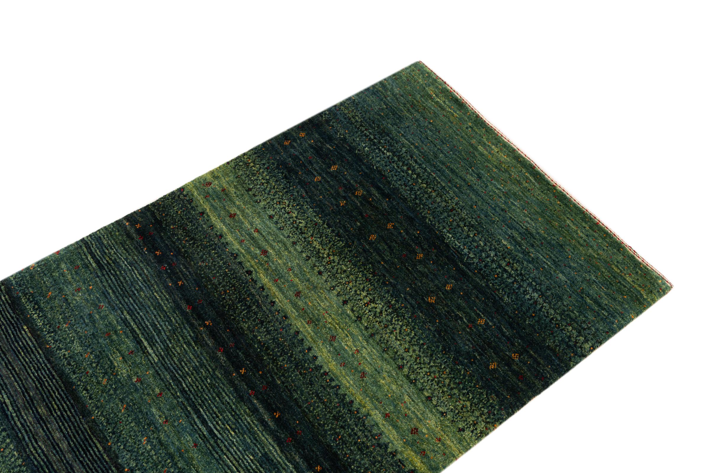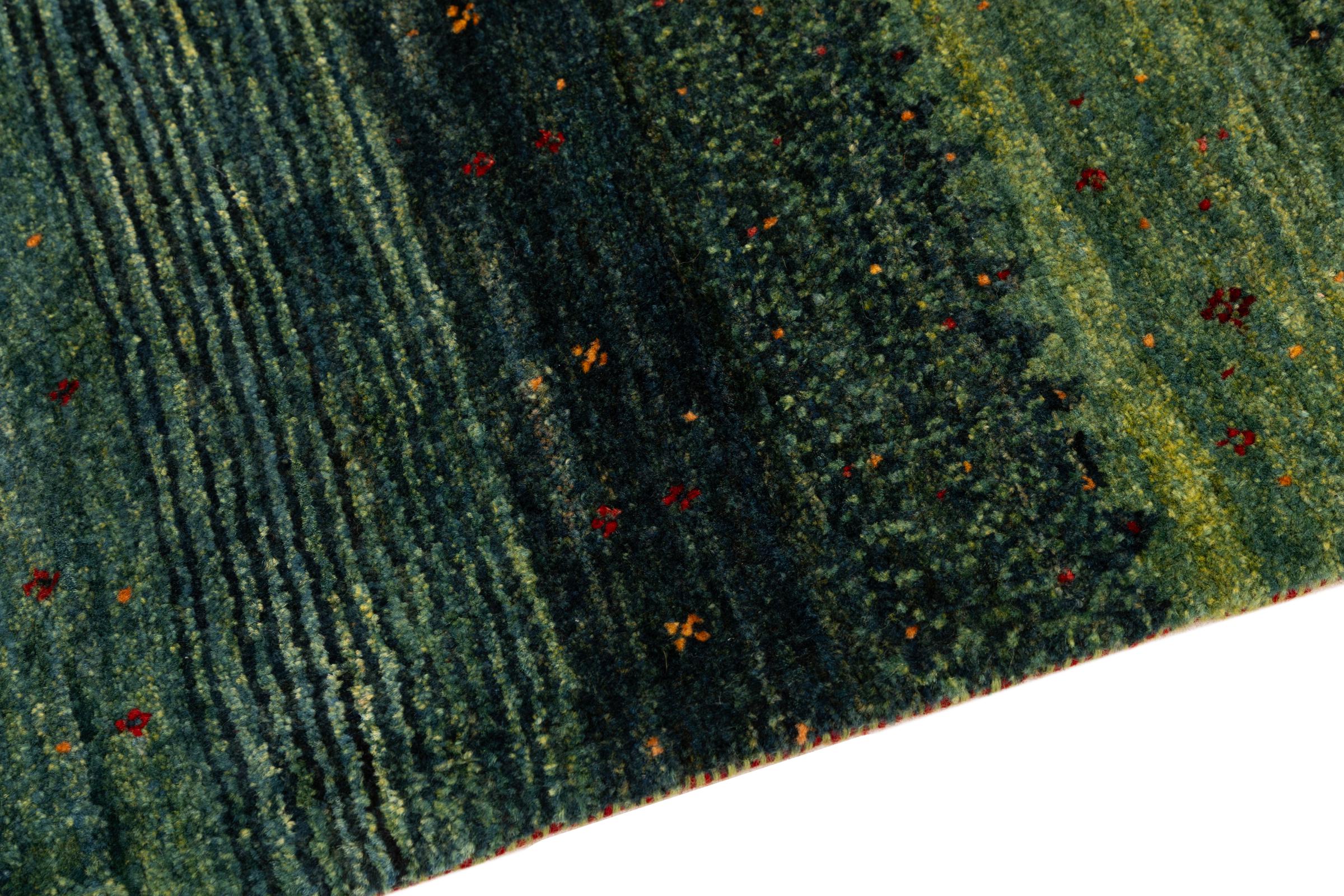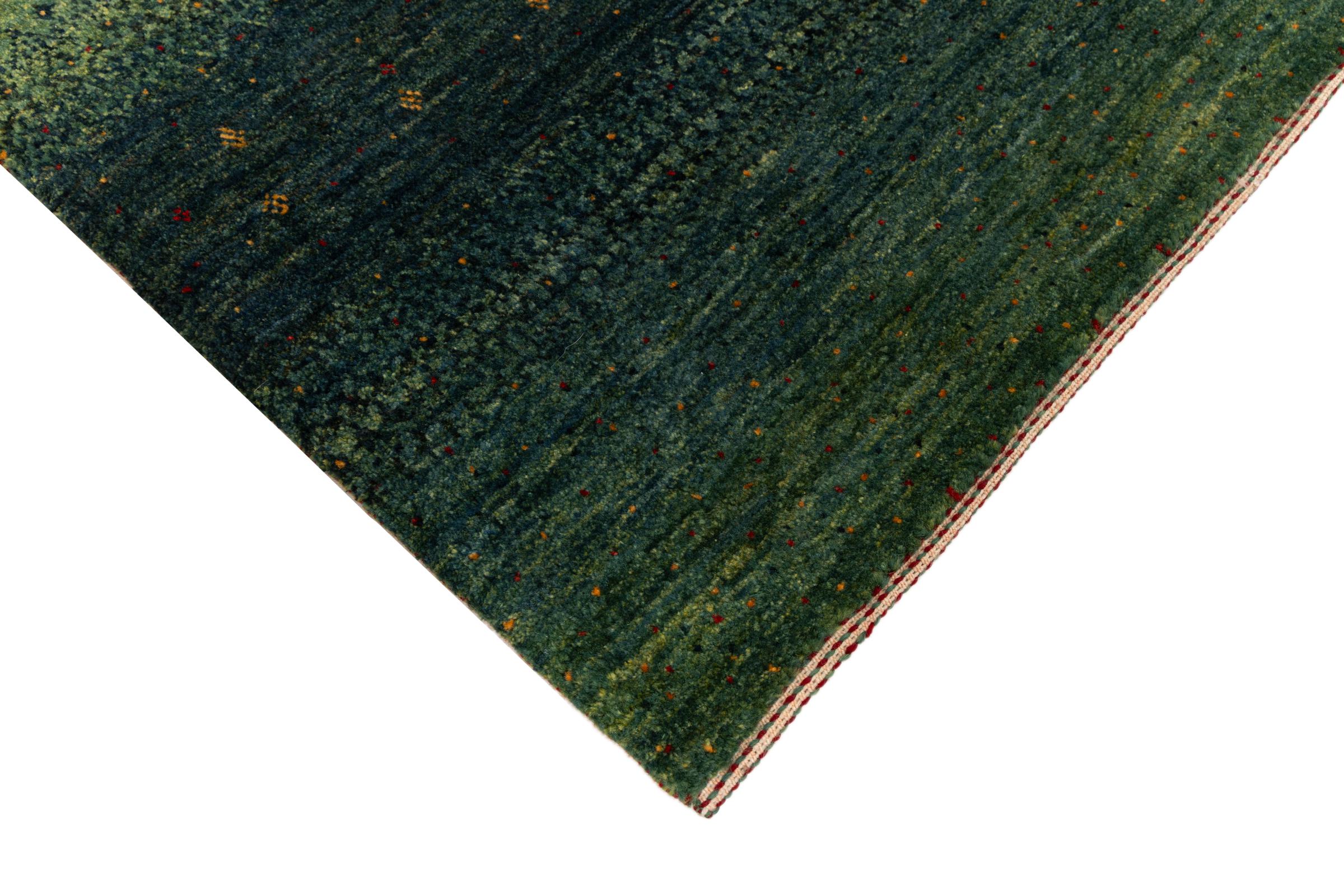 Dette smukke tæppe er en persisk Gabbeh og er en af ​​de højeste kvalitet Gabbeh tæpper. Tæpper er knyttet af nomader eller semi-nomader i Iran ved hjælp af traditionelt håndværk. De enkle motiver og mønstre er for det meste inspireret af nomadernes umiddelbare omgivelser. F.eks. Kan kameler, træer eller buske findes på traditionelle tæpper. Persiske Gabbeh-tæpper er lavet af uld fra lokale fårbesætninger. Ulden er derfor for det meste spundet for hånd. Hver af disse orientalske tæpper udgør en unik karakter af århundreder gammel kultur.