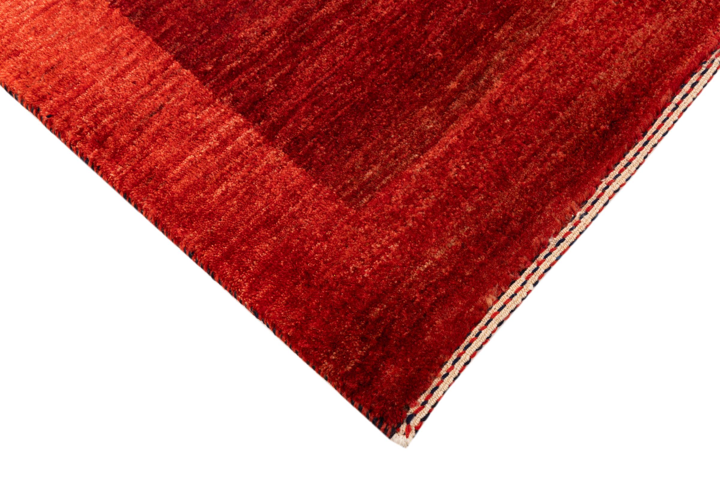 Dette smukke tæppe er en persisk Gabbeh og er en af ​​de højeste kvalitet Gabbeh tæpper. Tæpper er knyttet af nomader eller semi-nomader i Iran ved hjælp af traditionelt håndværk. De enkle motiver og mønstre er for det meste inspireret af nomadernes umiddelbare omgivelser. F.eks. Kan kameler, træer eller buske findes på traditionelle tæpper. Persiske Gabbeh-tæpper er lavet af uld fra lokale fårbesætninger. Ulden er derfor for det meste spundet for hånd. Hver af disse orientalske tæpper udgør en unik karakter af århundreder gammel kultur.