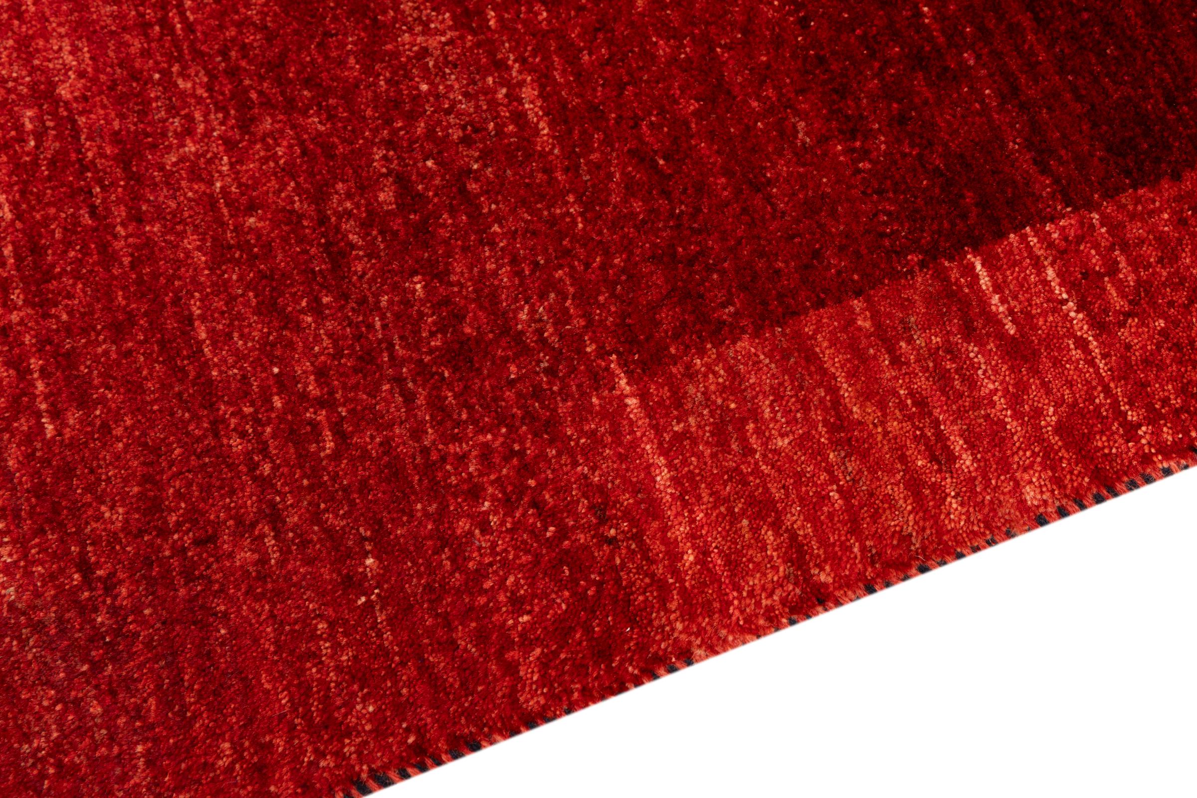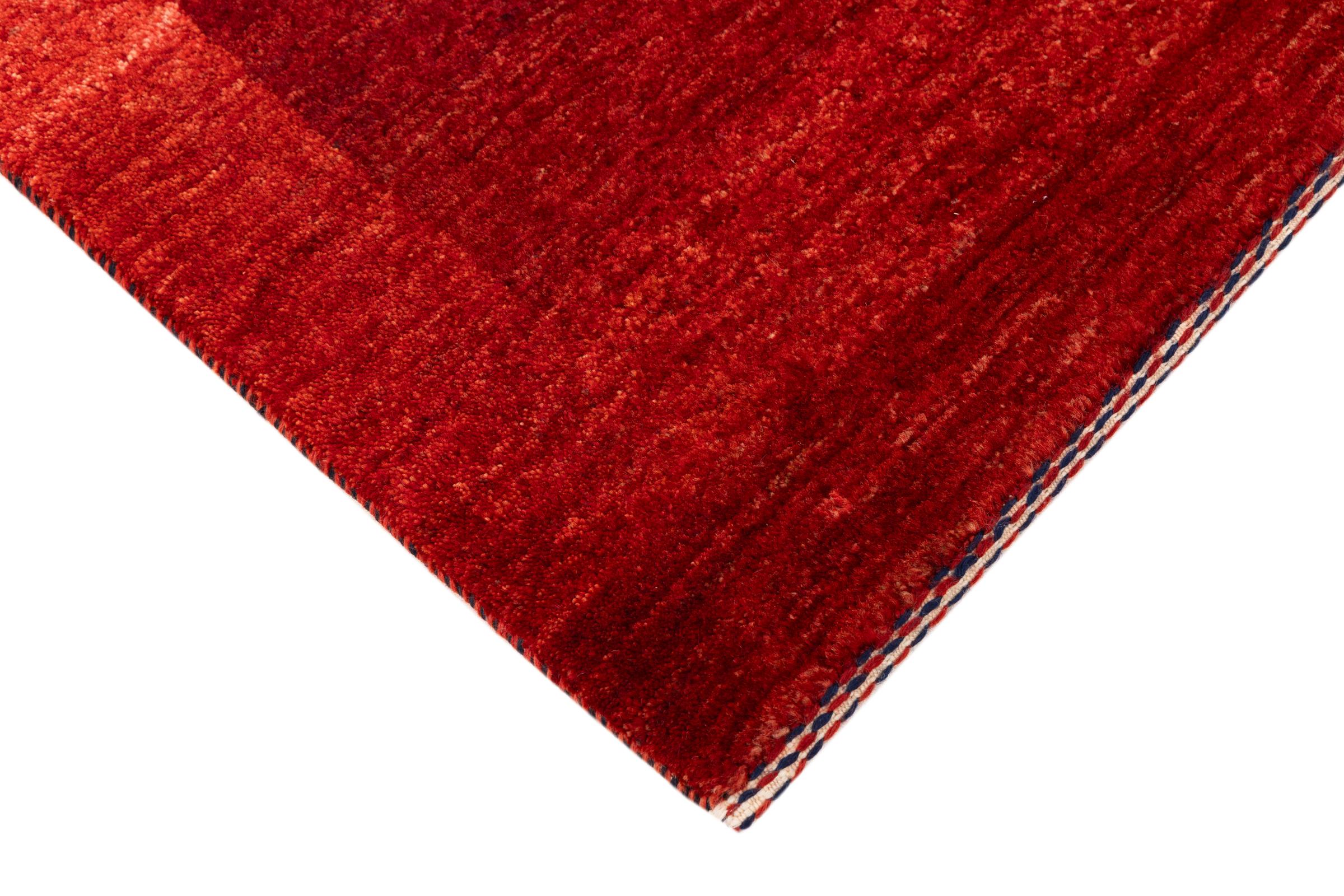 Dette smukke tæppe er en persisk Gabbeh og er en af ​​de højeste kvalitet Gabbeh tæpper. Tæpper er knyttet af nomader eller semi-nomader i Iran ved hjælp af traditionelt håndværk. De enkle motiver og mønstre er for det meste inspireret af nomadernes umiddelbare omgivelser. F.eks. Kan kameler, træer eller buske findes på traditionelle tæpper. Persiske Gabbeh-tæpper er lavet af uld fra lokale fårbesætninger. Ulden er derfor for det meste spundet for hånd. Hver af disse orientalske tæpper udgør en unik karakter af århundreder gammel kultur.