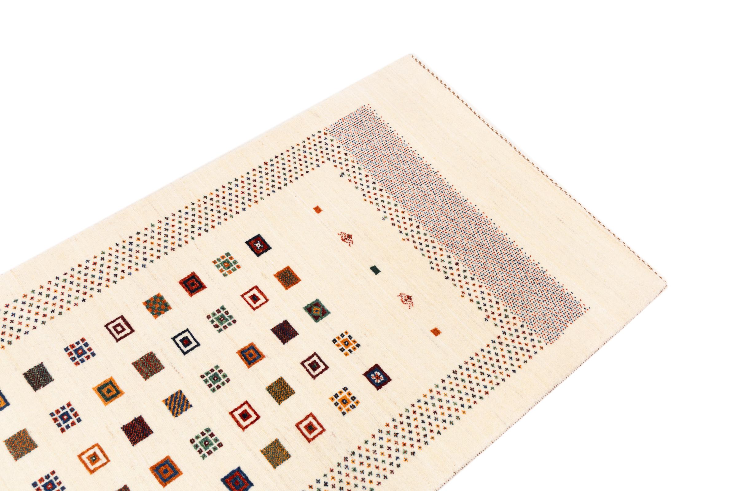 En forfinelse af de allerede velkendte Gabbeh-tæpper: Det er dette persiske Gabbeh Loribaft. Med sin finere vævning og smukke design ved det, hvordan man imponerer. Det er håndknyttet af Loren i det sydlige Persien af den bedste håndspundne fåreuld. Der er kun brugt rene vegetabilske farvestoffer til at farve ulden. Med dette tæppe får du den højeste standard af Gabbeh-tæpper til dit hjem.