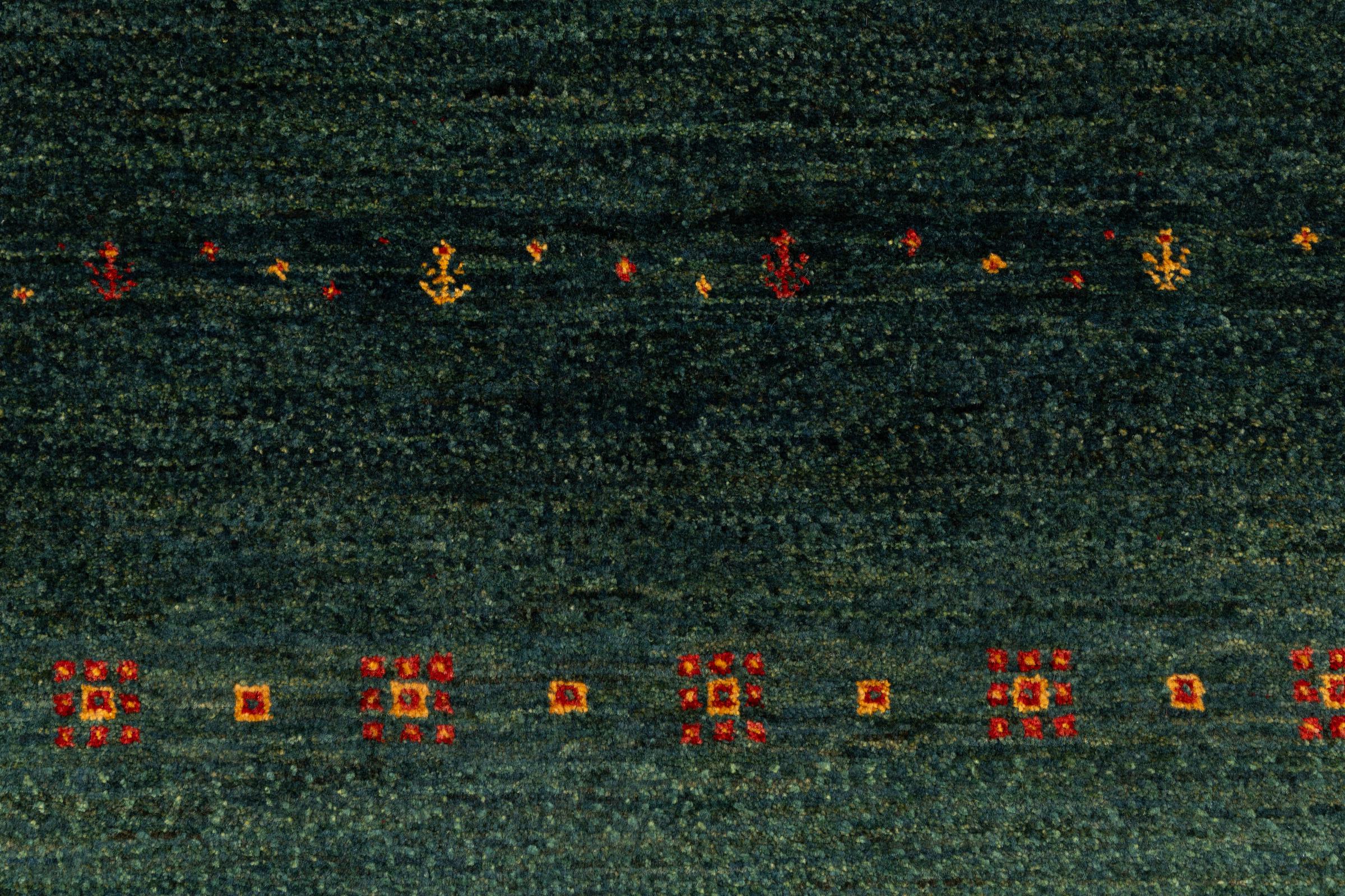 En forfinelse af de allerede velkendte Gabbeh-tæpper: Det er dette persiske Gabbeh Loribaft. Med sin finere vævning og smukke design ved det, hvordan man imponerer. Det er håndknyttet af Loren i det sydlige Persien af den bedste håndspundne fåreuld. Der er kun brugt rene vegetabilske farvestoffer til at farve ulden. Med dette tæppe får du den højeste standard af Gabbeh-tæpper til dit hjem.