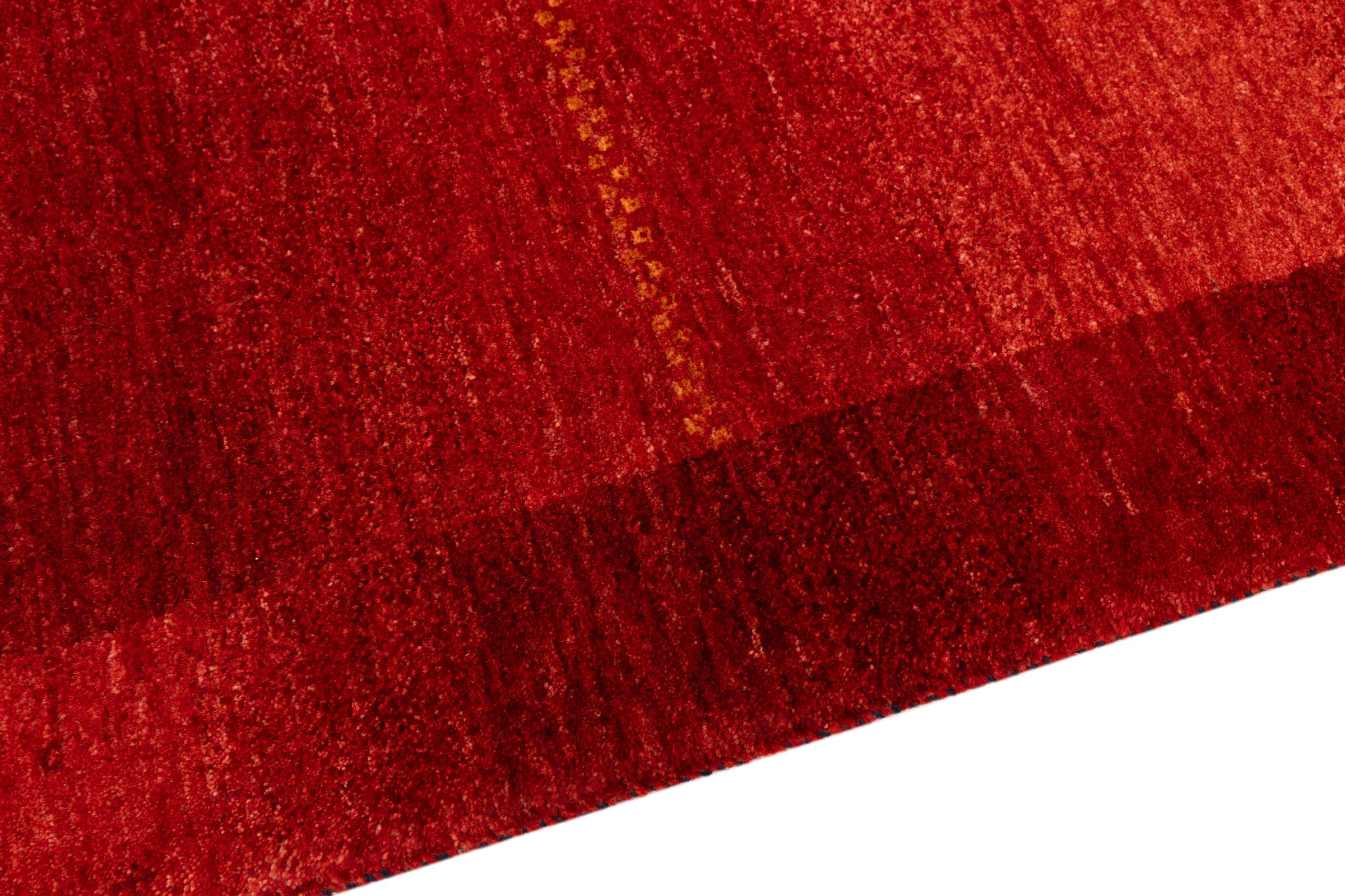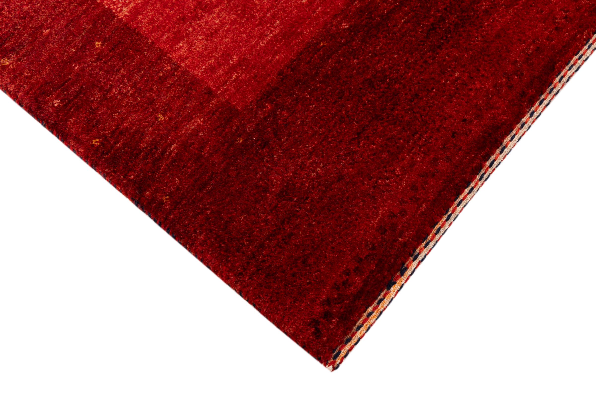 Dette smukke tæppe er en persisk Gabbeh og er en af ​​de højeste kvalitet Gabbeh tæpper. Tæpper er knyttet af nomader eller semi-nomader i Iran ved hjælp af traditionelt håndværk. De enkle motiver og mønstre er for det meste inspireret af nomadernes umiddelbare omgivelser. F.eks. Kan kameler, træer eller buske findes på traditionelle tæpper. Persiske Gabbeh-tæpper er lavet af uld fra lokale fårbesætninger. Ulden er derfor for det meste spundet for hånd. Hver af disse orientalske tæpper udgør en unik karakter af århundreder gammel kultur.
