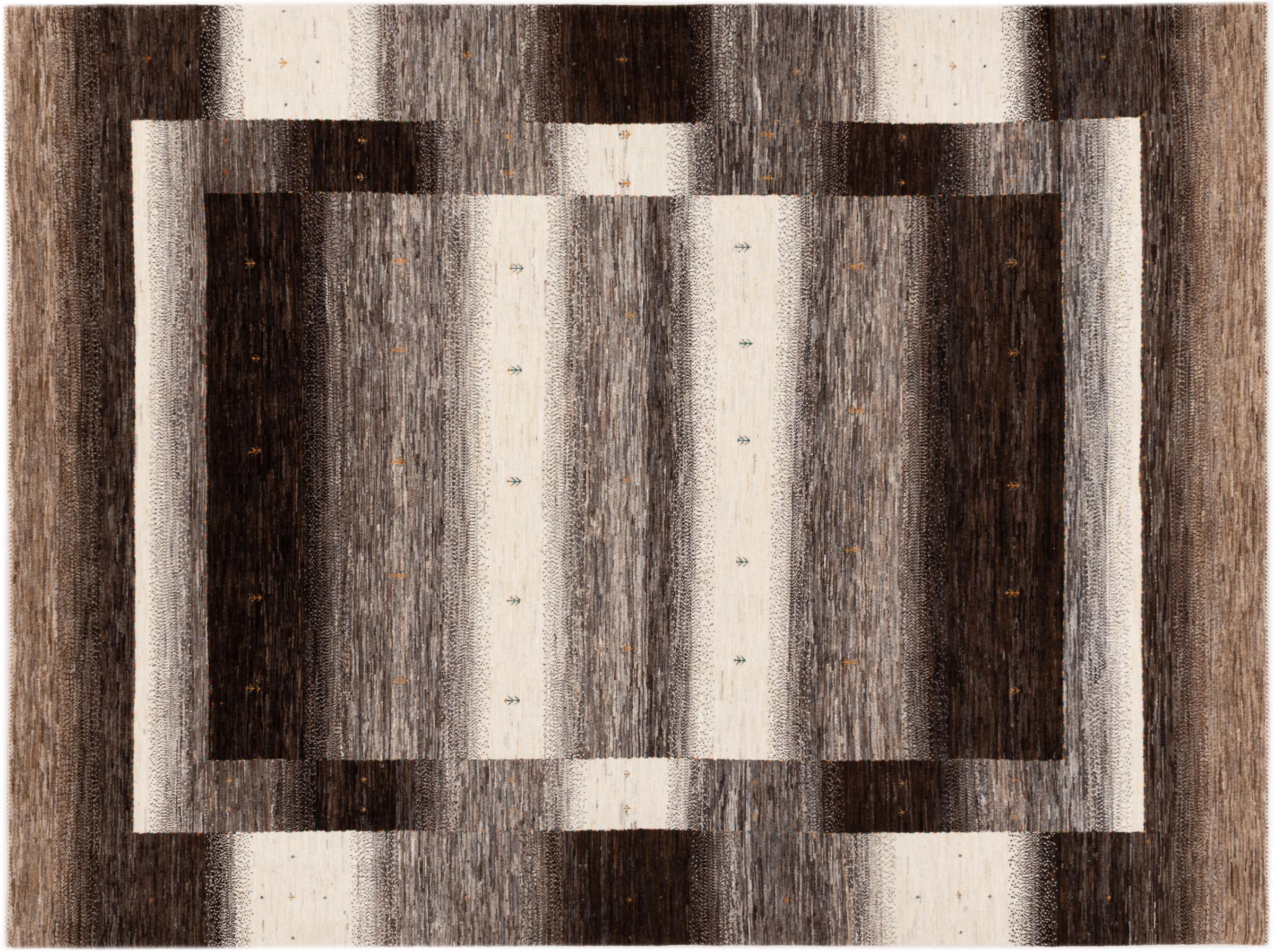Dette smukke tæppe er en persisk Gabbeh og er en af ​​de højeste kvalitet Gabbeh tæpper. Tæpper er knyttet af nomader eller semi-nomader i Iran ved hjælp af traditionelt håndværk. De enkle motiver og mønstre er for det meste inspireret af nomadernes umiddelbare omgivelser. F.eks. Kan kameler, træer eller buske findes på traditionelle tæpper. Persiske Gabbeh-tæpper er lavet af uld fra lokale fårbesætninger. Ulden er derfor for det meste spundet for hånd. Hver af disse orientalske tæpper udgør en unik karakter af århundreder gammel kultur.