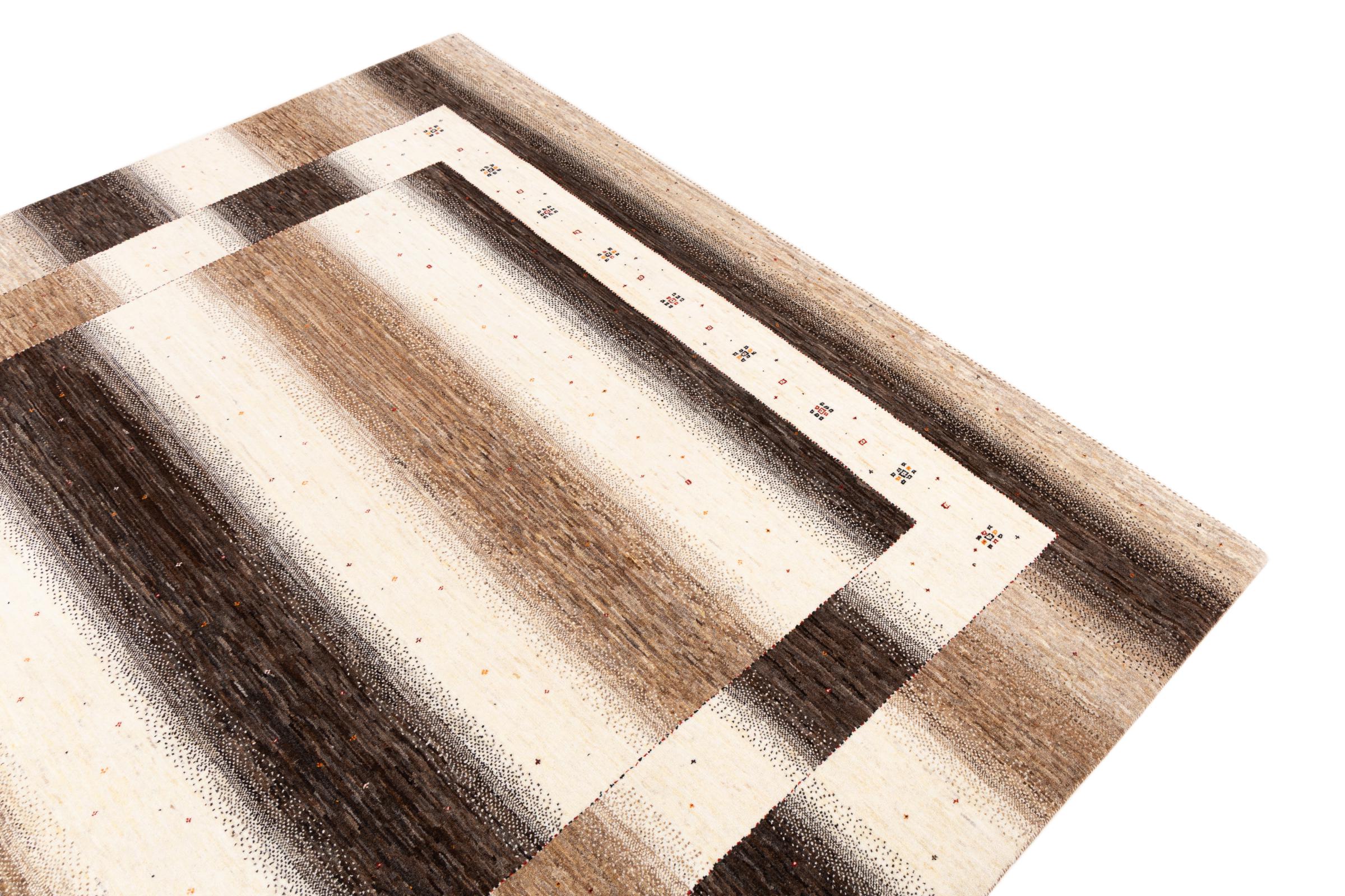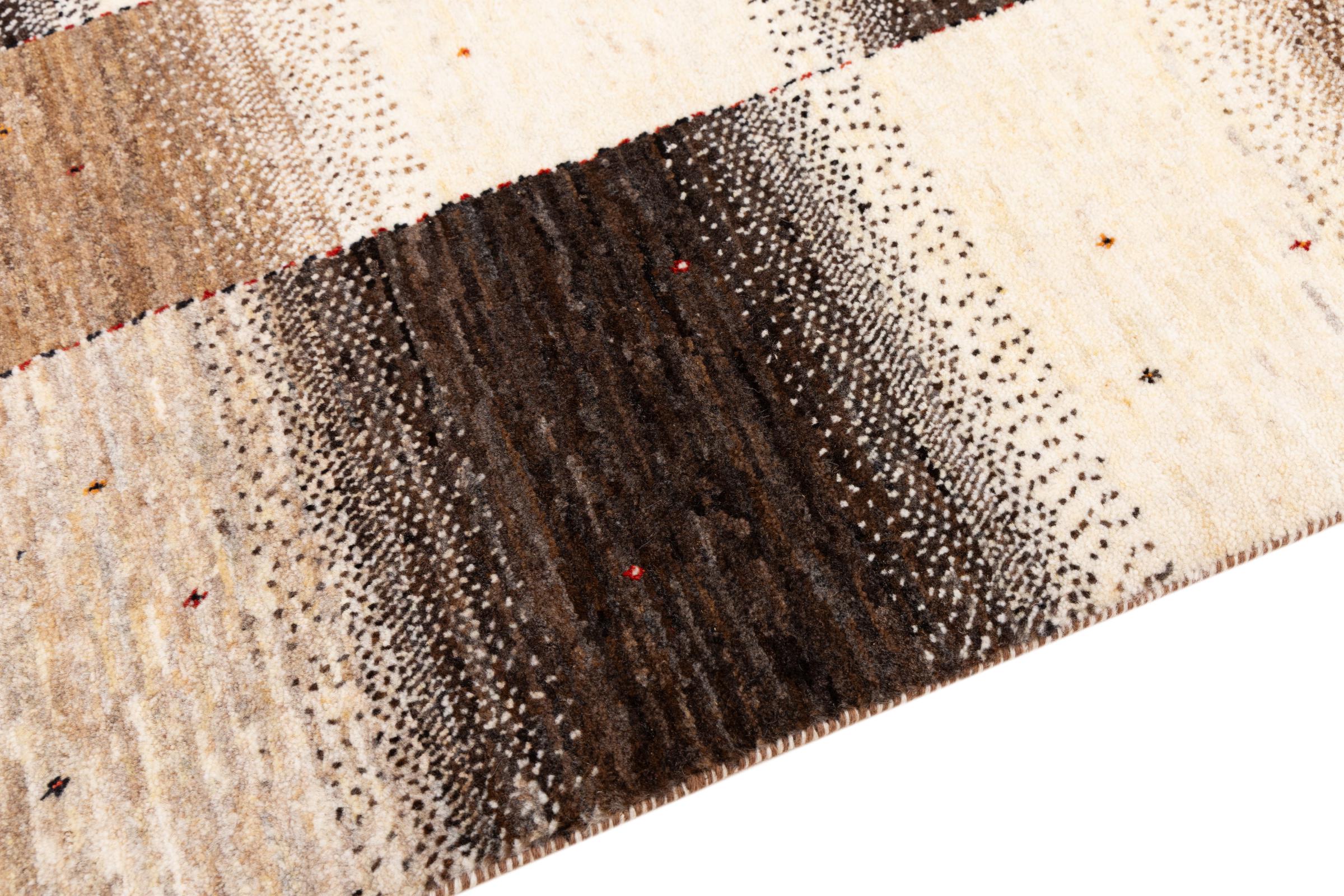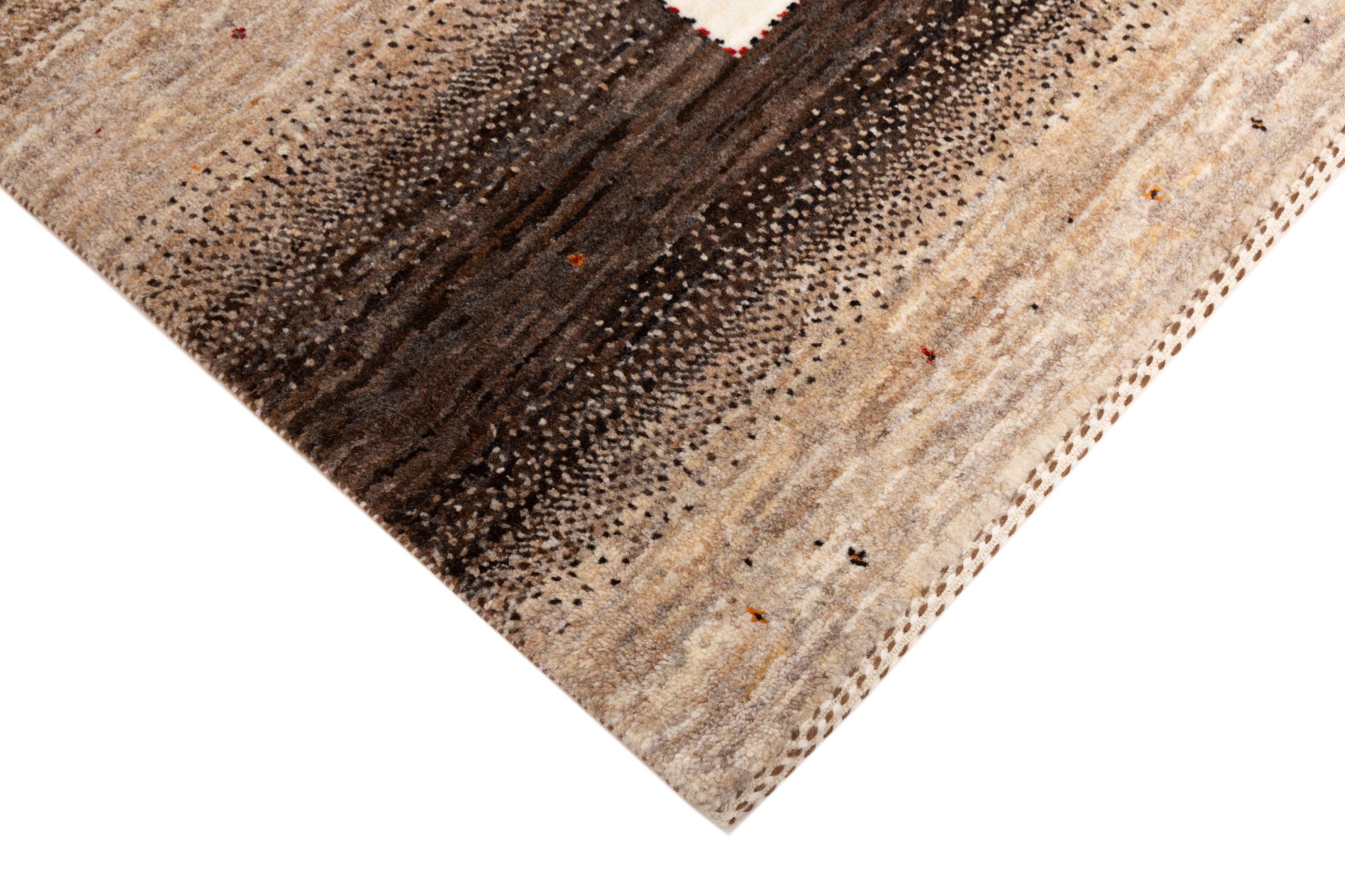 Dette smukke tæppe er en persisk Gabbeh og er en af ​​de højeste kvalitet Gabbeh tæpper. Tæpper er knyttet af nomader eller semi-nomader i Iran ved hjælp af traditionelt håndværk. De enkle motiver og mønstre er for det meste inspireret af nomadernes umiddelbare omgivelser. F.eks. Kan kameler, træer eller buske findes på traditionelle tæpper. Persiske Gabbeh-tæpper er lavet af uld fra lokale fårbesætninger. Ulden er derfor for det meste spundet for hånd. Hver af disse orientalske tæpper udgør en unik karakter af århundreder gammel kultur.