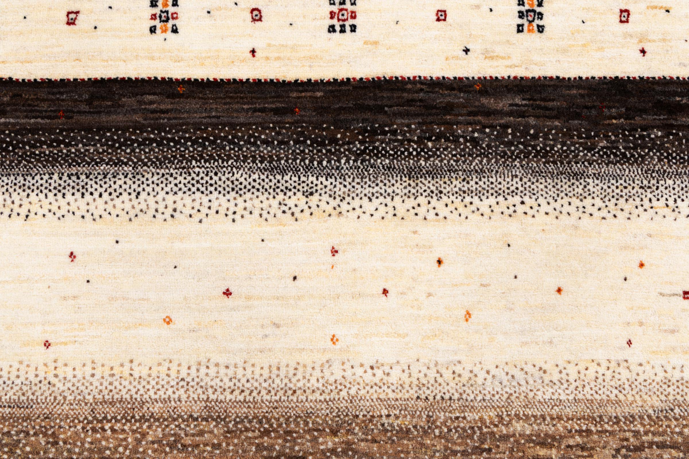 En forfinelse af de allerede velkendte Gabbeh-tæpper: Det er dette persiske Gabbeh Loribaft. Med sin finere vævning og smukke design ved det, hvordan man imponerer. Det er håndknyttet af Loren i det sydlige Persien af den bedste håndspundne fåreuld. Der er kun brugt rene vegetabilske farvestoffer til at farve ulden. Med dette tæppe får du den højeste standard af Gabbeh-tæpper til dit hjem.