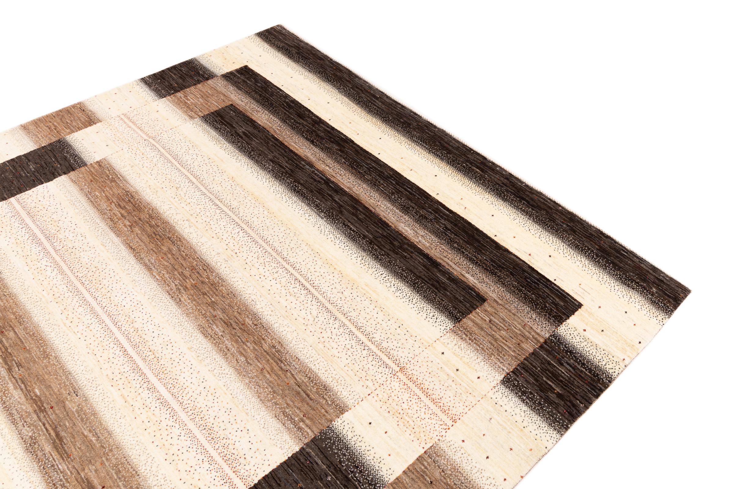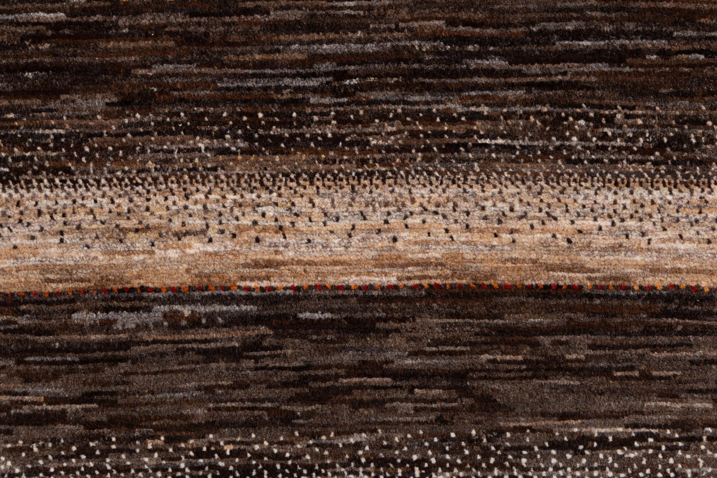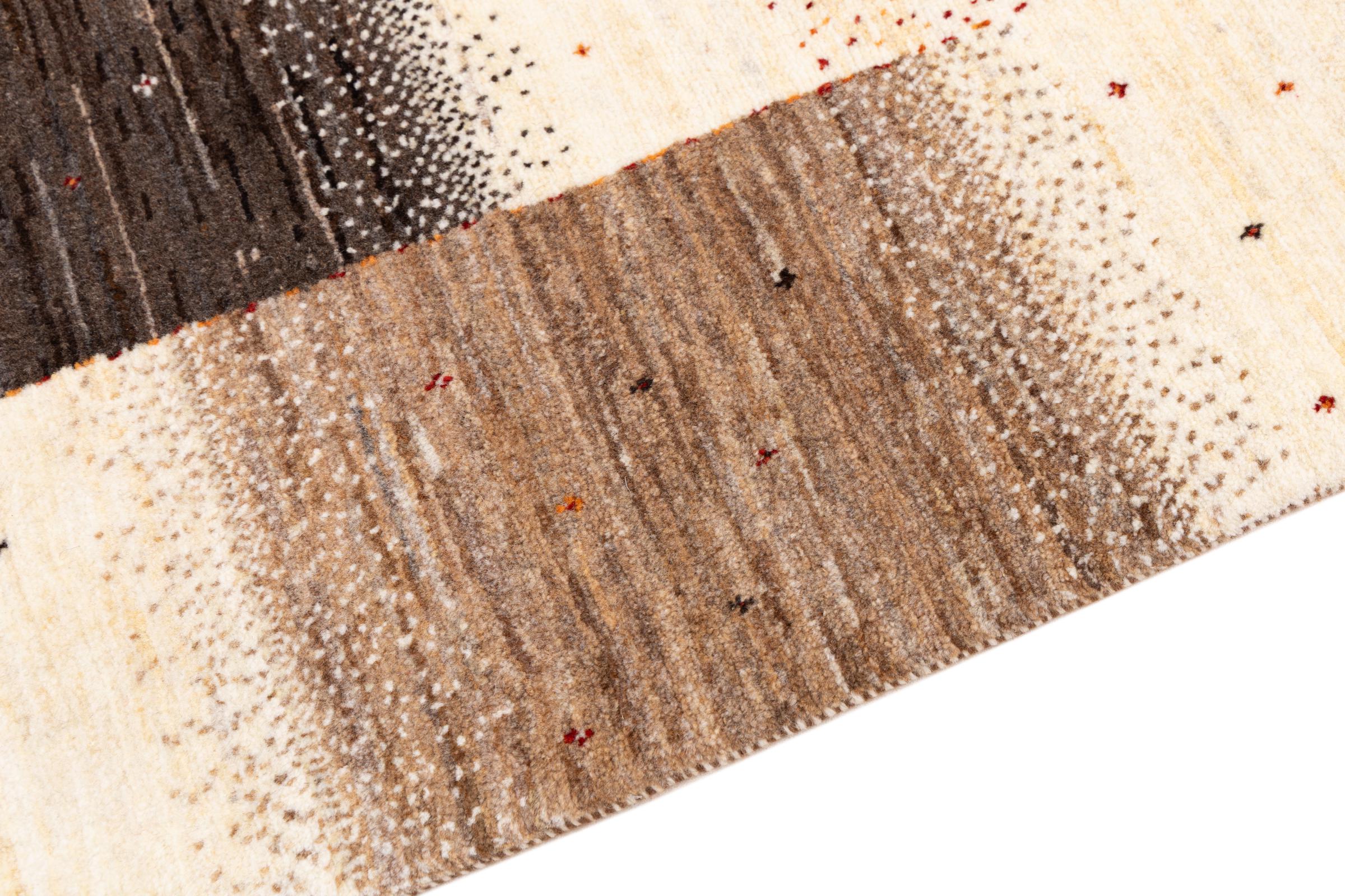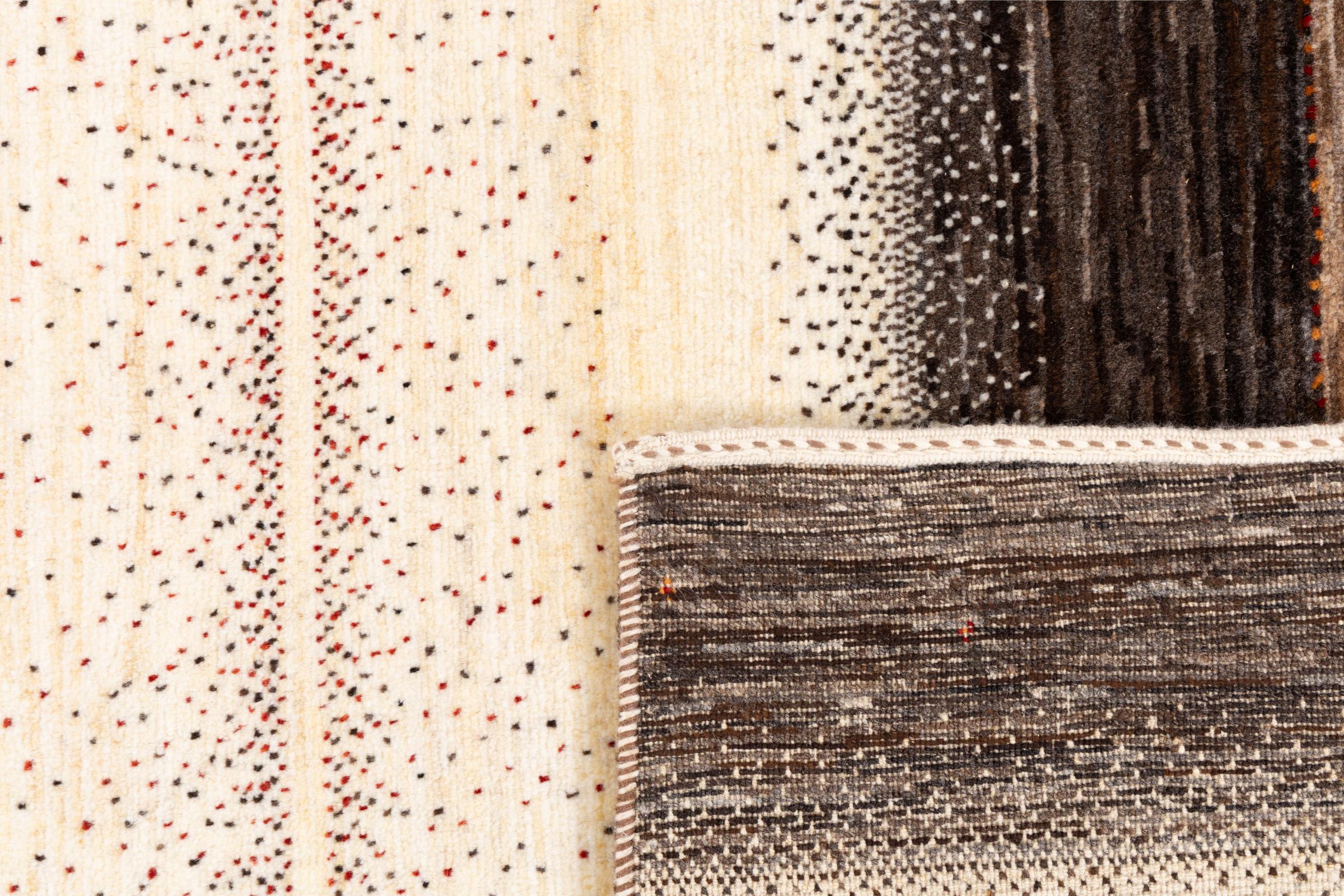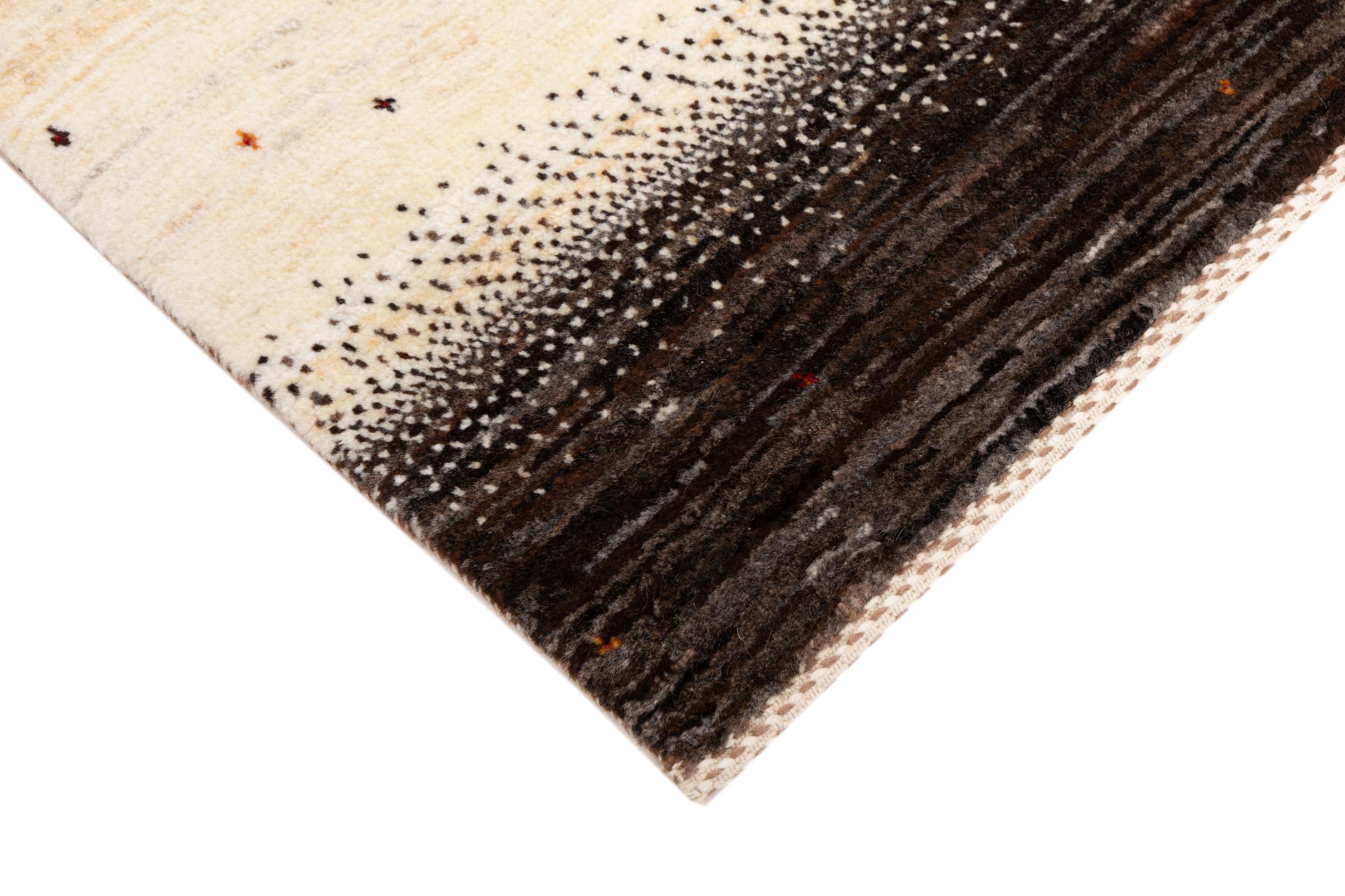 Dette smukke tæppe er en persisk Gabbeh og er en af ​​de højeste kvalitet Gabbeh tæpper. Tæpper er knyttet af nomader eller semi-nomader i Iran ved hjælp af traditionelt håndværk. De enkle motiver og mønstre er for det meste inspireret af nomadernes umiddelbare omgivelser. F.eks. Kan kameler, træer eller buske findes på traditionelle tæpper. Persiske Gabbeh-tæpper er lavet af uld fra lokale fårbesætninger. Ulden er derfor for det meste spundet for hånd. Hver af disse orientalske tæpper udgør en unik karakter af århundreder gammel kultur.