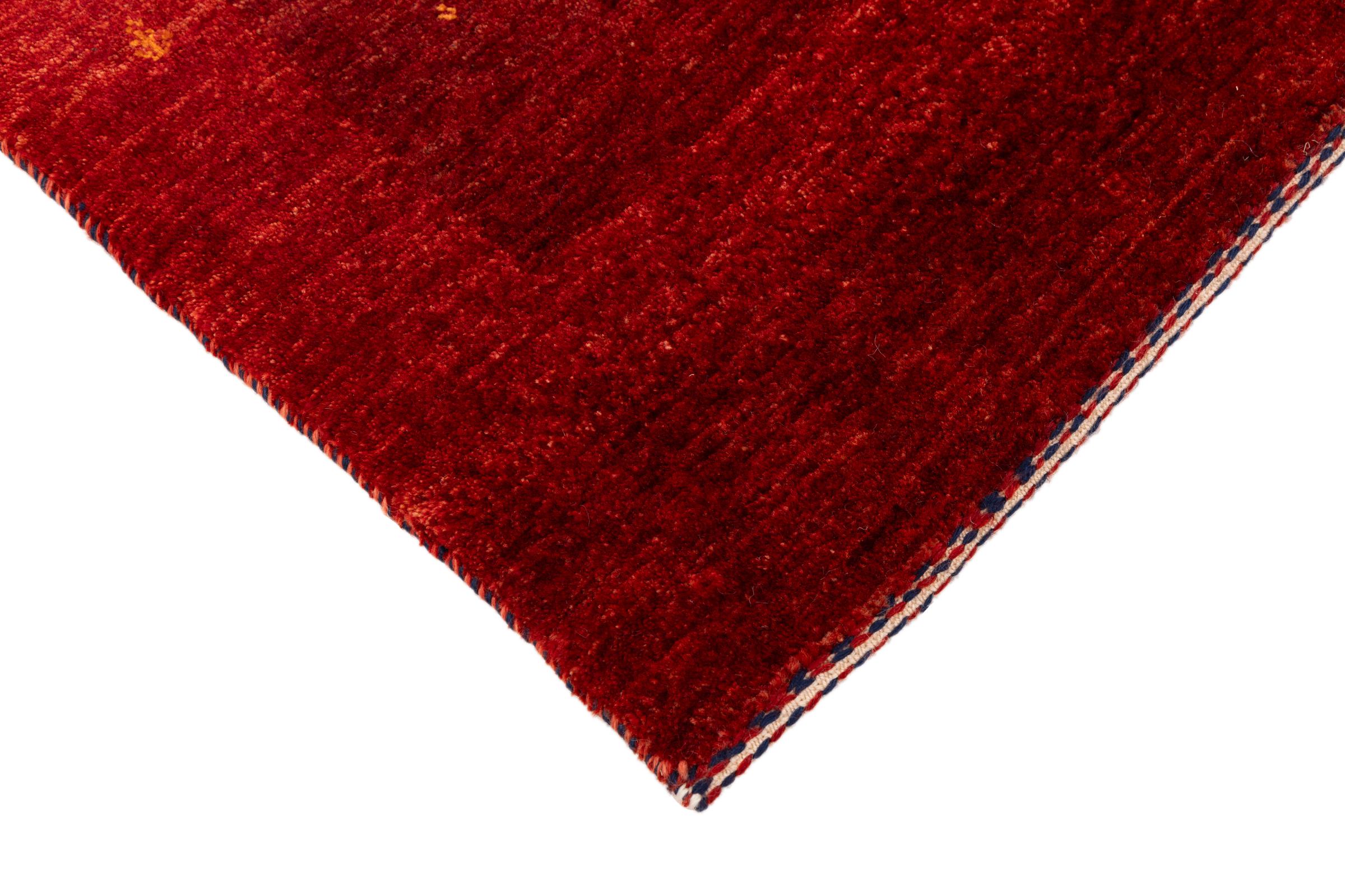 Dette smukke tæppe er en persisk Gabbeh og er en af ​​de højeste kvalitet Gabbeh tæpper. Tæpper er knyttet af nomader eller semi-nomader i Iran ved hjælp af traditionelt håndværk. De enkle motiver og mønstre er for det meste inspireret af nomadernes umiddelbare omgivelser. F.eks. Kan kameler, træer eller buske findes på traditionelle tæpper. Persiske Gabbeh-tæpper er lavet af uld fra lokale fårbesætninger. Ulden er derfor for det meste spundet for hånd. Hver af disse orientalske tæpper udgør en unik karakter af århundreder gammel kultur.