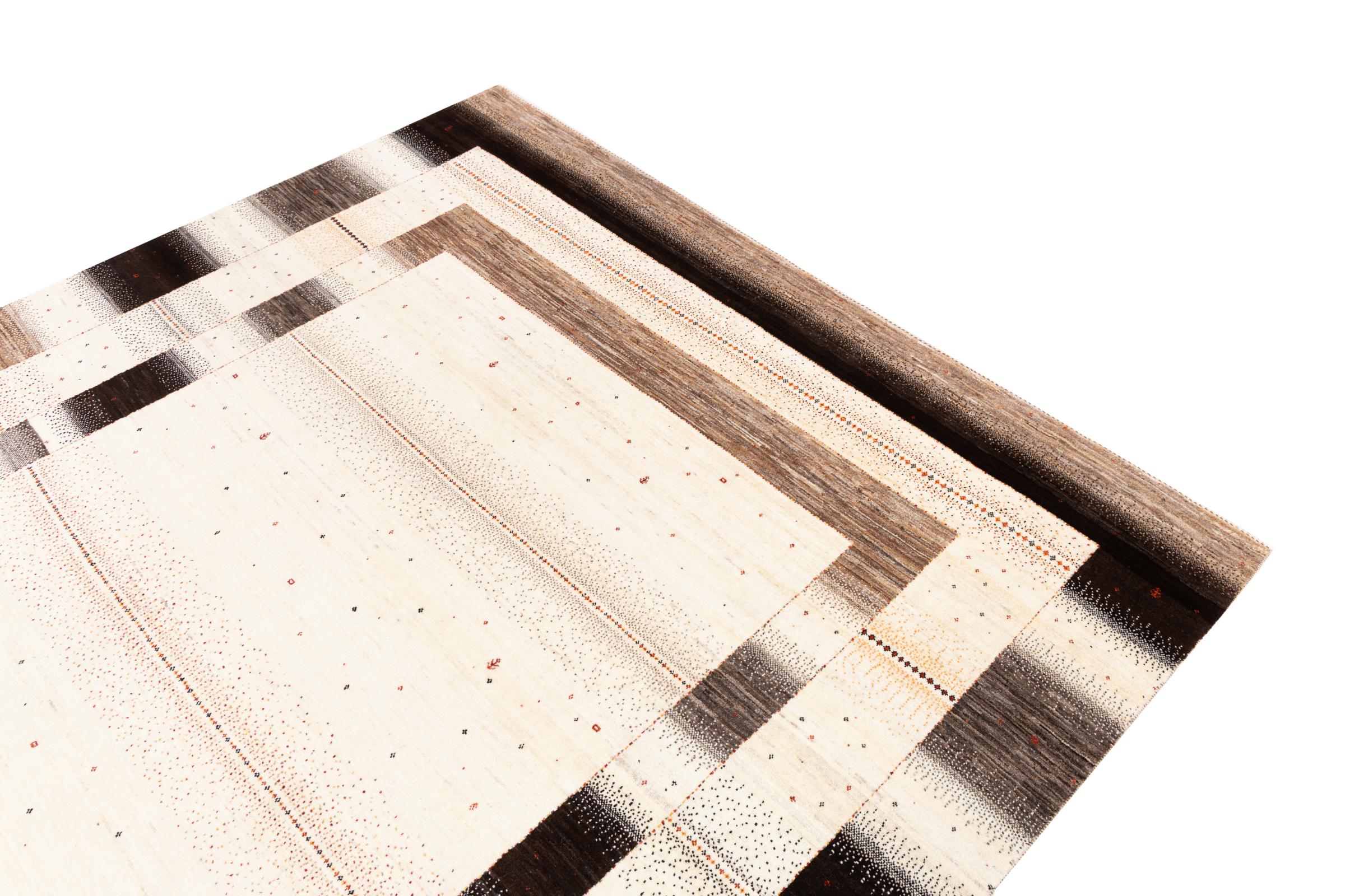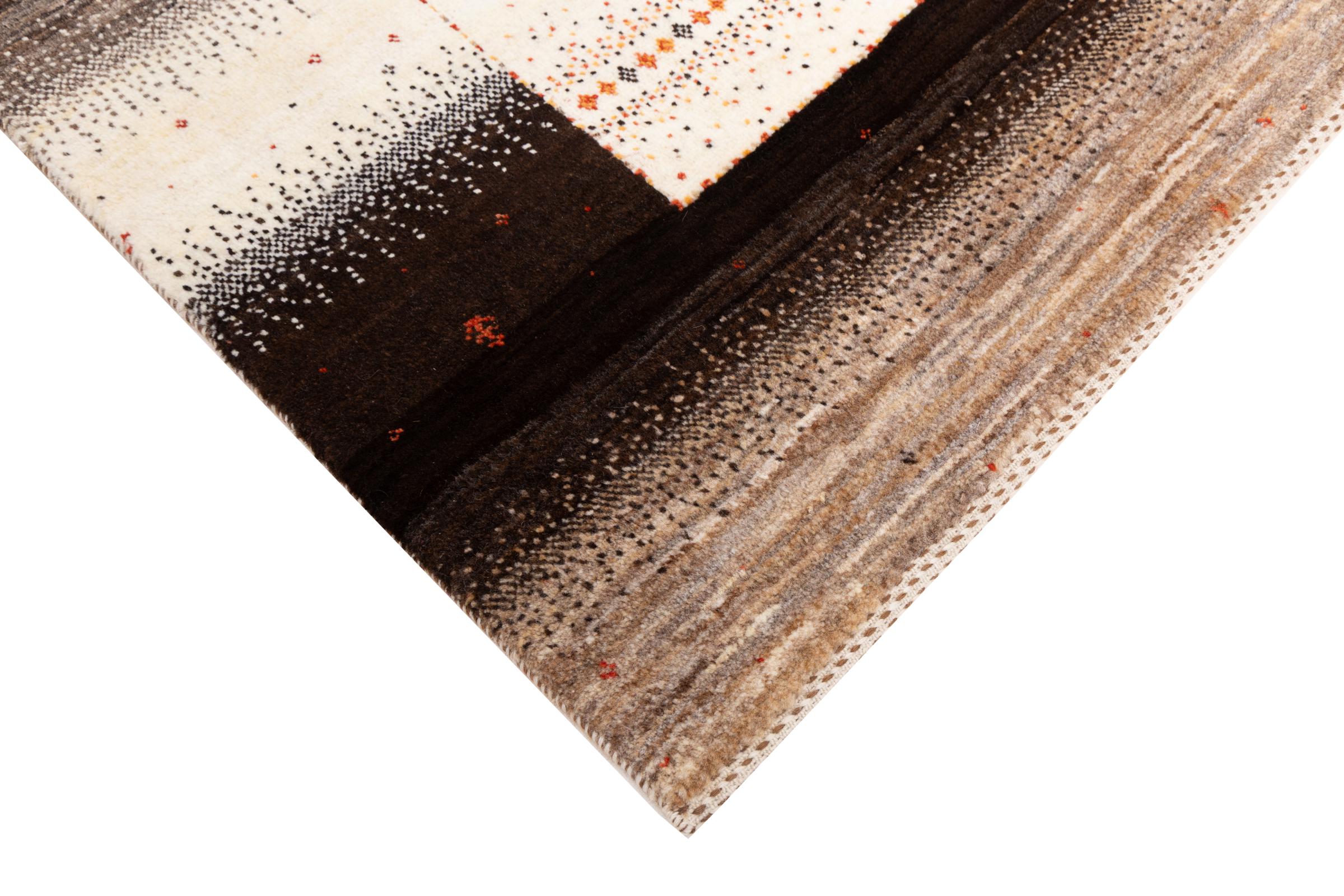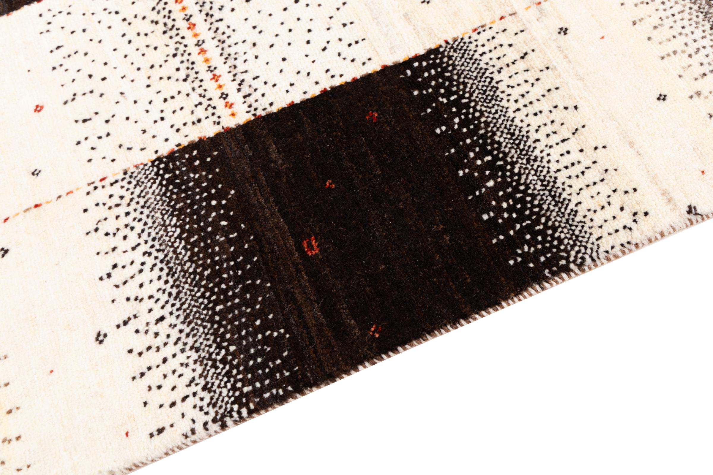 Dette smukke tæppe er en persisk Gabbeh og er en af ​​de højeste kvalitet Gabbeh tæpper. Tæpper er knyttet af nomader eller semi-nomader i Iran ved hjælp af traditionelt håndværk. De enkle motiver og mønstre er for det meste inspireret af nomadernes umiddelbare omgivelser. F.eks. Kan kameler, træer eller buske findes på traditionelle tæpper. Persiske Gabbeh-tæpper er lavet af uld fra lokale fårbesætninger. Ulden er derfor for det meste spundet for hånd. Hver af disse orientalske tæpper udgør en unik karakter af århundreder gammel kultur.