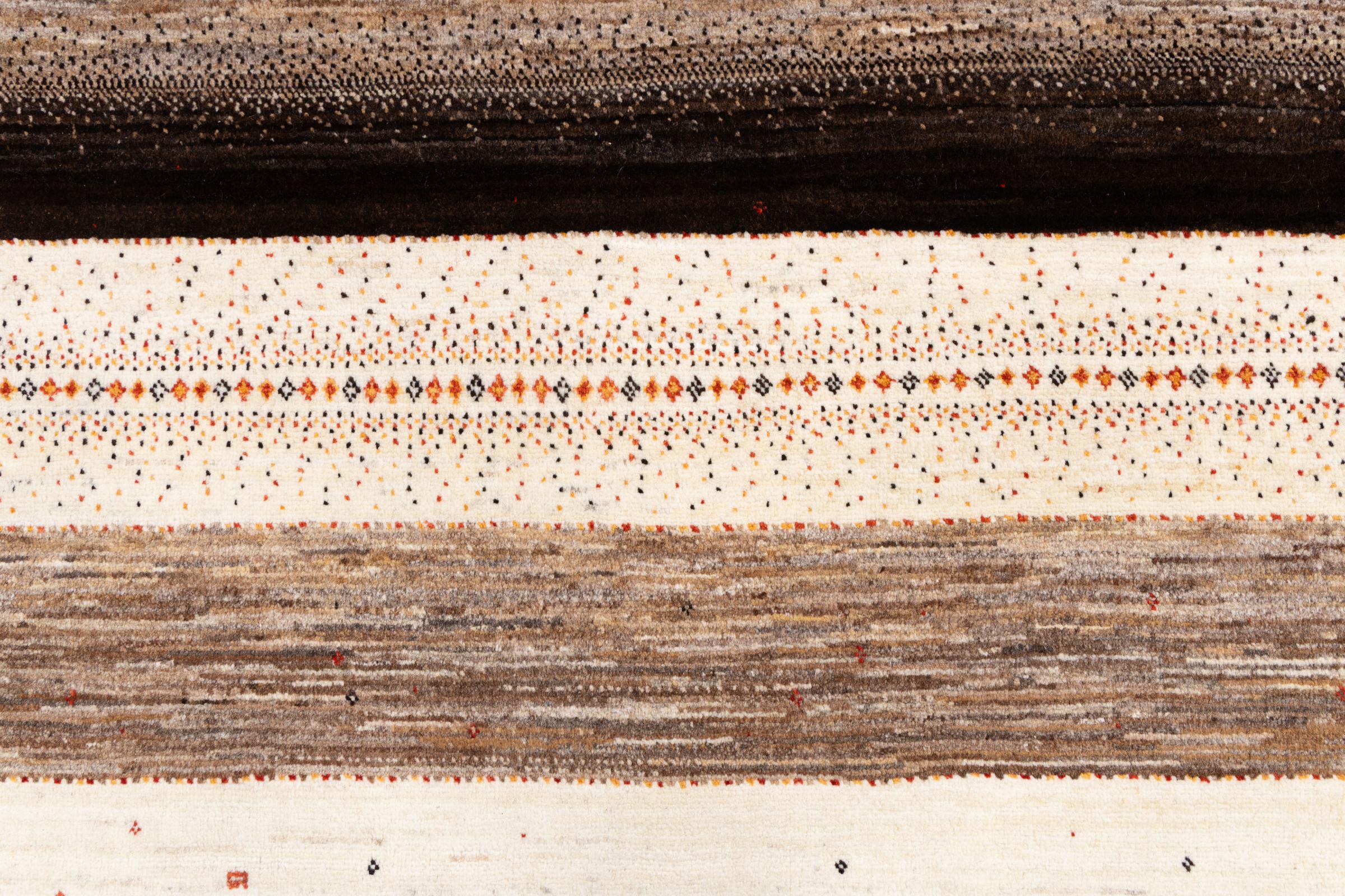 En forfinelse af de allerede velkendte Gabbeh-tæpper: Det er dette persiske Gabbeh Loribaft. Med sin finere vævning og smukke design ved det, hvordan man imponerer. Det er håndknyttet af Loren i det sydlige Persien af den bedste håndspundne fåreuld. Der er kun brugt rene vegetabilske farvestoffer til at farve ulden. Med dette tæppe får du den højeste standard af Gabbeh-tæpper til dit hjem.