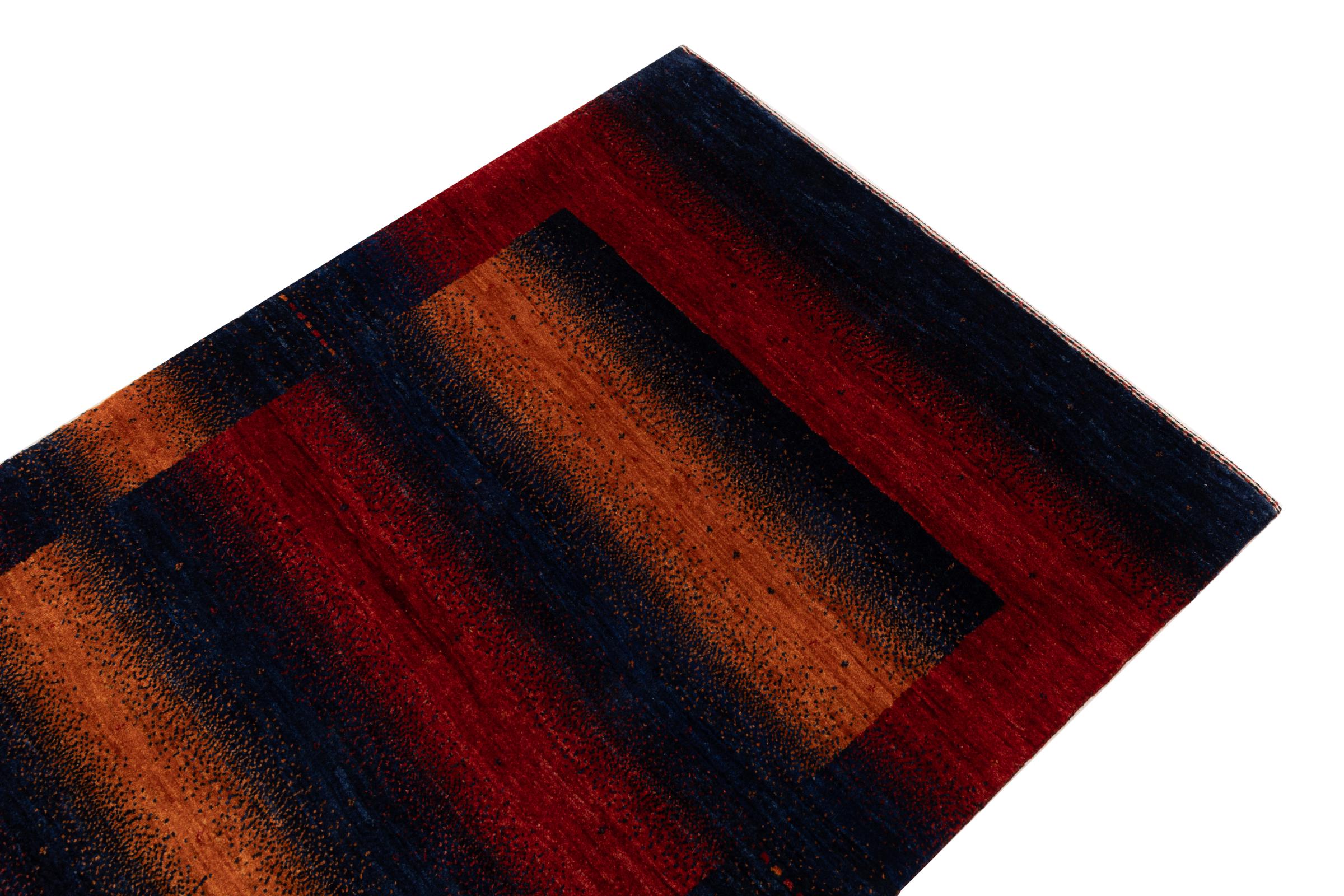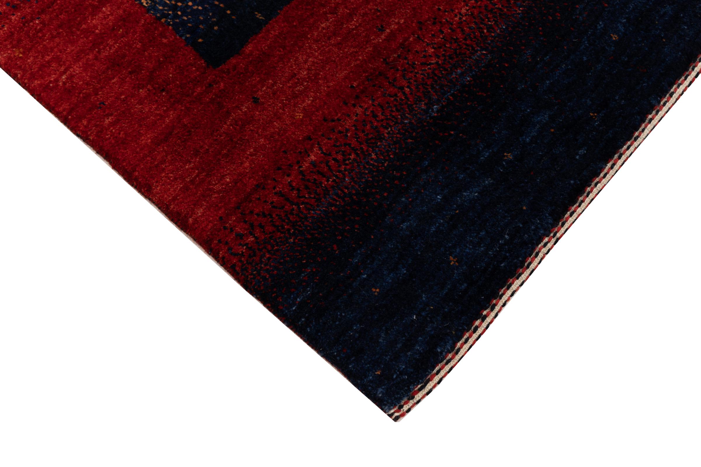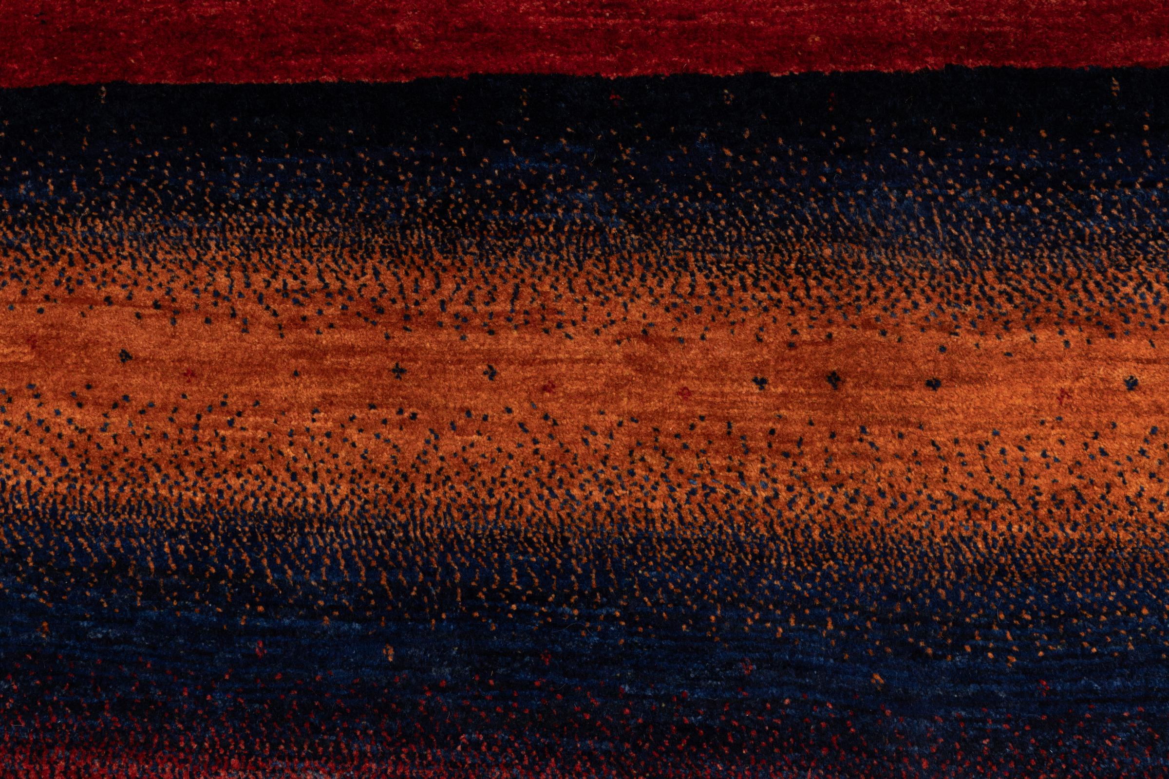 Dette smukke tæppe er en persisk Gabbeh og er en af ​​de højeste kvalitet Gabbeh tæpper. Tæpper er knyttet af nomader eller semi-nomader i Iran ved hjælp af traditionelt håndværk. De enkle motiver og mønstre er for det meste inspireret af nomadernes umiddelbare omgivelser. F.eks. Kan kameler, træer eller buske findes på traditionelle tæpper. Persiske Gabbeh-tæpper er lavet af uld fra lokale fårbesætninger. Ulden er derfor for det meste spundet for hånd. Hver af disse orientalske tæpper udgør en unik karakter af århundreder gammel kultur.