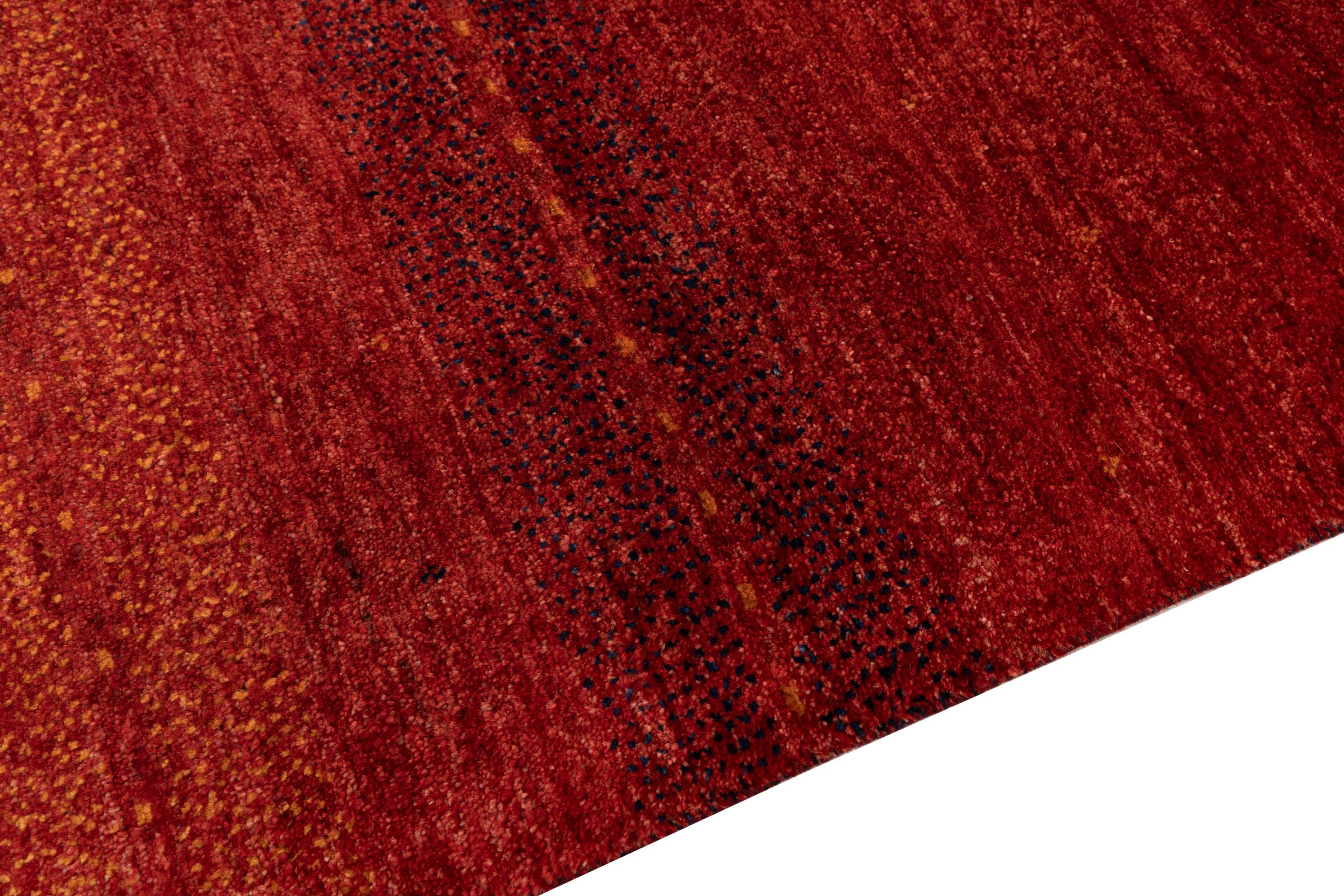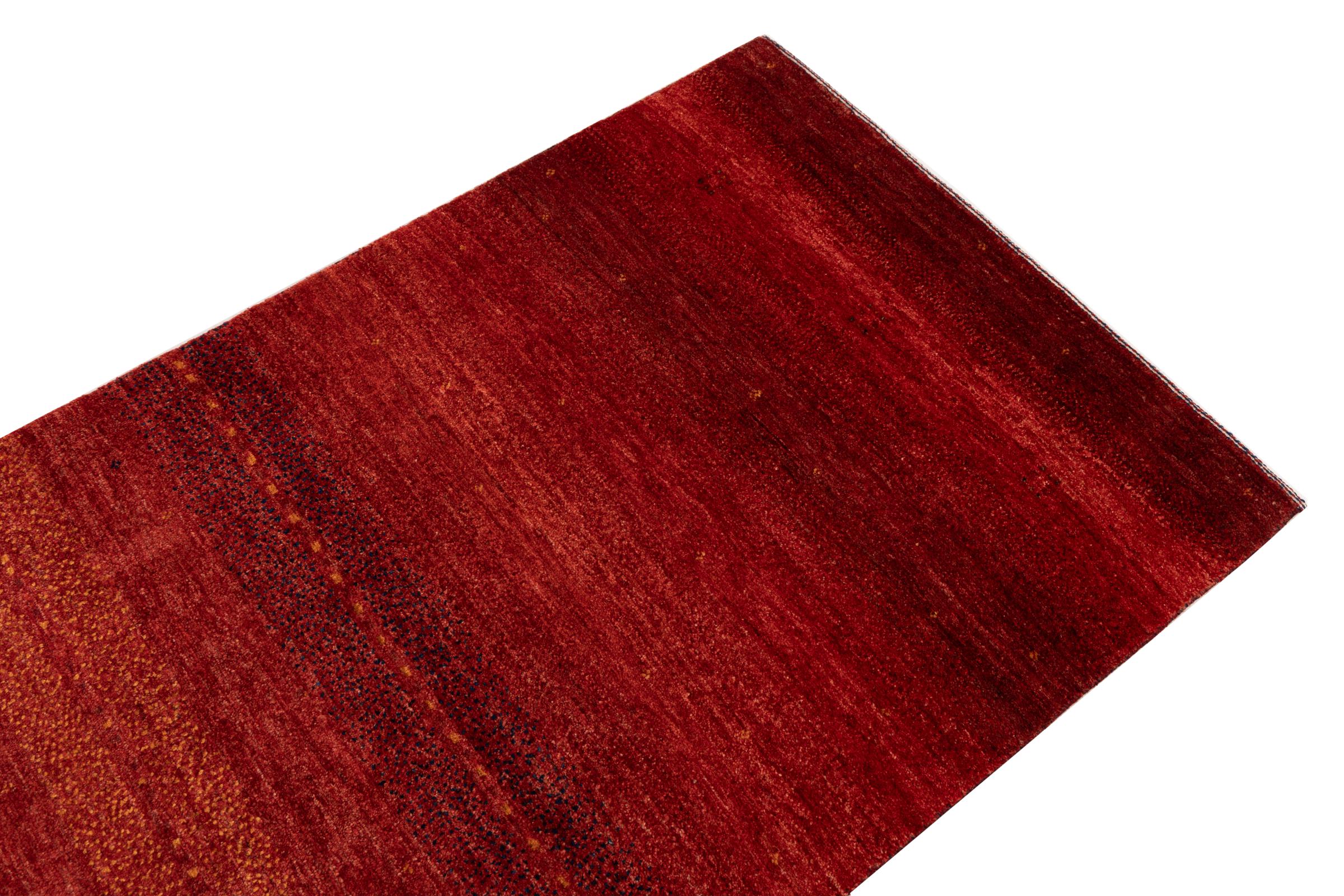 Dette smukke tæppe er en persisk Gabbeh og er en af ​​de højeste kvalitet Gabbeh tæpper. Tæpper er knyttet af nomader eller semi-nomader i Iran ved hjælp af traditionelt håndværk. De enkle motiver og mønstre er for det meste inspireret af nomadernes umiddelbare omgivelser. F.eks. Kan kameler, træer eller buske findes på traditionelle tæpper. Persiske Gabbeh-tæpper er lavet af uld fra lokale fårbesætninger. Ulden er derfor for det meste spundet for hånd. Hver af disse orientalske tæpper udgør en unik karakter af århundreder gammel kultur.