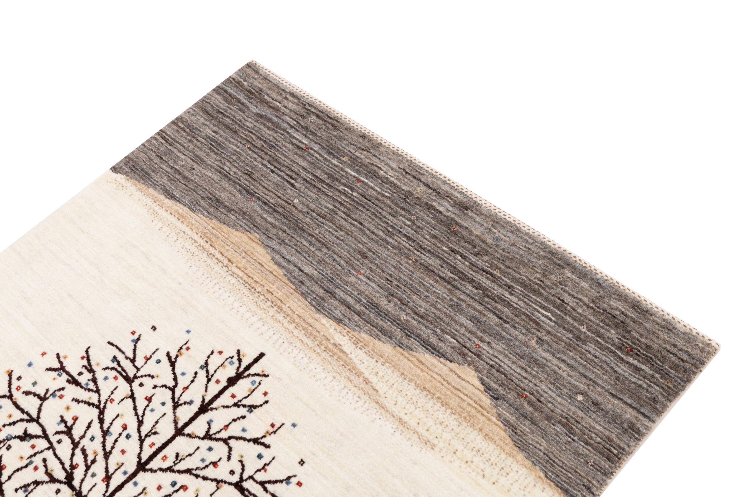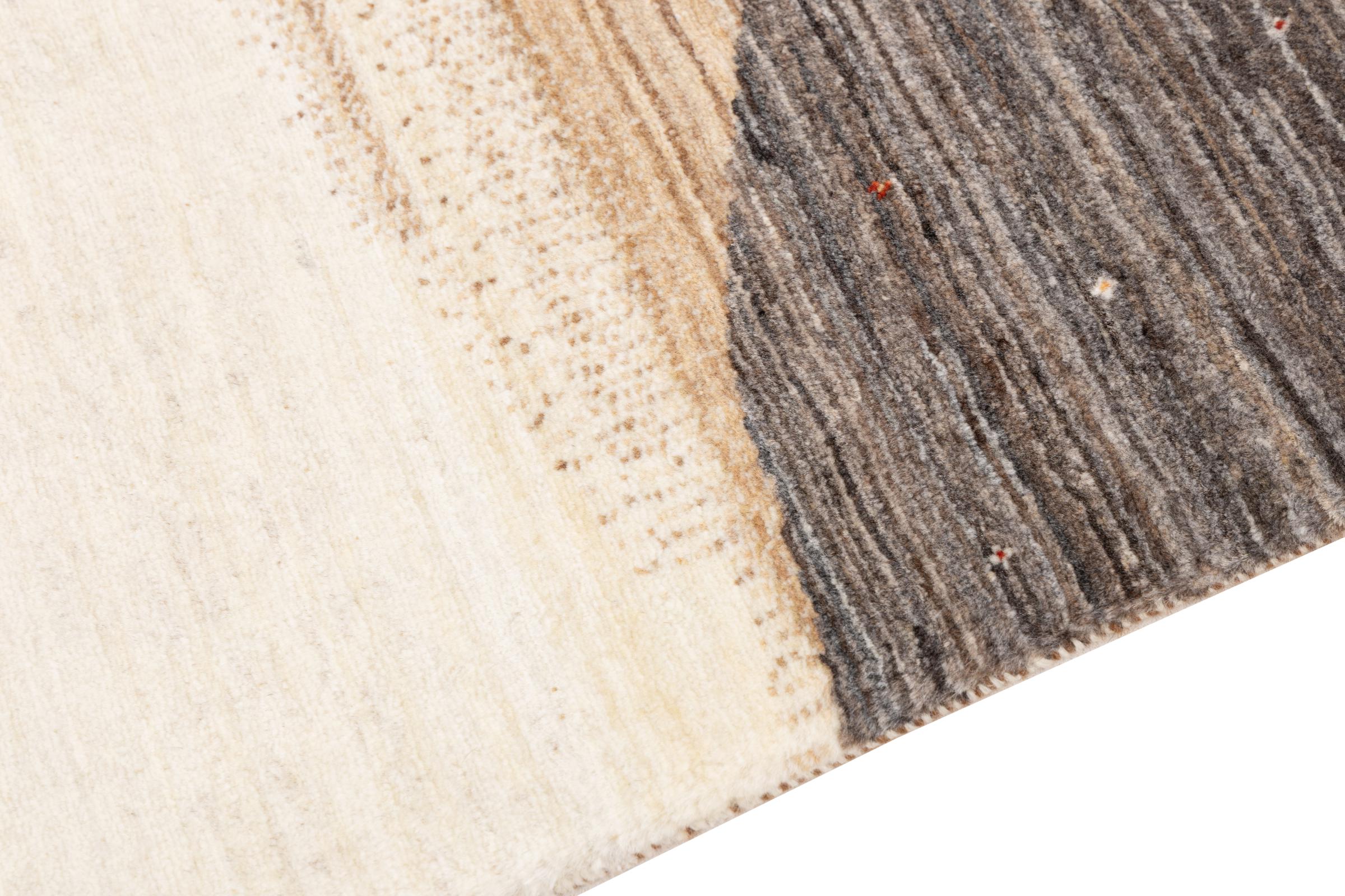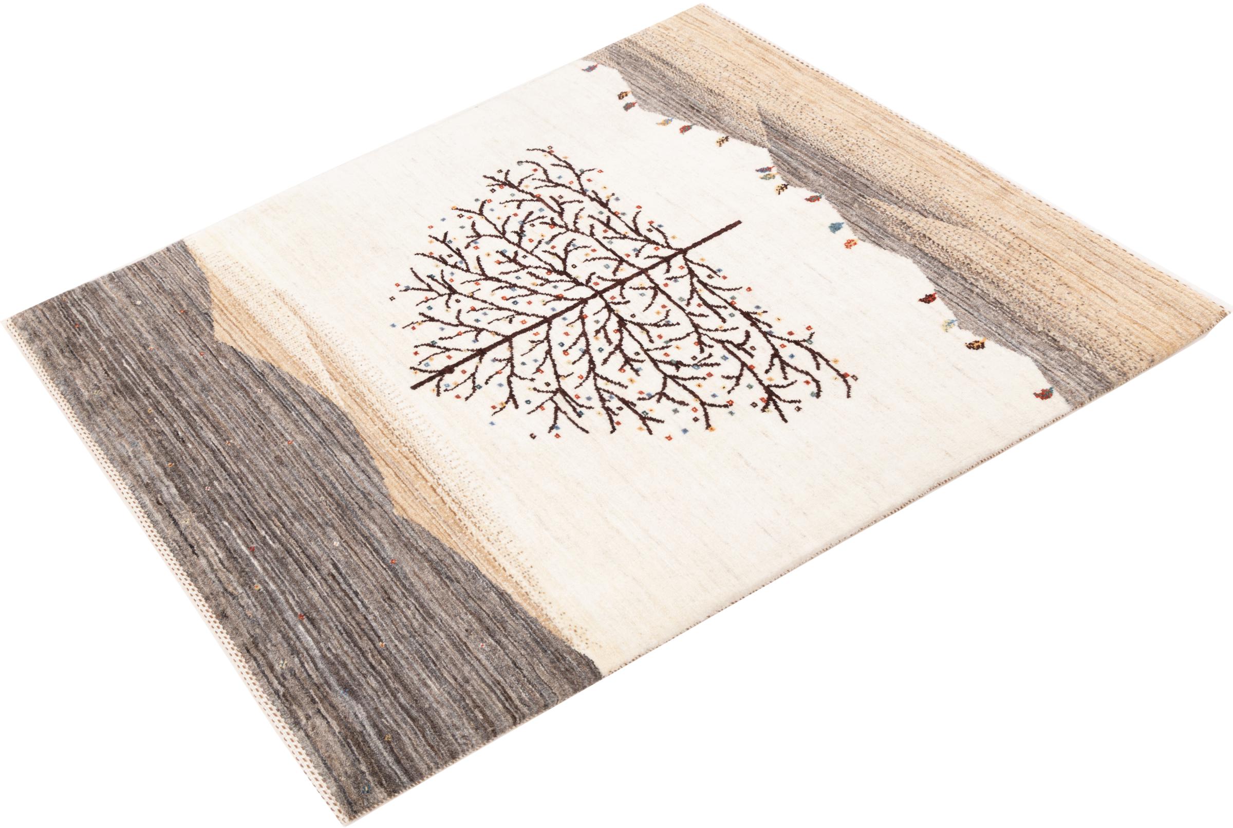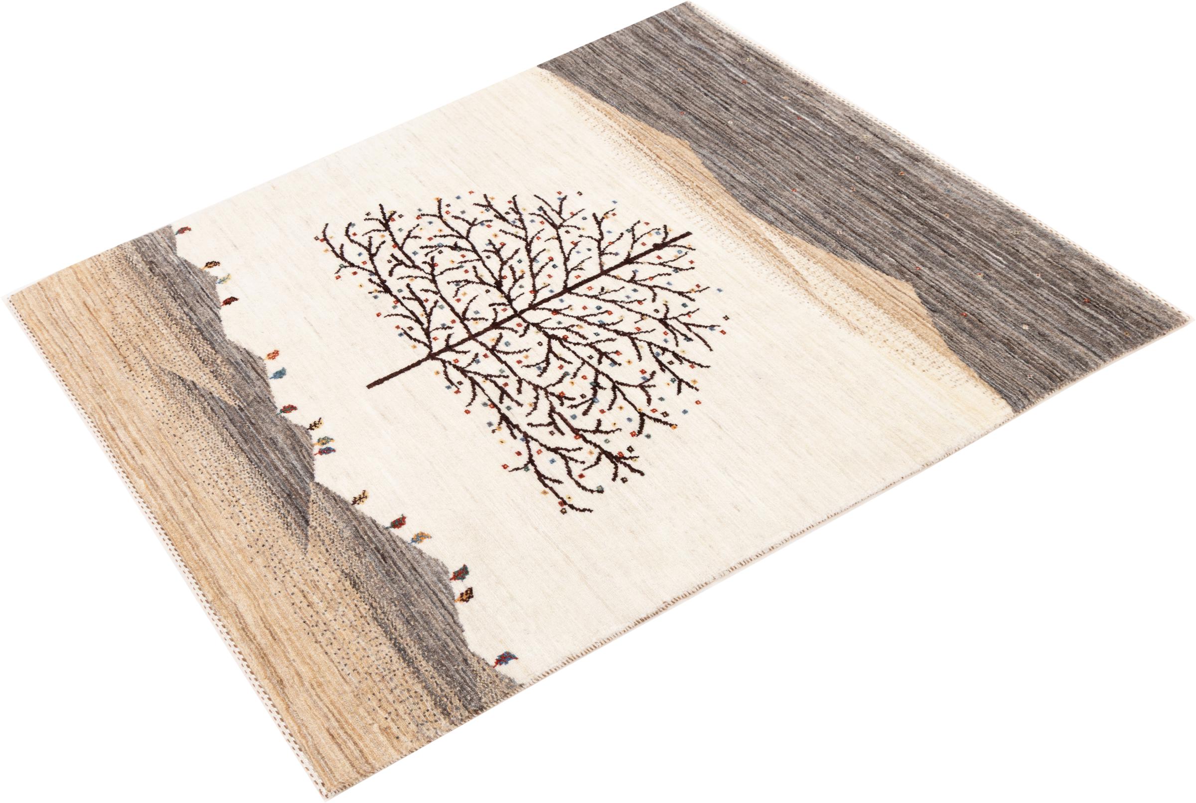 Dette smukke tæppe er en persisk Gabbeh og er en af ​​de højeste kvalitet Gabbeh tæpper. Tæpper er knyttet af nomader eller semi-nomader i Iran ved hjælp af traditionelt håndværk. De enkle motiver og mønstre er for det meste inspireret af nomadernes umiddelbare omgivelser. F.eks. Kan kameler, træer eller buske findes på traditionelle tæpper. Persiske Gabbeh-tæpper er lavet af uld fra lokale fårbesætninger. Ulden er derfor for det meste spundet for hånd. Hver af disse orientalske tæpper udgør en unik karakter af århundreder gammel kultur.