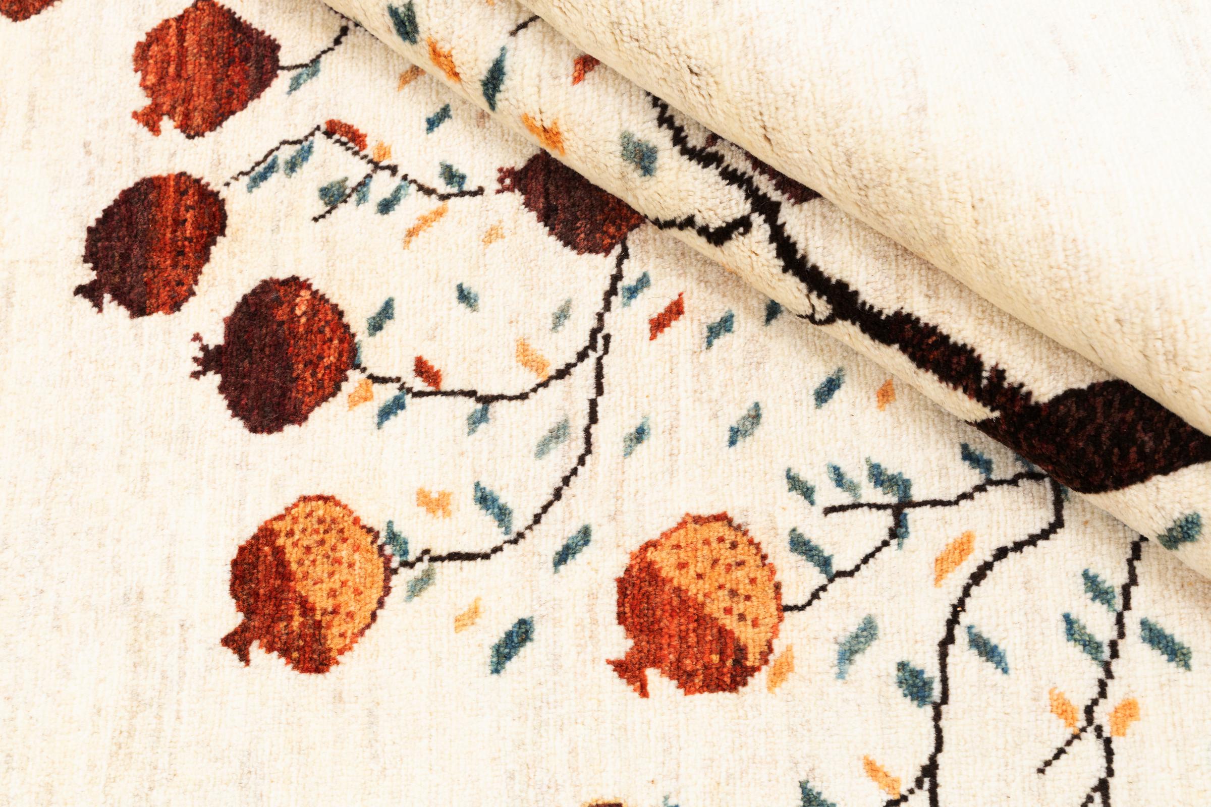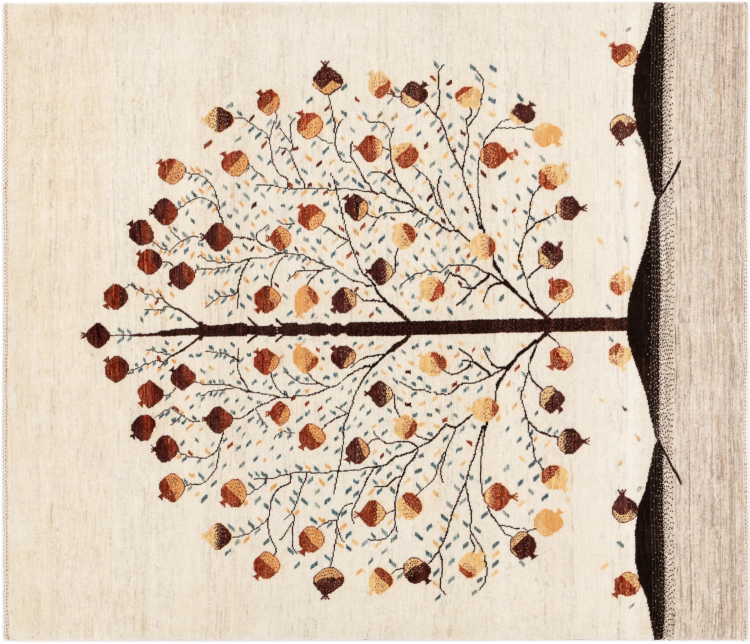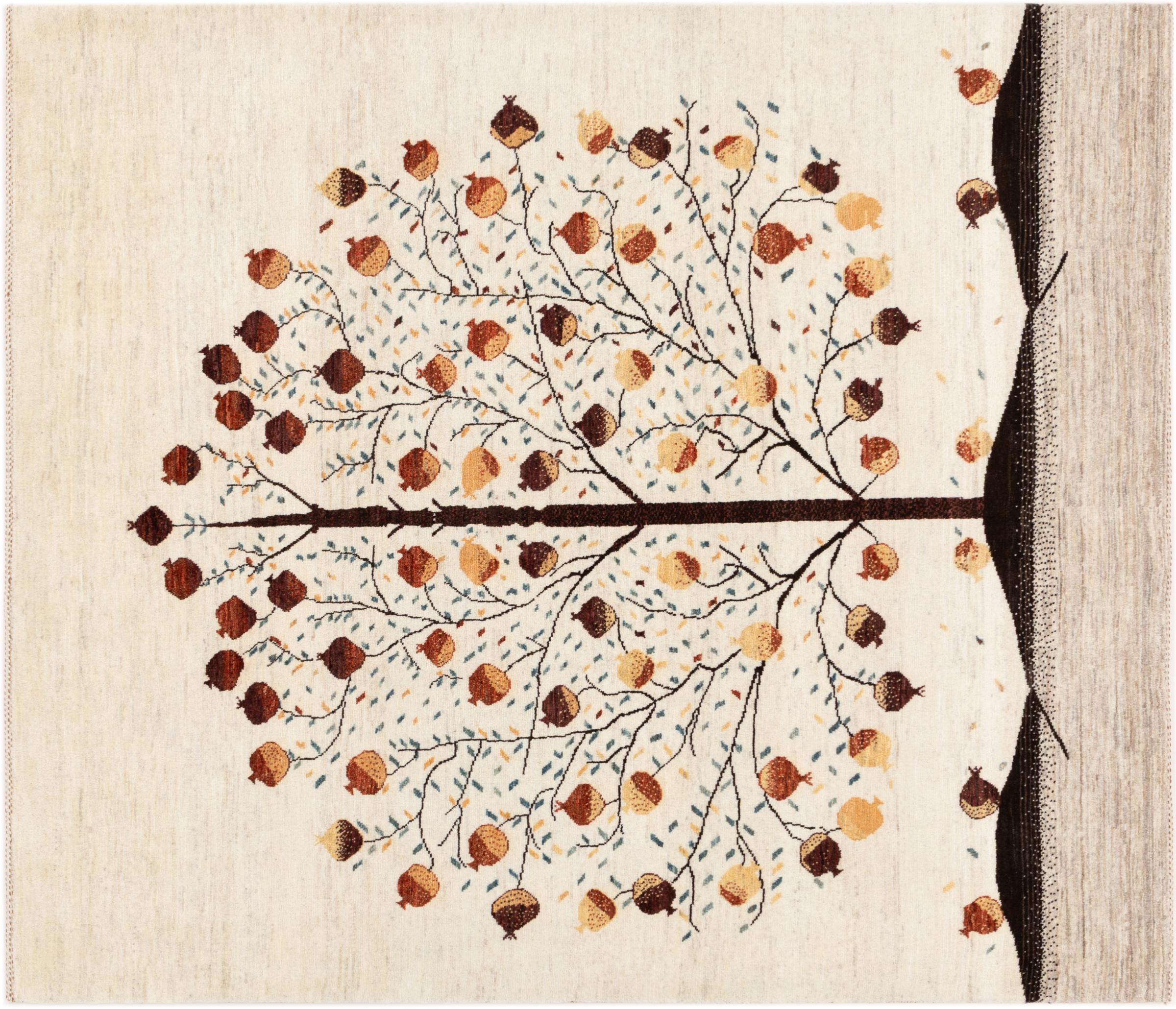 Dette smukke tæppe er en persisk Gabbeh og er en af ​​de højeste kvalitet Gabbeh tæpper. Tæpper er knyttet af nomader eller semi-nomader i Iran ved hjælp af traditionelt håndværk. De enkle motiver og mønstre er for det meste inspireret af nomadernes umiddelbare omgivelser. F.eks. Kan kameler, træer eller buske findes på traditionelle tæpper. Persiske Gabbeh-tæpper er lavet af uld fra lokale fårbesætninger. Ulden er derfor for det meste spundet for hånd. Hver af disse orientalske tæpper udgør en unik karakter af århundreder gammel kultur.