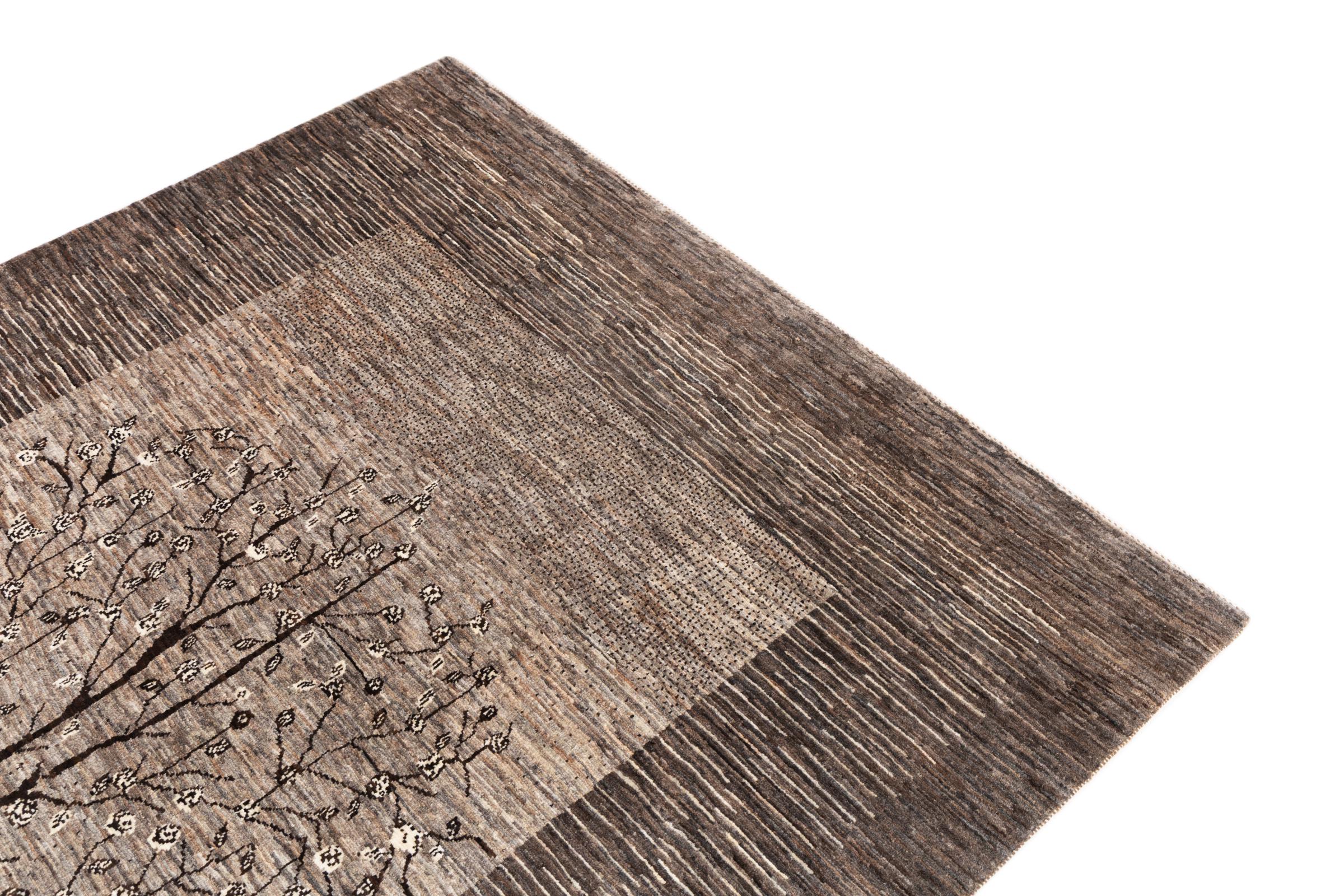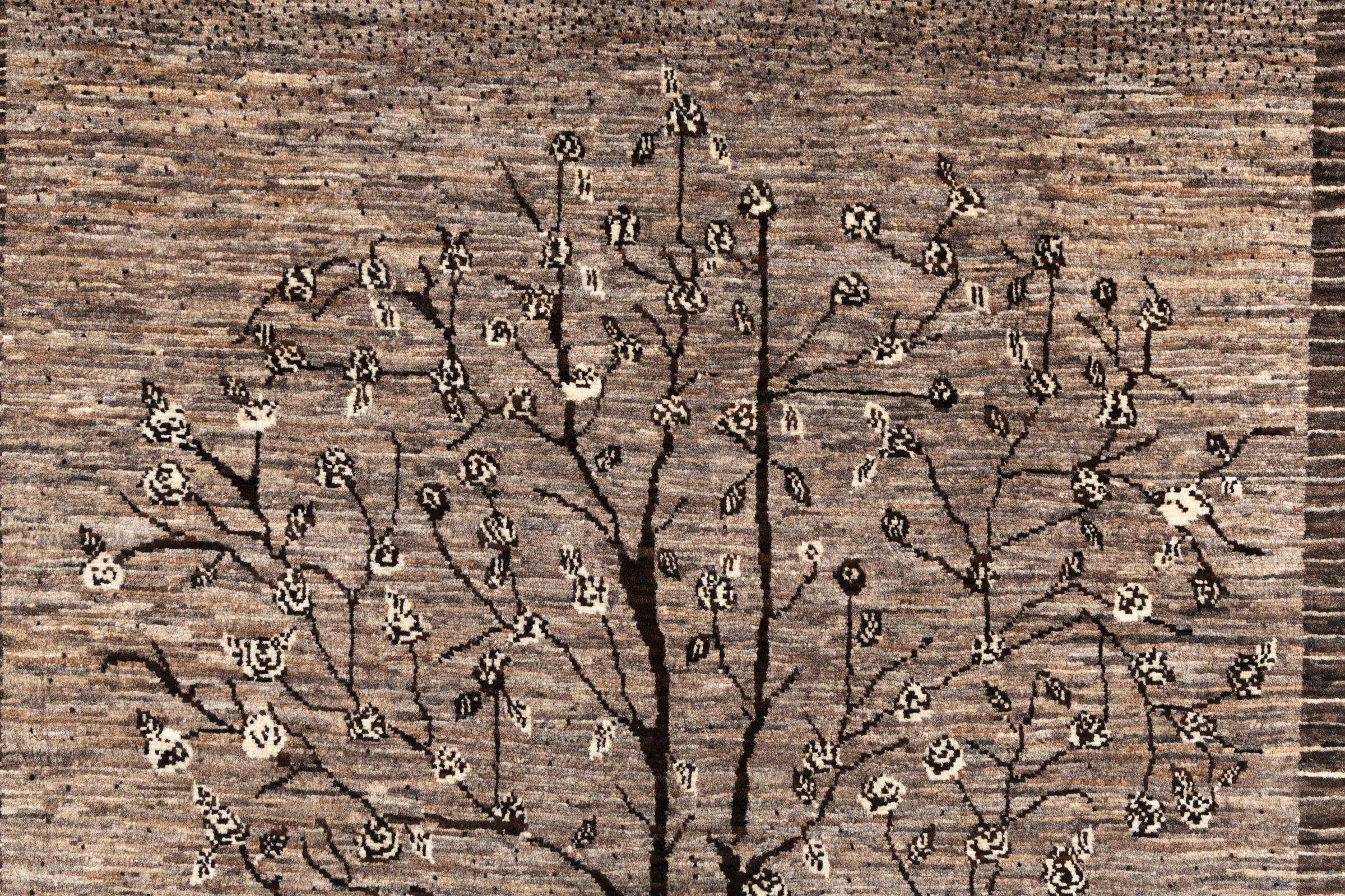 Dette smukke tæppe er en persisk Gabbeh og er en af ​​de højeste kvalitet Gabbeh tæpper. Tæpper er knyttet af nomader eller semi-nomader i Iran ved hjælp af traditionelt håndværk. De enkle motiver og mønstre er for det meste inspireret af nomadernes umiddelbare omgivelser. F.eks. Kan kameler, træer eller buske findes på traditionelle tæpper. Persiske Gabbeh-tæpper er lavet af uld fra lokale fårbesætninger. Ulden er derfor for det meste spundet for hånd. Hver af disse orientalske tæpper udgør en unik karakter af århundreder gammel kultur.