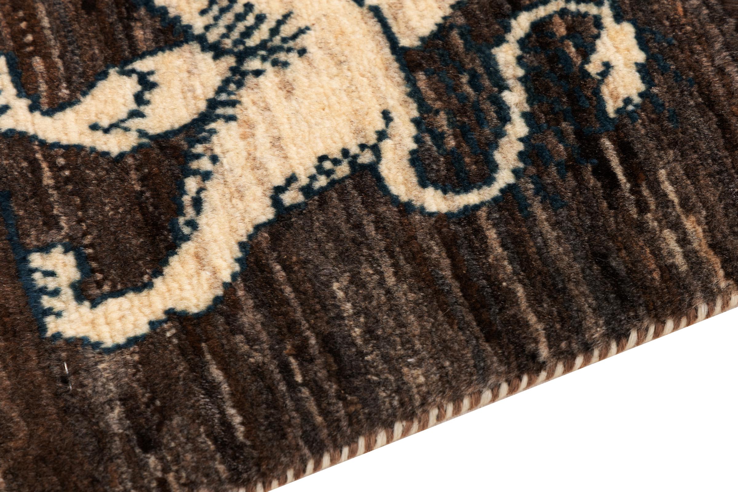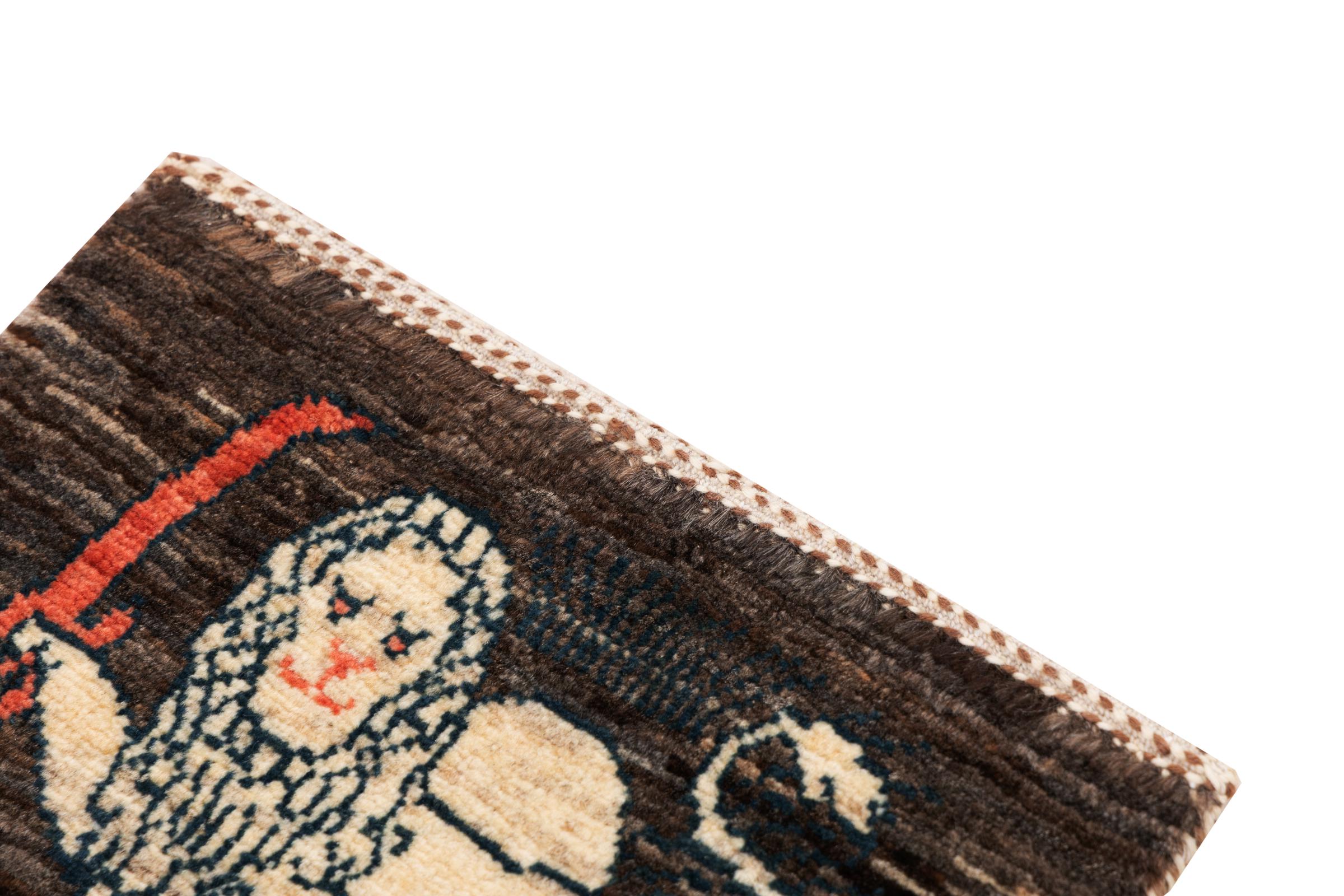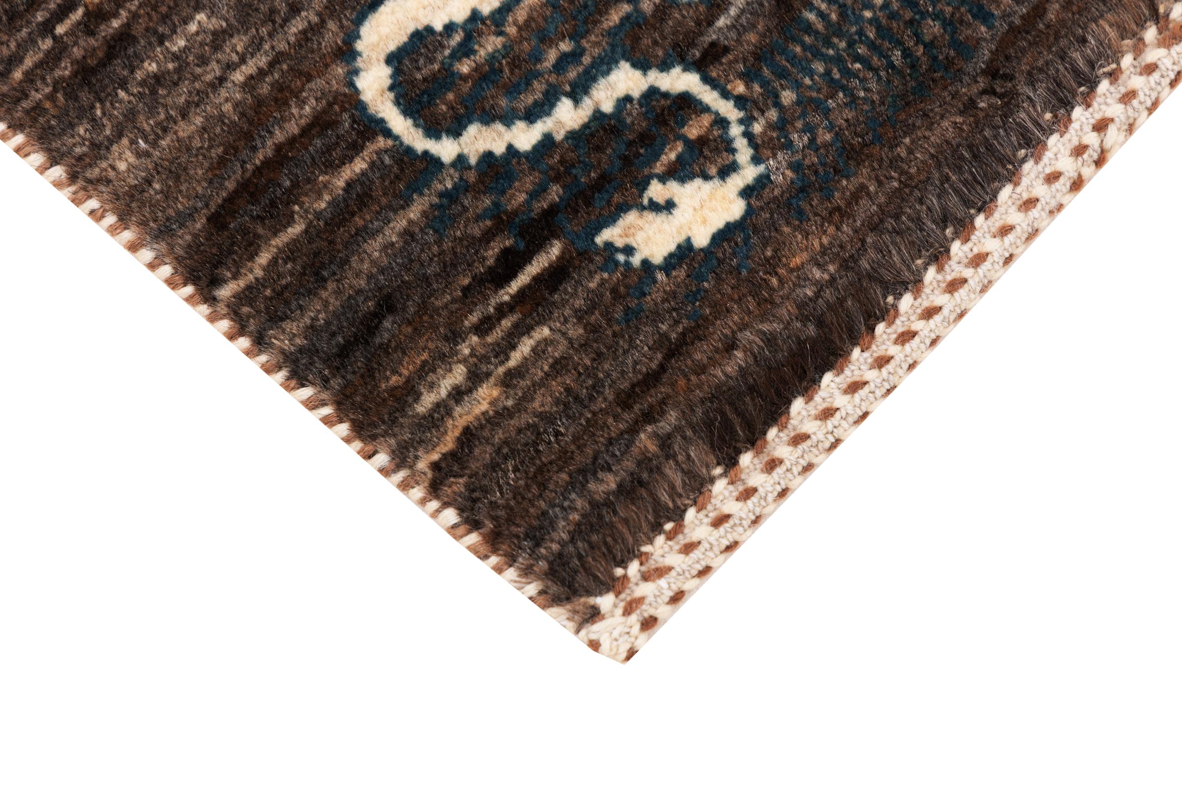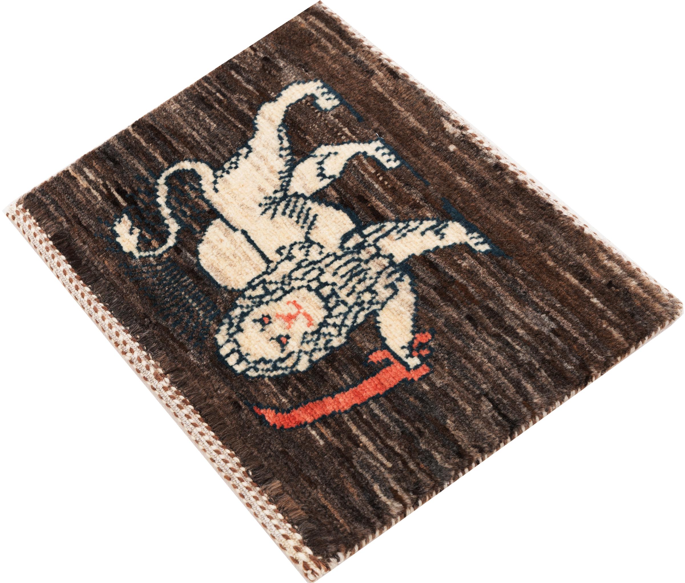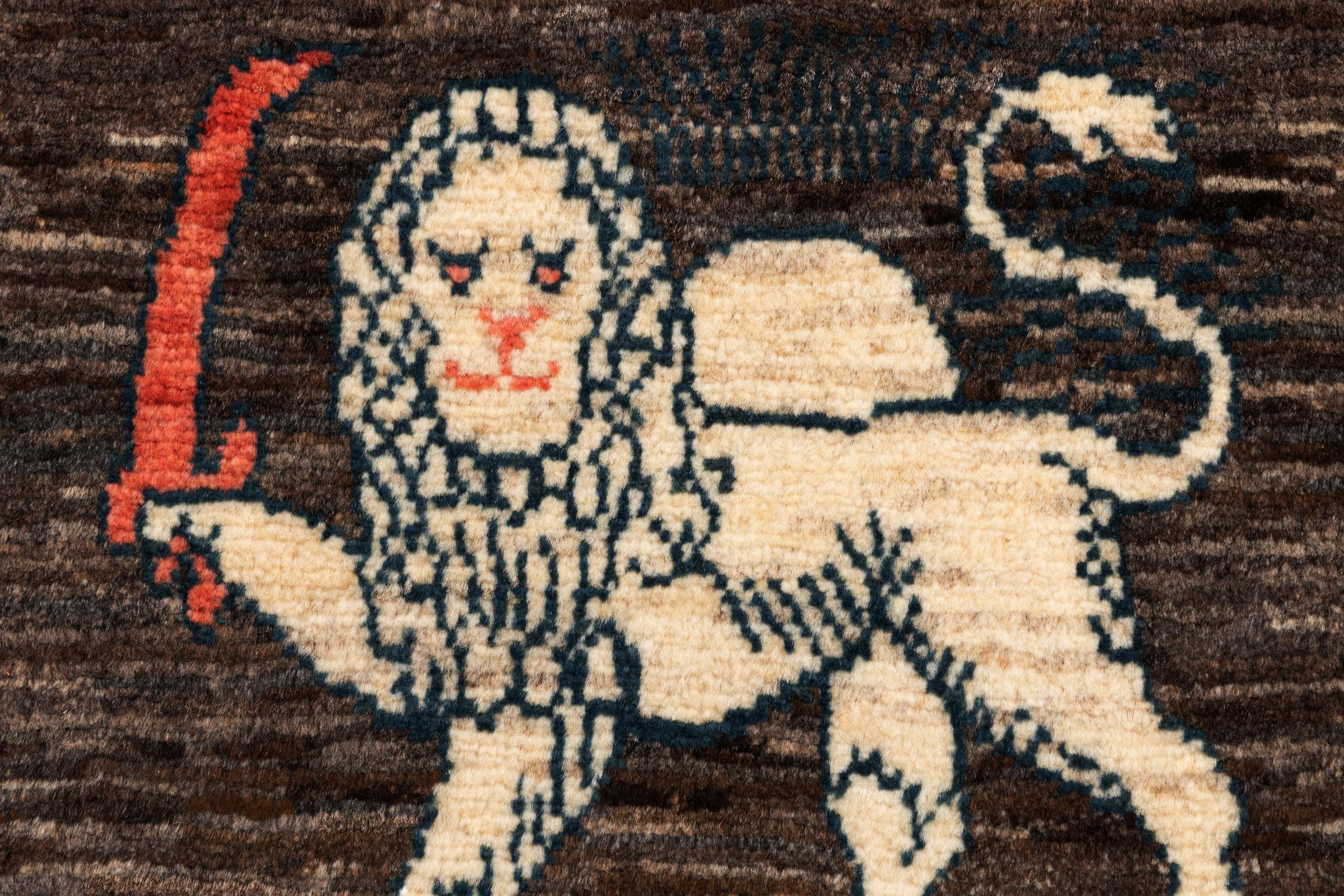Dette smukke tæppe er en persisk Gabbeh og er en af ​​de højeste kvalitet Gabbeh tæpper. Tæpper er knyttet af nomader eller semi-nomader i Iran ved hjælp af traditionelt håndværk. De enkle motiver og mønstre er for det meste inspireret af nomadernes umiddelbare omgivelser. F.eks. Kan kameler, træer eller buske findes på traditionelle tæpper. Persiske Gabbeh-tæpper er lavet af uld fra lokale fårbesætninger. Ulden er derfor for det meste spundet for hånd. Hver af disse orientalske tæpper udgør en unik karakter af århundreder gammel kultur.