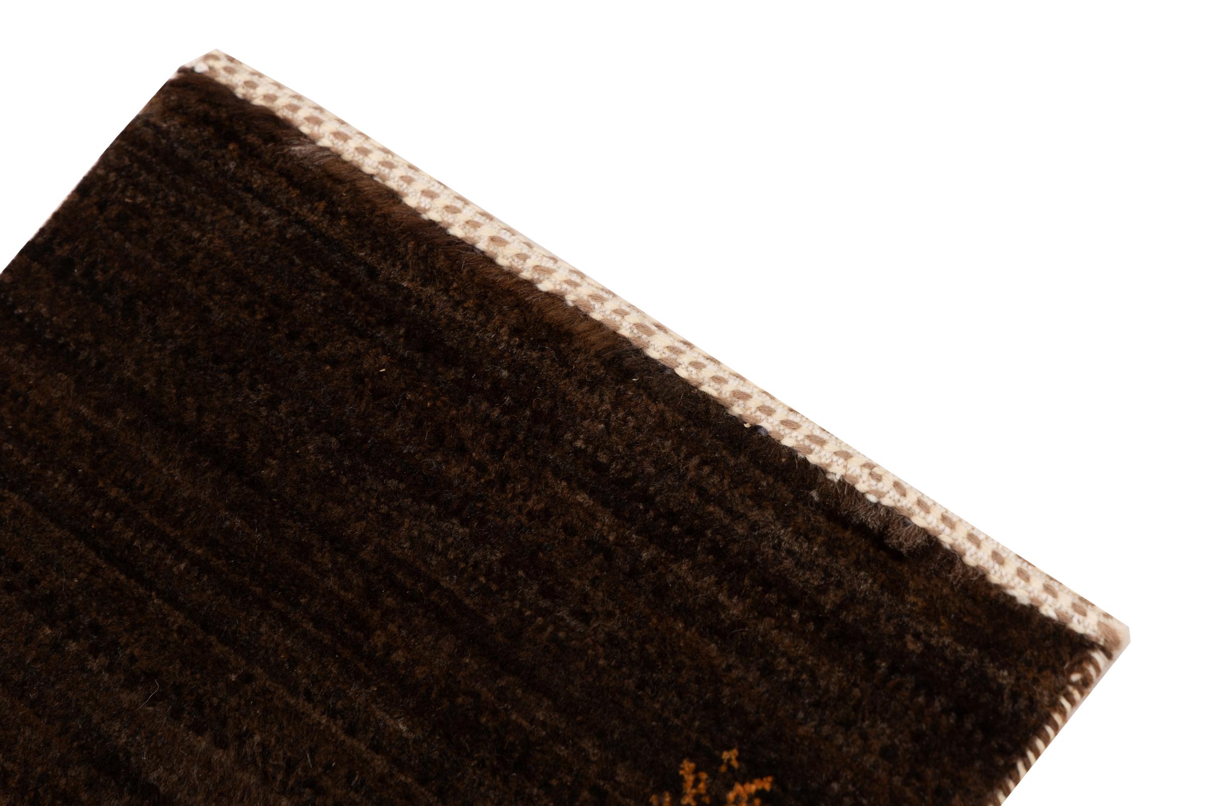 Dette smukke tæppe er en persisk Gabbeh og er en af ​​de højeste kvalitet Gabbeh tæpper. Tæpper er knyttet af nomader eller semi-nomader i Iran ved hjælp af traditionelt håndværk. De enkle motiver og mønstre er for det meste inspireret af nomadernes umiddelbare omgivelser. F.eks. Kan kameler, træer eller buske findes på traditionelle tæpper. Persiske Gabbeh-tæpper er lavet af uld fra lokale fårbesætninger. Ulden er derfor for det meste spundet for hånd. Hver af disse orientalske tæpper udgør en unik karakter af århundreder gammel kultur.