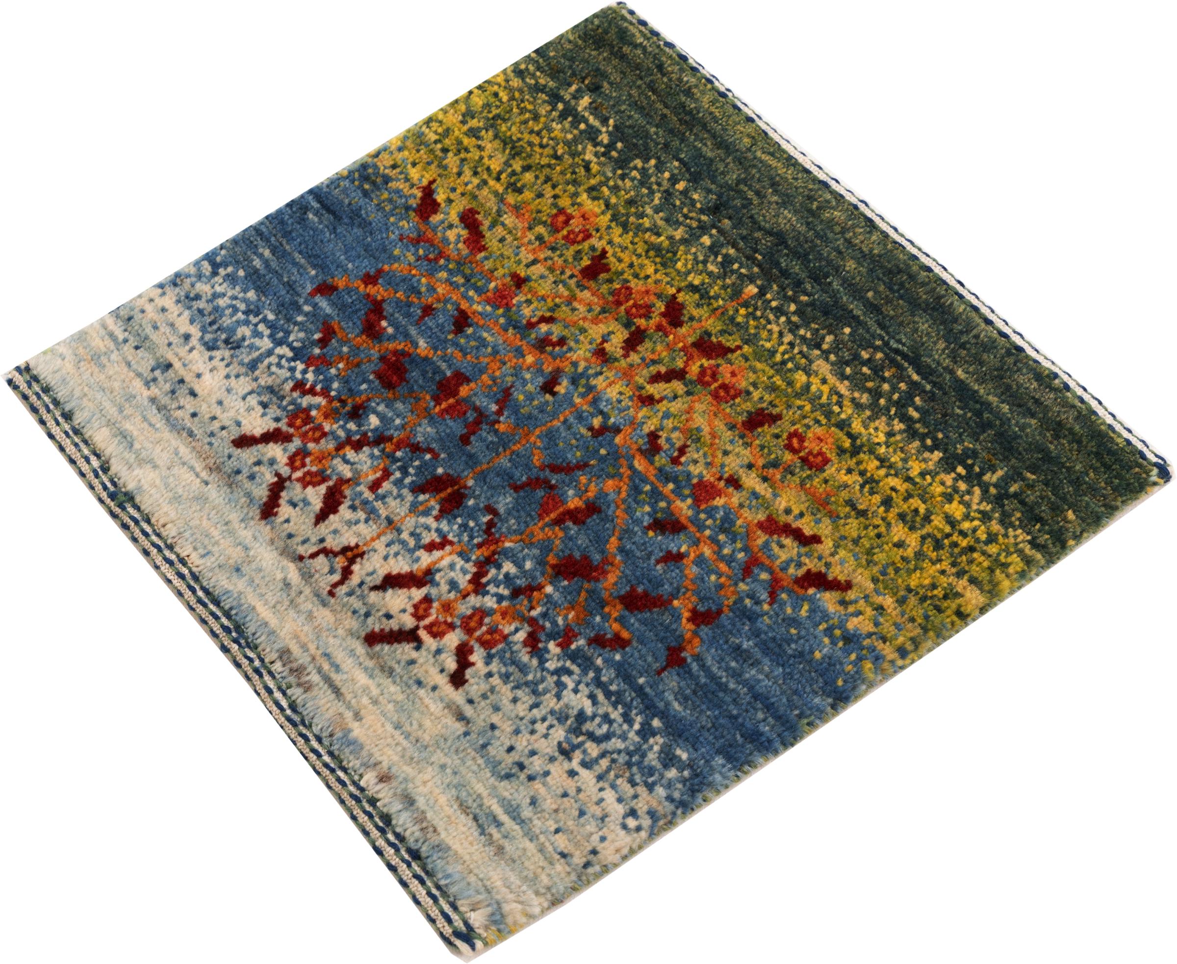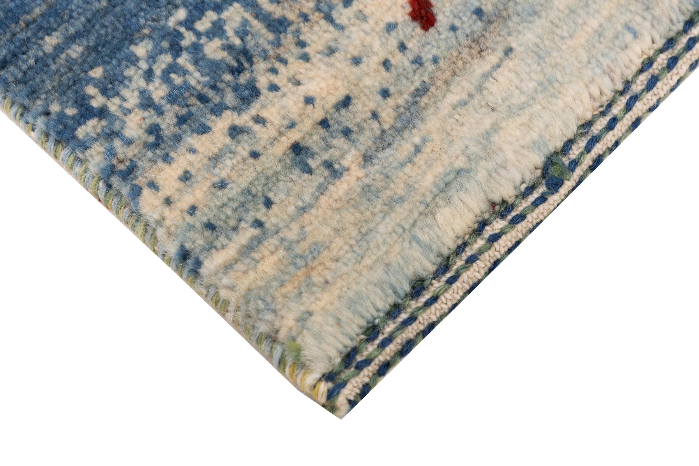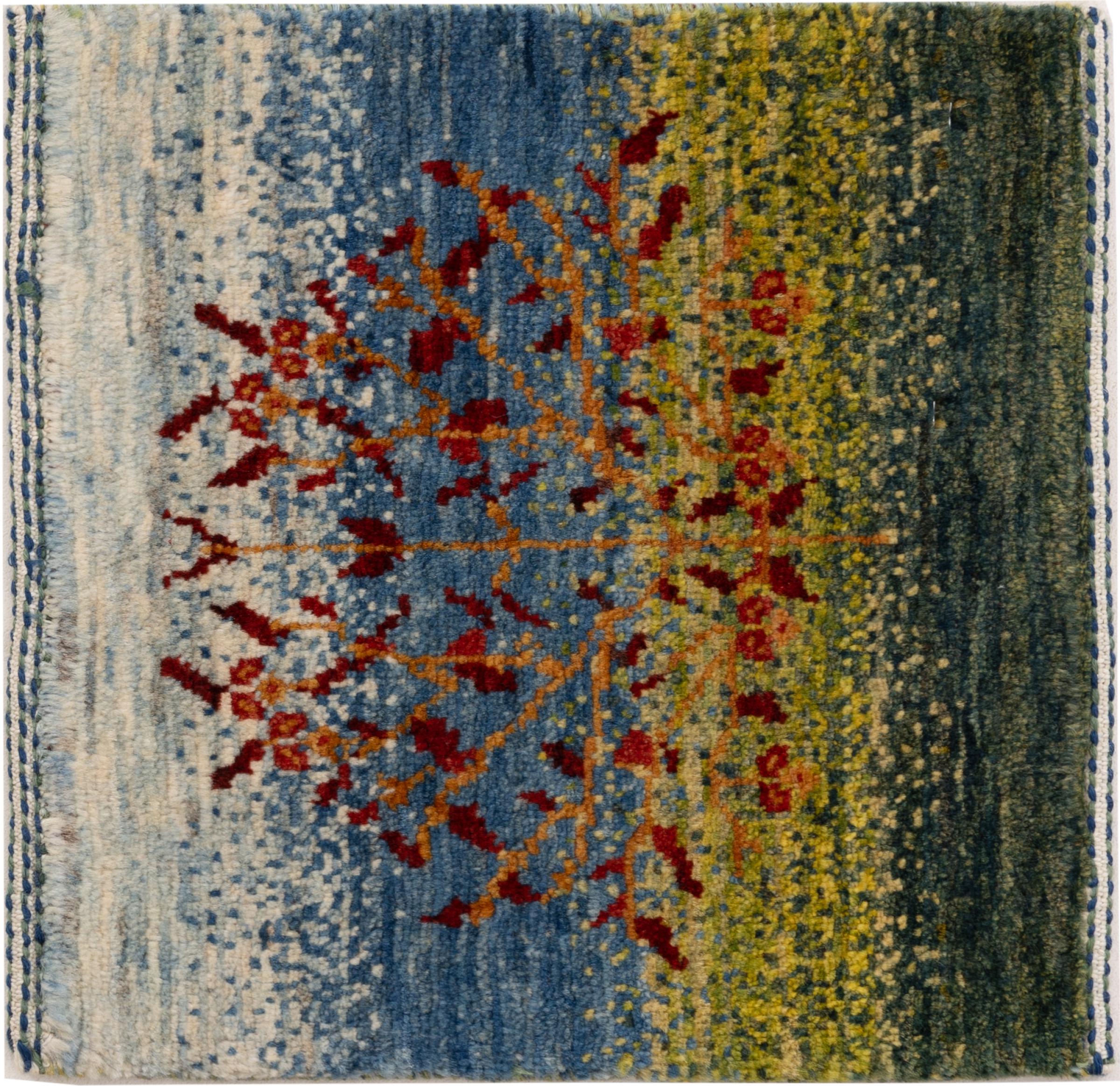 Dette smukke tæppe er en persisk Gabbeh og er en af ​​de højeste kvalitet Gabbeh tæpper. Tæpper er knyttet af nomader eller semi-nomader i Iran ved hjælp af traditionelt håndværk. De enkle motiver og mønstre er for det meste inspireret af nomadernes umiddelbare omgivelser. F.eks. Kan kameler, træer eller buske findes på traditionelle tæpper. Persiske Gabbeh-tæpper er lavet af uld fra lokale fårbesætninger. Ulden er derfor for det meste spundet for hånd. Hver af disse orientalske tæpper udgør en unik karakter af århundreder gammel kultur.